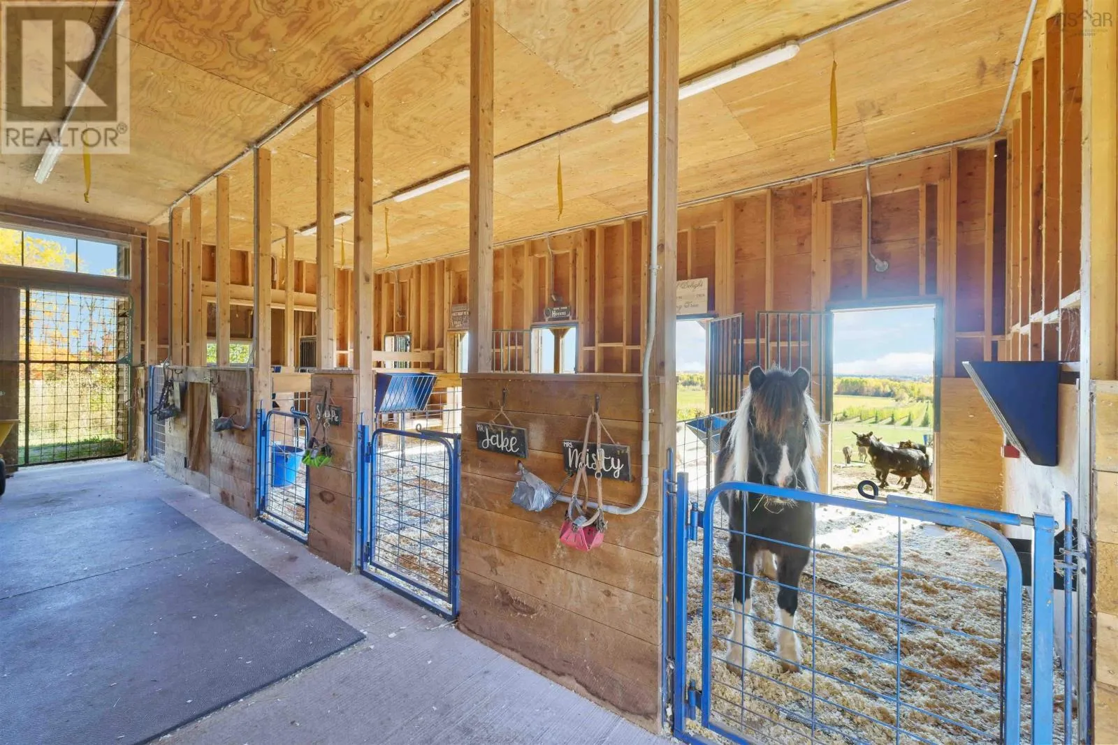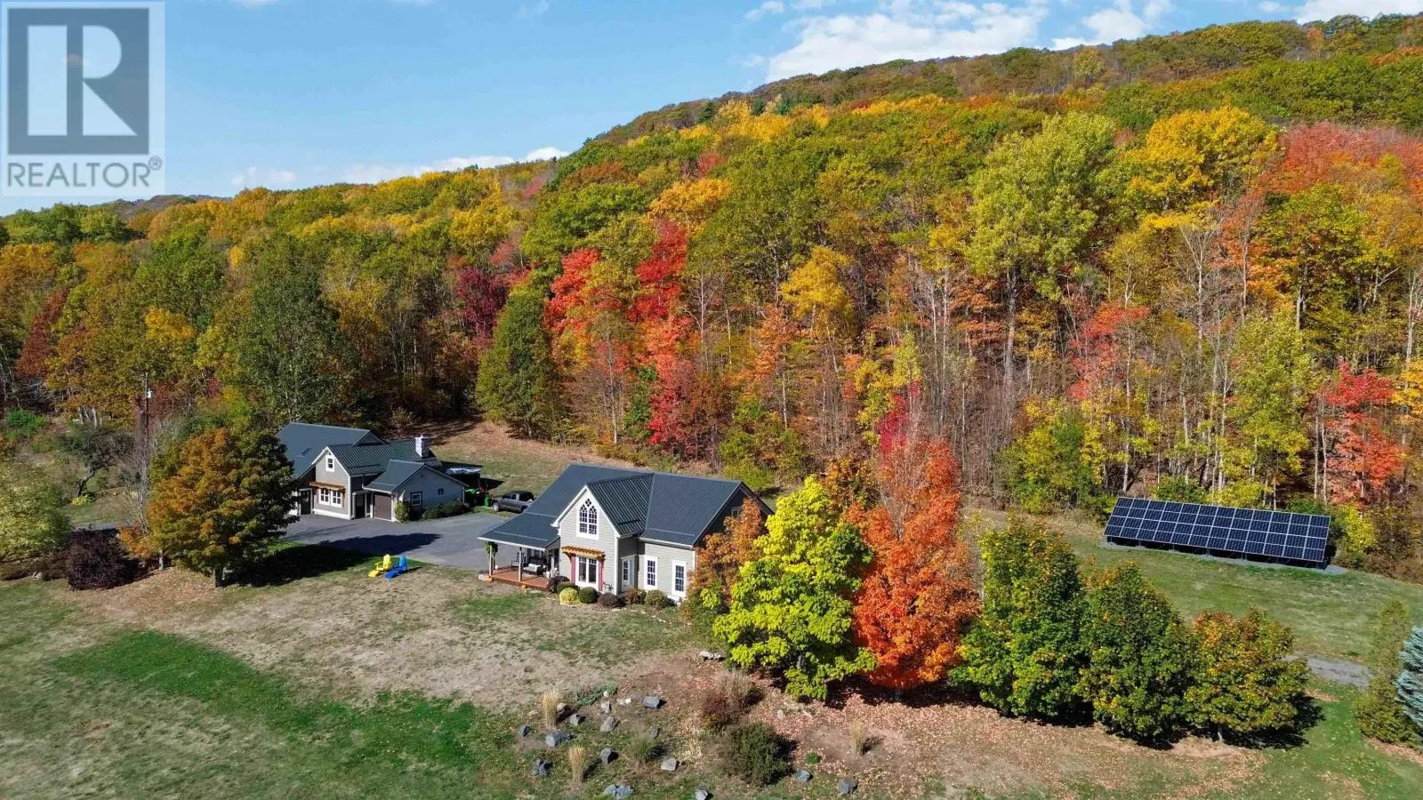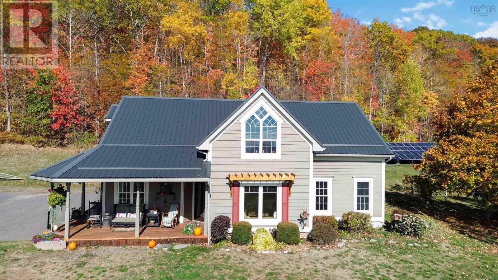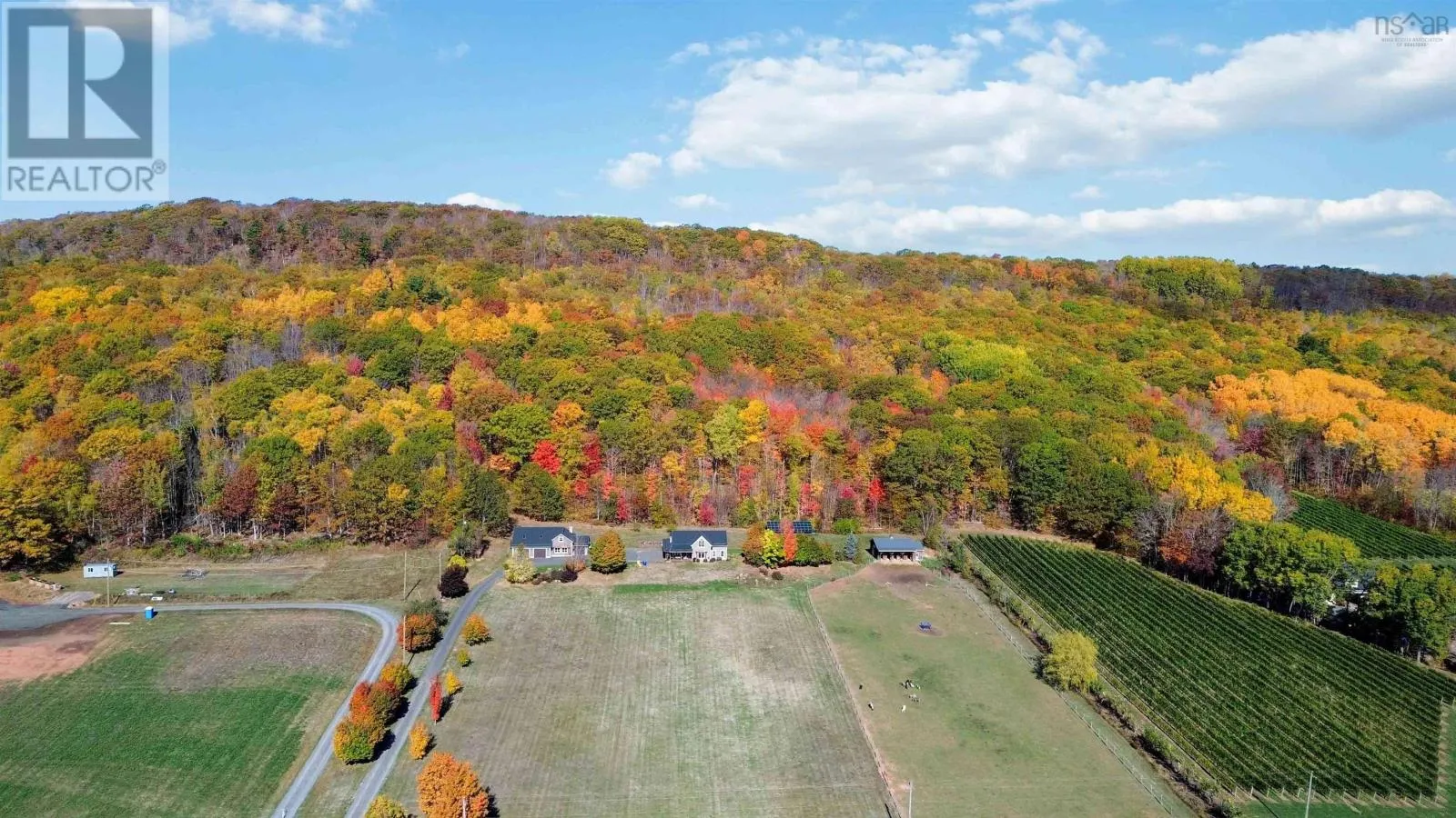 From Kentville, take Hwy 359 North to Hwy 221. West on Hwy 221 to Steadman Rd. North on Steadman Rd to Thorpe Rd. west on Thorpe Rd to civic on RHS You would be hard pressed to find a more spectacular panoramic view of the Annapolis Valley, without driving up the mountain. This 12.5-acre property is a short 12 minute drive to Valley Regional Hospital. On the main level you'll find the open concept kitchen, dining and living room, featuring wood countertops, modern appliances with a timeless, vintage aesthetic, beadboard ceilings, and designed to enjoy the expansive Valley view. A comfortable sitting room with a propane stove and stone fireplace is the ideal spot for unwinding or cozy conversation. The main floor bedroom (skylight and full bath), laundry room (custom concrete sink), half-bath and walk in storage/pantry complete this level. Upstairs, a family room with a cathedral tin ceiling and an arched south-facing window continues the sense of space and light. Two generous bedrooms and another full bath complete this level. The 4-car (approx. 2000 sq ft) garage opens up a world of possibilities for vehicles, equipment, or creative projects. A portion of the second floor is insulated and drywalled and could easily be a private space for guests to stay. The newer barn features 5 run-out box stalls, wired for heated water buckets, and an insulated tack room. The smart design allows for excellent air flow. Currently, the ideal move-in ready setup for miniature equine and goats, but could be reconfigured for full size horses or other animals. Hay storage room holds 200+ square bales, and the 2+ acre fenced pasture adds to the appeal (Electric fencing & fencer excluded.) Constructed with ICF for efficiency and durability, the home is kept cozy through propane-fired, in-floor radiant heat, while central AC ensures comfort through the warmer months. The fully owned 24-panel, 9kW solar system keeps operating costs low. Whether your dream is hobby farming or simply to wake up every day to one of the most breathtaking Valley views around, while being close to all amenities, this is a home that offers it all. (id:27476)