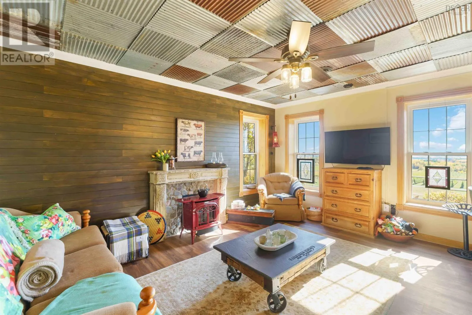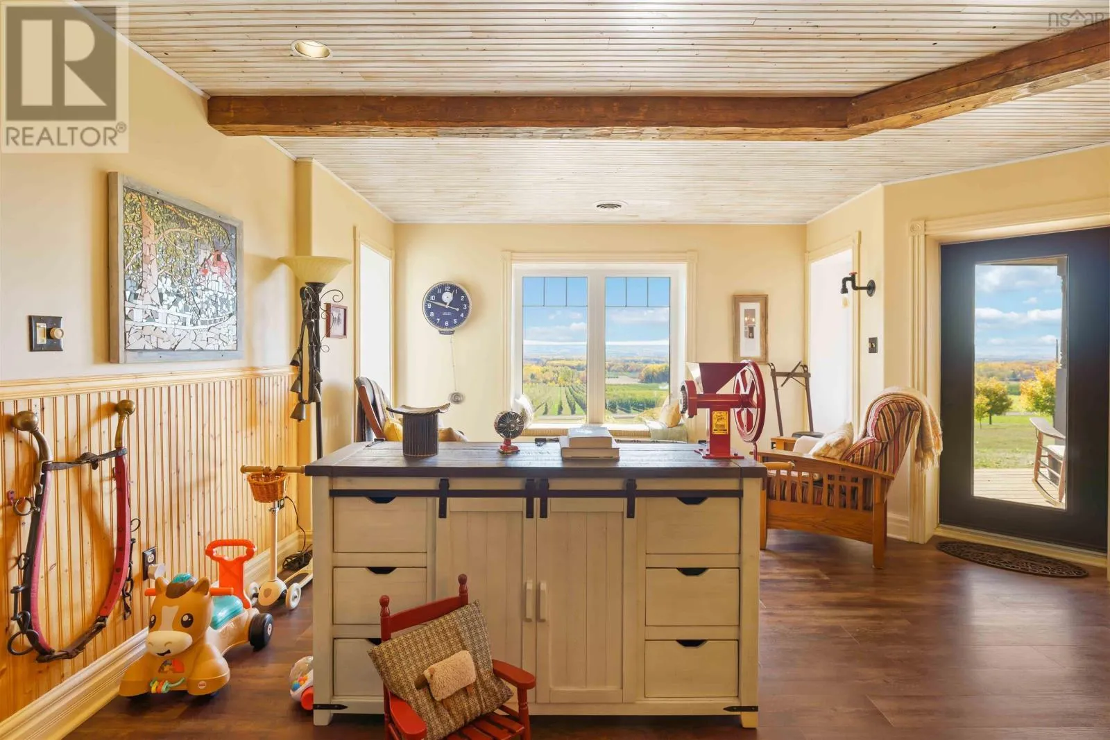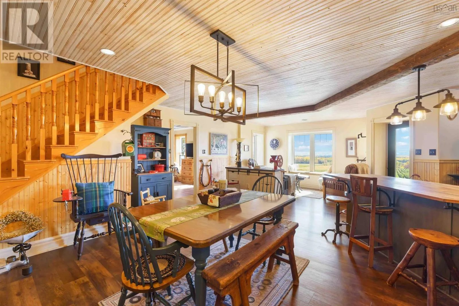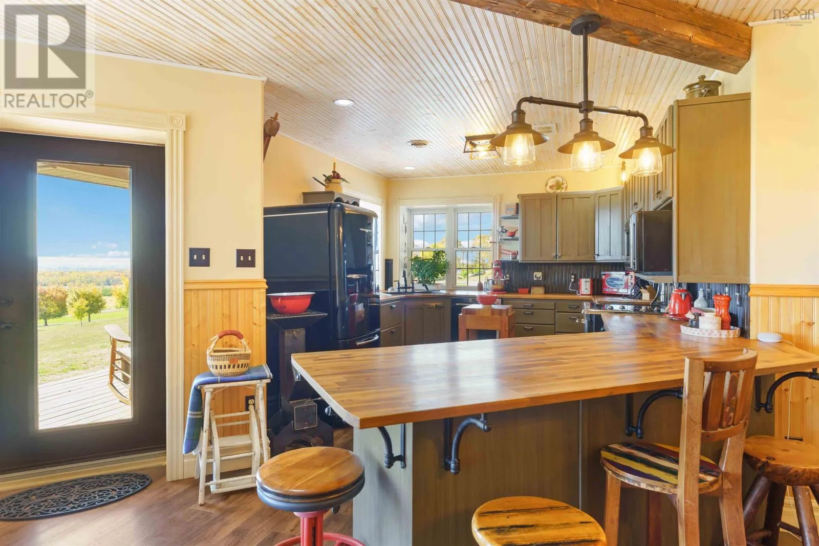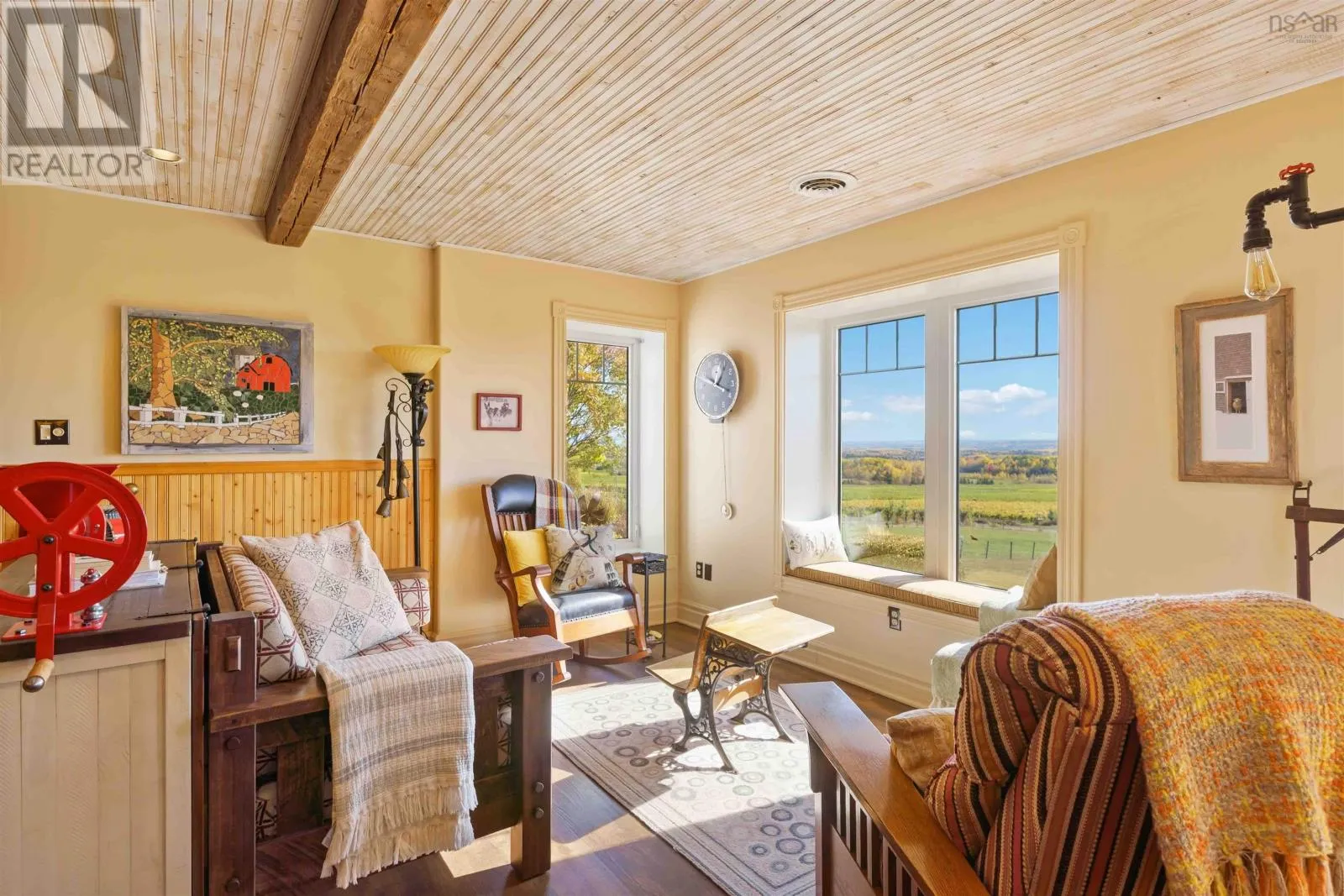 From Kentville, take Hwy 359 North to Hwy 221. West on Hwy 221 to Steadman Rd. North on Steadman Rd to Thorpe Rd. west on Thorpe Rd to civic on RHS You would be hard pressed to find a more spectacular panoramic view of the Annapolis Valley, without driving up the mountain. This 12.5-acre property is a short 12 minute drive to Valley Regional Hospital. On the main level you'll find the open concept kitchen, dining and living room, featuring wood countertops, modern appliances with a timeless, vintage aesthetic, beadboard ceilings, and designed to enjoy the expansive Valley view. A comfortable sitting room with a propane stove and stone fireplace is the ideal spot for unwinding or cozy conversation. The main floor bedroom (skylight and full bath), laundry room (custom concrete sink), half-bath and walk in storage/pantry complete this level. Upstairs, a family room with a cathedral tin ceiling and an arched south-facing window continues the sense of space and light. Two generous bedrooms and another full bath complete this level. The 4-car (approx. 2000 sq ft) garage opens up a world of possibilities for vehicles, equipment, or creative projects. A portion of the second floor is insulated and drywalled and could easily be a private space for guests to stay. The newer barn features 5 run-out box stalls, wired for heated water buckets, and an insulated tack room. The smart design allows for excellent air flow. Currently, the ideal move-in ready setup for miniature equine and goats, but could be reconfigured for full size horses or other animals. Hay storage room holds 200+ square bales, and the 2+ acre fenced pasture adds to the appeal (Electric fencing & fencer excluded.) Constructed with ICF for efficiency and durability, the home is kept cozy through propane-fired, in-floor radiant heat, while central AC ensures comfort through the warmer months. The fully owned 24-panel, 9kW solar system keeps operating costs low. Whether your dream is hobby farming or simply to wake up every day to one of the most breathtaking Valley views around, while being close to all amenities, this is a home that offers it all. (id:27476)