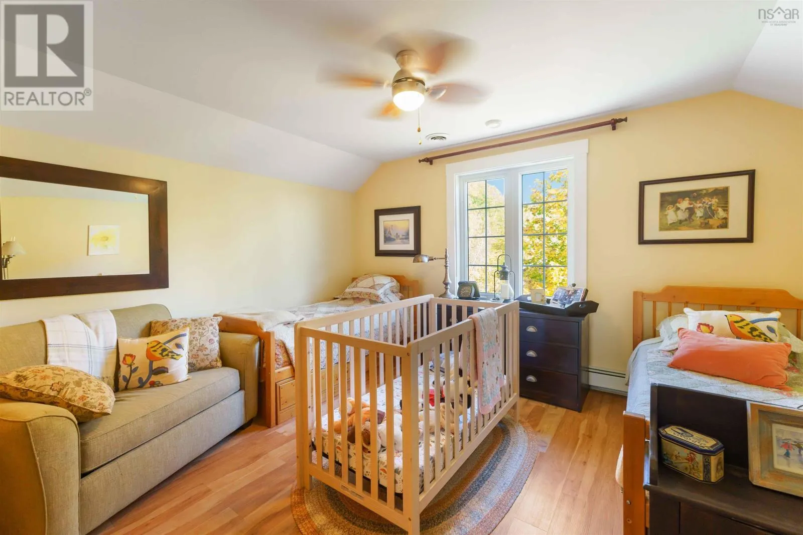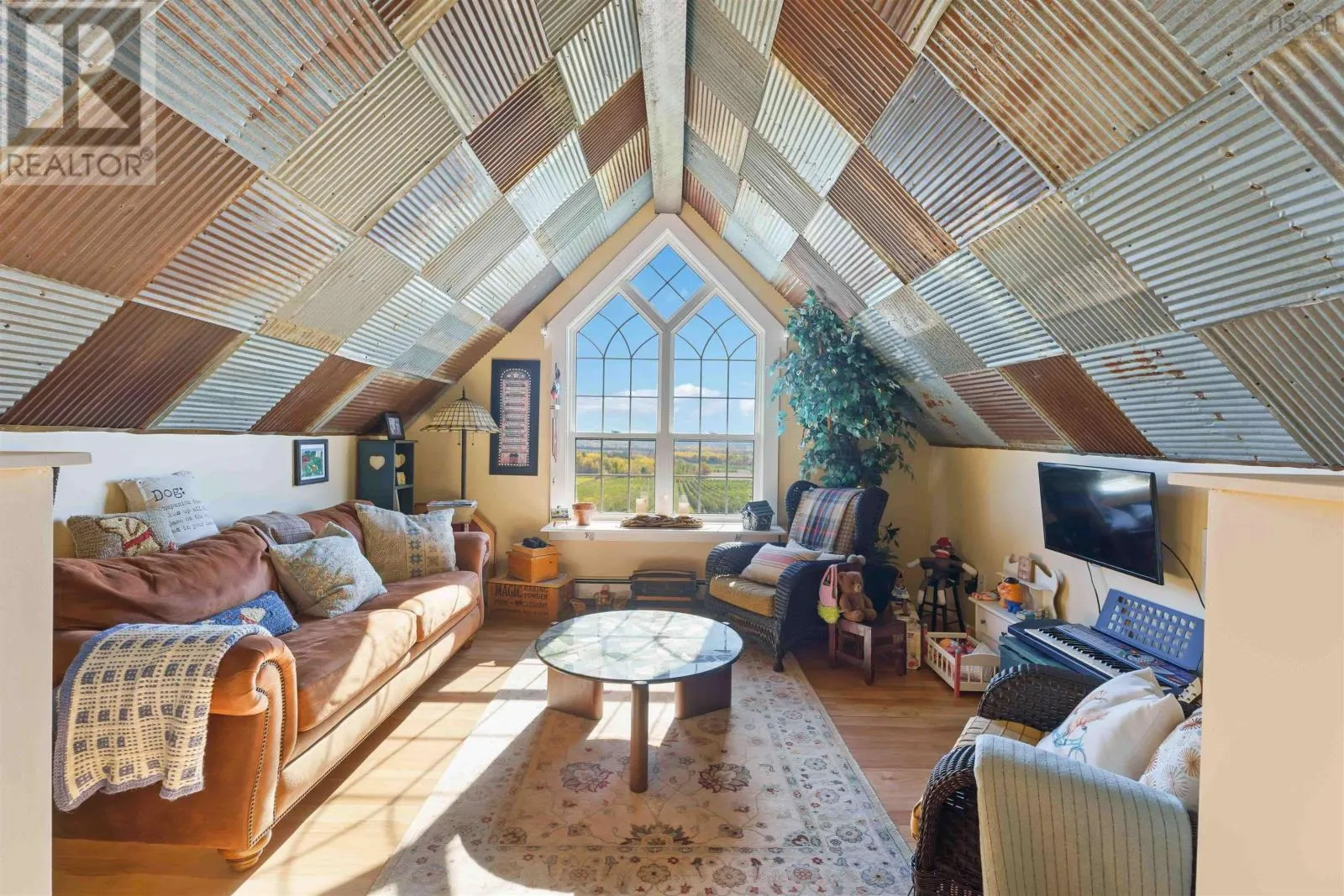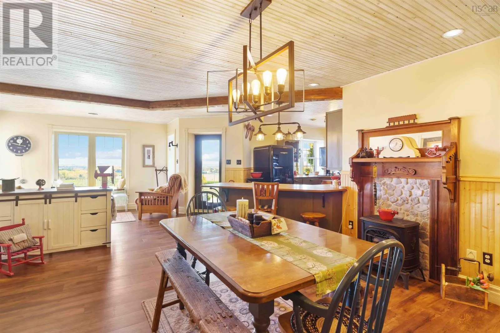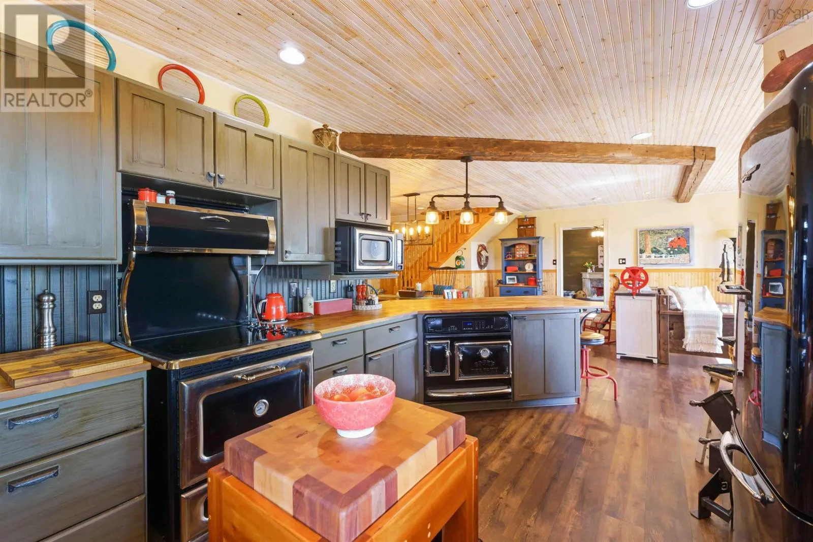 From Kentville, take Hwy 359 North to Hwy 221. West on Hwy 221 to Steadman Rd. North on Steadman Rd to Thorpe Rd. west on Thorpe Rd to civic on RHS You would be hard pressed to find a more spectacular panoramic view of the Annapolis Valley, without driving up the mountain. This 12.5-acre property is a short 12 minute drive to Valley Regional Hospital. On the main level you'll find the open concept kitchen, dining and living room, featuring wood countertops, modern appliances with a timeless, vintage aesthetic, beadboard ceilings, and designed to enjoy the expansive Valley view. A comfortable sitting room with a propane stove and stone fireplace is the ideal spot for unwinding or cozy conversation. The main floor bedroom (skylight and full bath), laundry room (custom concrete sink), half-bath and walk in storage/pantry complete this level. Upstairs, a family room with a cathedral tin ceiling and an arched south-facing window continues the sense of space and light. Two generous bedrooms and another full bath complete this level. The 4-car (approx. 2000 sq ft) garage opens up a world of possibilities for vehicles, equipment, or creative projects. A portion of the second floor is insulated and drywalled and could easily be a private space for guests to stay. The newer barn features 5 run-out box stalls, wired for heated water buckets, and an insulated tack room. The smart design allows for excellent air flow. Currently, the ideal move-in ready setup for miniature equine and goats, but could be reconfigured for full size horses or other animals. Hay storage room holds 200+ square bales, and the 2+ acre fenced pasture adds to the appeal (Electric fencing & fencer excluded.) Constructed with ICF for efficiency and durability, the home is kept cozy through propane-fired, in-floor radiant heat, while central AC ensures comfort through the warmer months. The fully owned 24-panel, 9kW solar system keeps operating costs low. Whether your dream is hobby farming or simply to wake up every day to one of the most breathtaking Valley views around, while being close to all amenities, this is a home that offers it all. (id:27476)