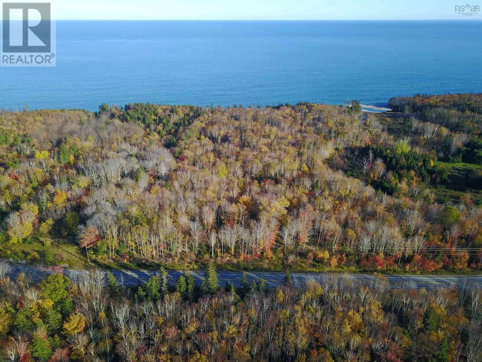 Across from Civic 42896 in Birch Plain on the North Shore of the Cabot Trail. This 7.4+ ACRE, Vacant Land Property with Atlantic Ocean WATER FRONTAGE is your BLANK CANVASS for development. The land itself is SURVEYED, basically LEVEL and mainly WOODED (HARDWOOD). The 262' of Shoreline has a very manageable bank for easy ACCESS. 7.47 Acres can assure privacy & location choices for residential and/or commercial use. A world of possibility awaits on the WORLD FAMOUS CABOT TRAIL close to the CAPE BRETON HIGHLANDS NATIONAL PARK, Cape Smokey Ski Hill and in a welcoming community. All your common convenience are found in Ingonish (30min), Baddeck (50min) or North Sydney (60min). This is Lot 2 of 2 neighbouring lots, more/less the same size.. DRONE PHOTOS give overview perspective. Please walk this property to see for yourself and be inspired by the crashing waves on the beach. (id:27476)