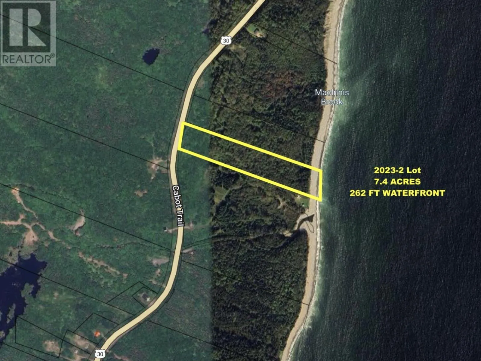 Across from Civic 42896 in Birch Plain on the North Shore of the Cabot Trail. This 7.4+ ACRE, Vacant Land Property with Atlantic Ocean WATER FRONTAGE is your BLANK CANVASS for development. The land itself is SURVEYED, basically LEVEL and mainly WOODED (HARDWOOD). The 262' of Shoreline has a very manageable bank for easy ACCESS. 7.47 Acres can assure privacy & location choices for residential and/or commercial use. A world of possibility awaits on the WORLD FAMOUS CABOT TRAIL close to the CAPE BRETON HIGHLANDS NATIONAL PARK, Cape Smokey Ski Hill and in a welcoming community. All your common convenience are found in Ingonish (30min), Baddeck (50min) or North Sydney (60min). This is Lot 2 of 2 neighbouring lots, more/less the same size.. DRONE PHOTOS give overview perspective. Please walk this property to see for yourself and be inspired by the crashing waves on the beach. (id:27476)