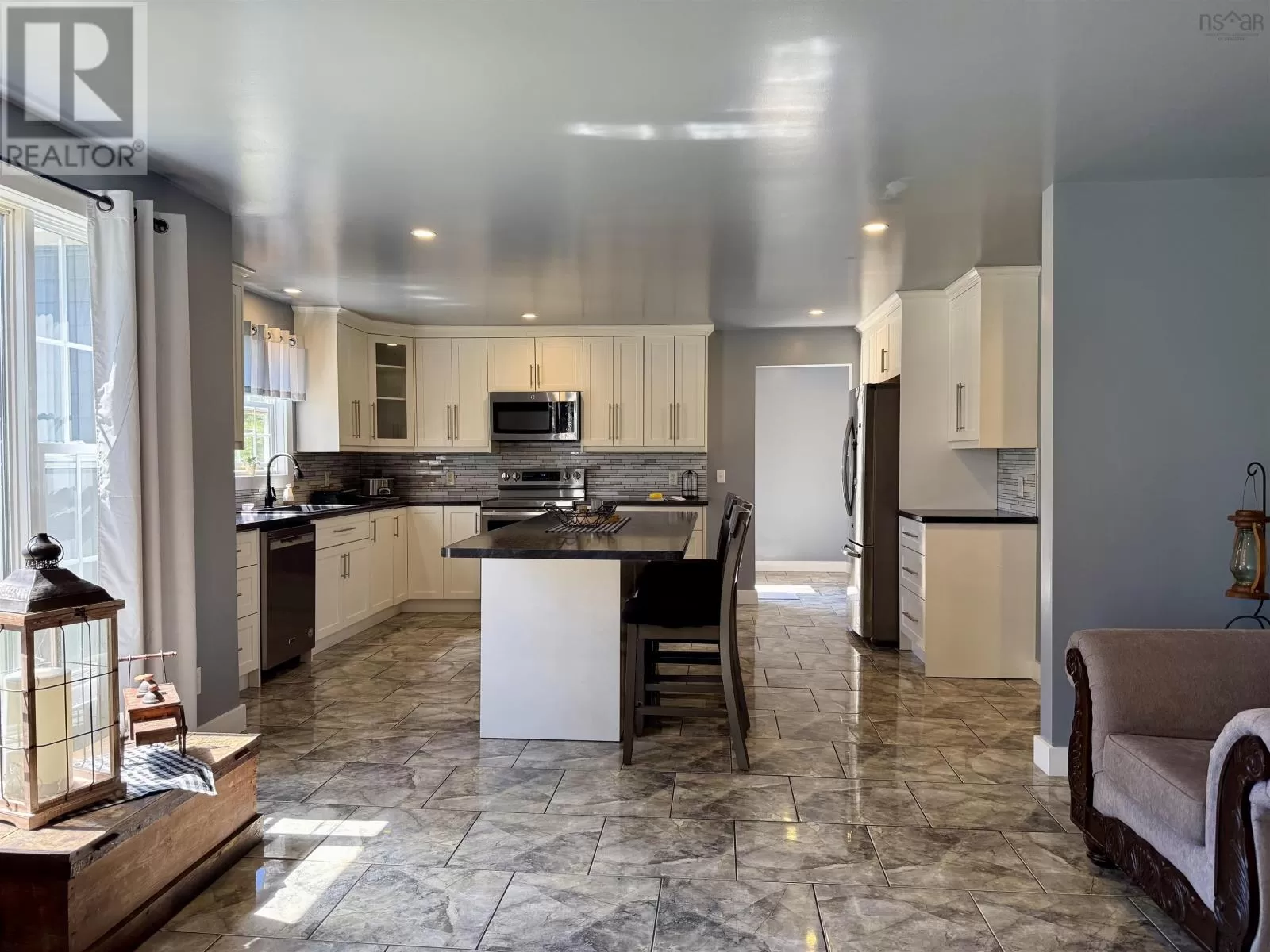 mFrom Highway 103, take exit 27 drive km and take right onto Shore Road and drive Step into this newly renovated 2 bedroom home. Inside, you'll find an open-concept layout that merges the kitchen, dining, and living spaces, along with a luxurious tiled bathroom complete with in-floor heating, a soaker tub, and a spacious walk-in shower with a large rainfall showerhead. For cozy evenings, enjoy the warmth of a wood stove that also helps reduce heating costs. The large basement offers ample space for extra storage. The exterior features a new roof, deck, and siding that enhance its curb appeal. Situated just a 10-minute drive from the charming Town of Shelburne, Nova Scotia, this home perfectly combines comfort and convenience. (id:27476)