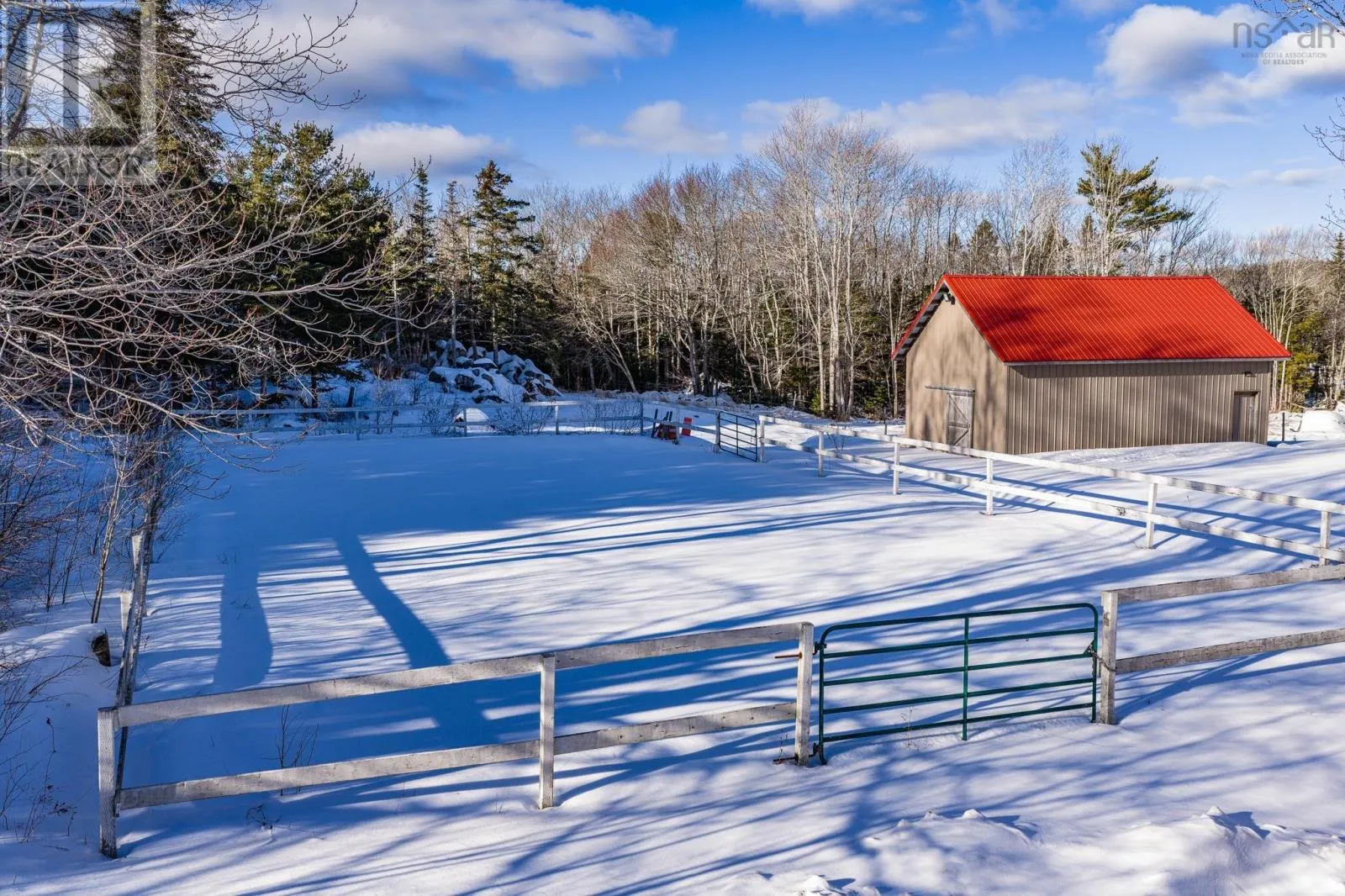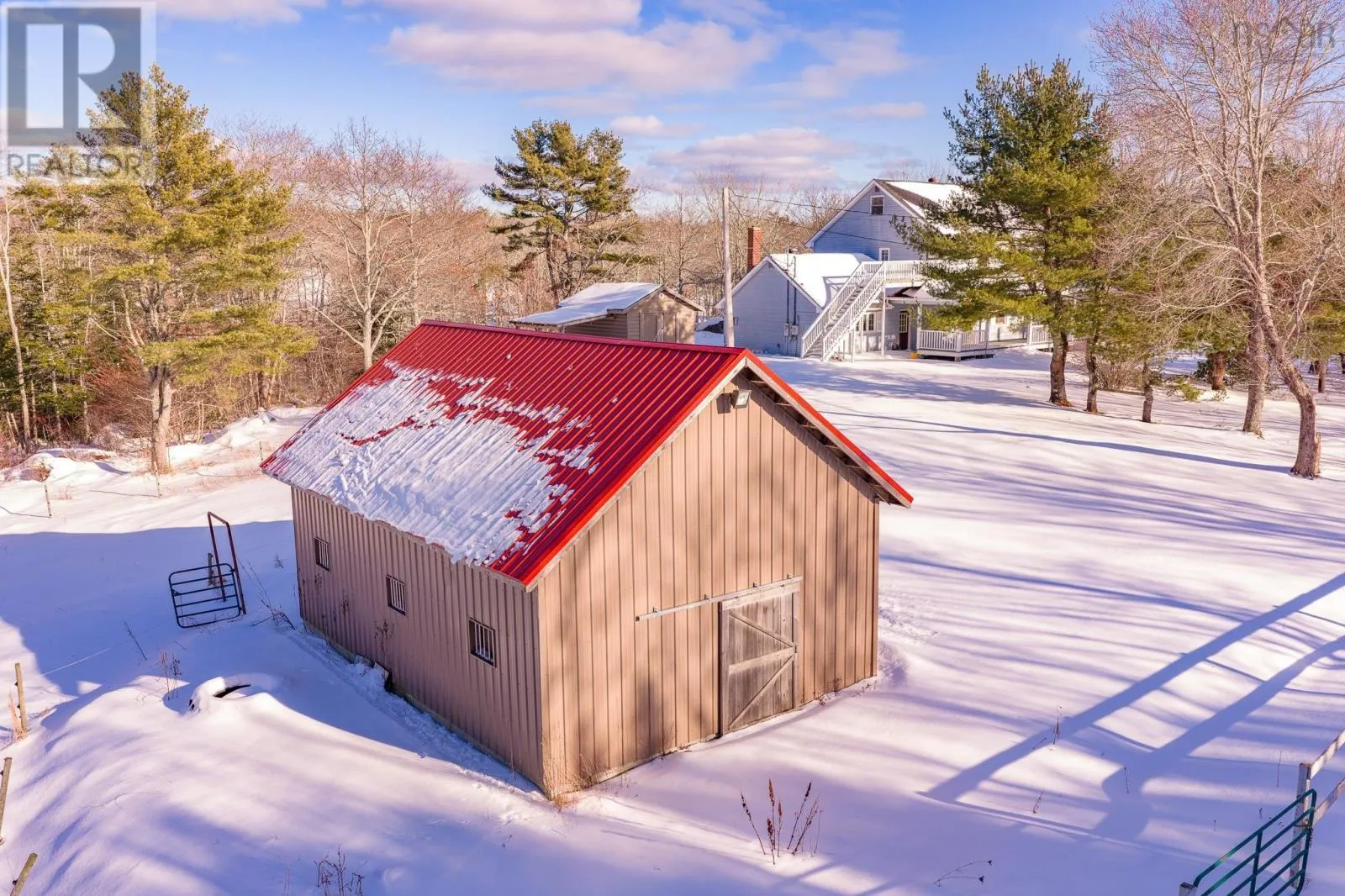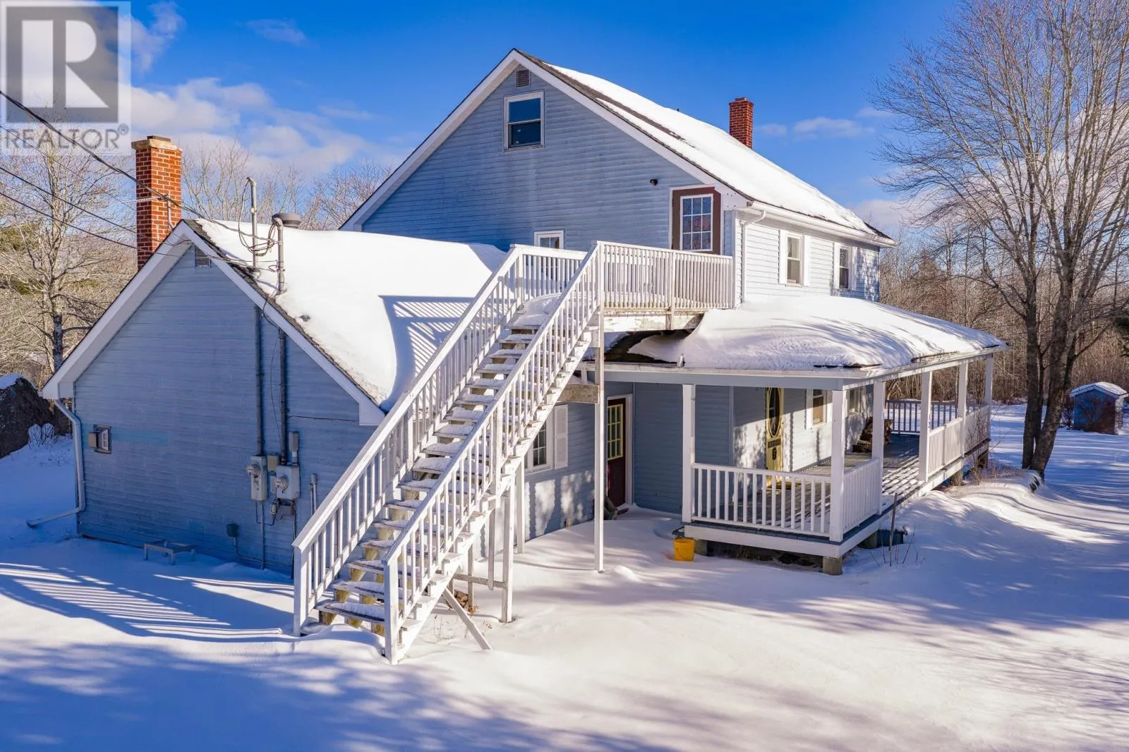 From Hwy 103 at Exit 26, turn right at intersection (Spencer's Garden Center) onto Lighthouse route/old Hwy 3, drive 4.8km to Birchtown, turn right onto Birchtown Hill Rd (directly across from old Birchtown Rd), Stay to right of mailbox kiosk. Small country lane leading to house. Birchtown Hill Rd Set on nearly 7 acres with over 700 ft of frontage on Birchtown Brook, this spacious farmhouse-style home offers privacy, versatility, and rural charm just minutes from Shelburne. The home features a bright eat-in kitchen with access to a wraparound veranda, formal dining room, family room with propane fireplace, cozy living room with wood stove, mudroom, laundry, and main-floor powder room. Upstairs are four generous bedrooms and a full bath, plus a separate one-bedroom apartment with its own entrance, ideal for income or extended family. The property is well suited for equestrian or hobby farm use with a barn with power and water, fenced paddock, and lit riding ring, along with mature landscaping and a peaceful brook-side setting. Located just 5 minutes to town amenities with easy access to Highway 103, this is a rare opportunity to enjoy country living on Nova Scotias South Shore. (id:27476)