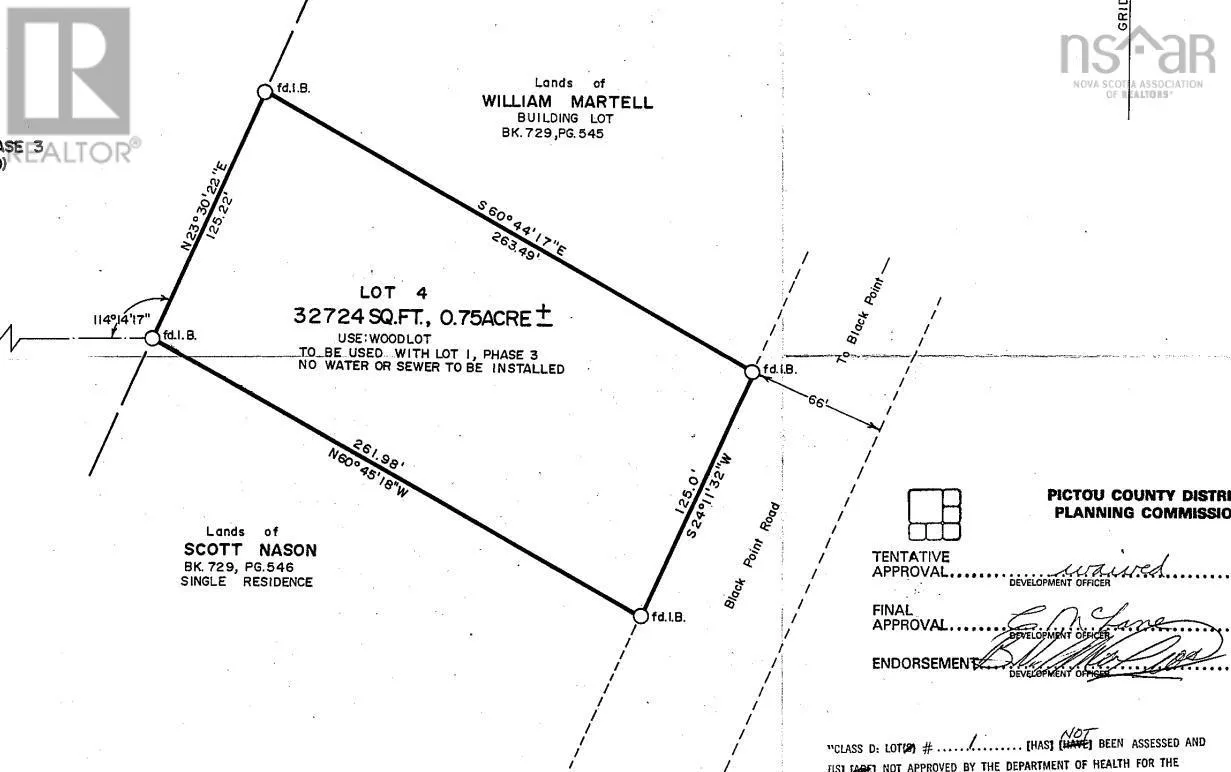 From Pictou Landing Road turn on to Black Point Road, lot is adjacent and north of civic 29 Black Point Road Located in the sought-after Black Point beach area, this 0.75-acre treed lot comes with no restrictive covenants, offering flexibility for recreational use such as camping or simply enjoying a private wooded setting close to sandy shores. While too small for a well or septic system, it provides an affordable way to secure land in this desirable coastal community. An additional 48.11-acre parcel on Pictou Landing Road (PID 00962480) is also being offered separately by the same Seller, creating the option to expand your presence in this attractive location. (id:27476)