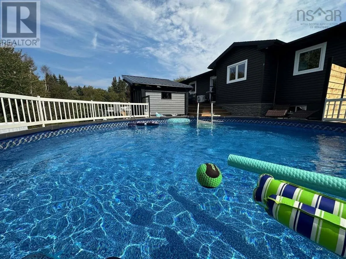 From Highway 105, turn on to Old Route 5, otherwise known as the Millville Highway. Black Rock Rd is between the Big Bras d'Or Fire Hall and St. John's United Church. 135 is less than 1 KM down Black Rock Rd. For more information, please click the "More Information" button. Nothing about this home or garage is "cookie cutter". It's fully custom and built with high end materials. 1375 square feet upstairs and 1250 downstairs. 3 bedrooms (or four - theatre can be converted to bedroom) 2.5 baths Open concept kitchen / dining and living room area. Large decks front and back with composite decking. Heated with furnace, in floor heating and heat pump. 1 acre property 24 ft round above ground pool with salt water system installed in 2023 with composite deck. Newly renovated 4 piece main bath. 25 x 54 heated garage. 28 x 28 section completed in 2024 with 13 ft ceiling. Perfect for professional projects, vehicle storage, or hobbies. (id:27476)