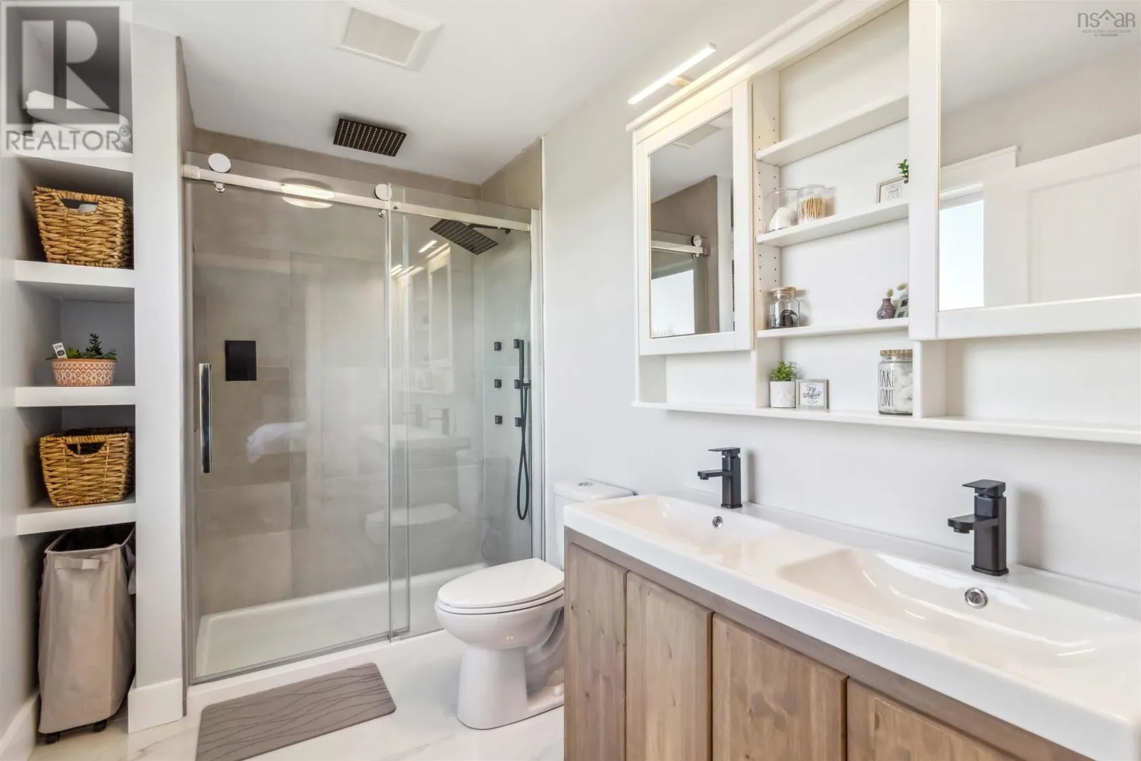 St Margarets Bay Rd, right onto Island View Drive, right onto Hillside Drive, left onto Maggies Landing, civic at the end of the street. Welcome to this stunning 2-year-old custom-built split-entry home, perfectly tucked away at the end of a quiet private lane in Boutilliers Point, with an abundance of wildlife to enjoy.  Offering complete privacy, this home is designed for both comfort and style, with vaulted ceilings in the living room that create an expansive, open feel for everyday living. The main level boasts three spacious bedrooms, including a gorgeous primary suite with an ensuite bathroom, while the fourth bedroom is located downstairs, making it a perfect retreat for guests or a home office. With three well-appointed bathrooms, this home provides plenty of space for a growing family. Enjoy stunning water views from the kitchen while washing dishes, or from the primary bedroom and ensuite. This home was designed around the stunning view of the water and privacy. The fully finished basement features 10-foot ceilings, making it feel even more spacious, and offers the option of a home gym or rec room, including ample storage under the stairway. The attached garage provides convenience, while the long driveway ensures plenty of parking for family and guests. The property has been newly landscaped and also features a spacious, workable shed; perfect for storage, hobbies, or projects. Surrounded by nature and serenity, yet just minutes from all amenities, beaches, and trails, this home truly has it all. Do not miss out on this rare opportunity to purchase a recently built home in HRM without HST. This one-of-a-kind, private, newly built property is completely move-in readyso what are you waiting for? Schedule your private viewing today! (id:27476)
