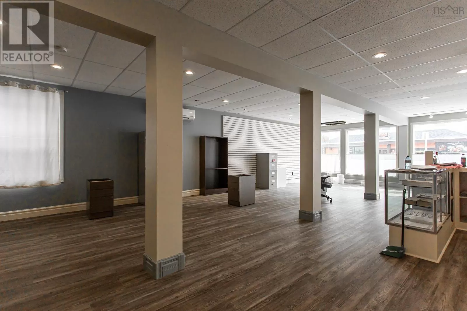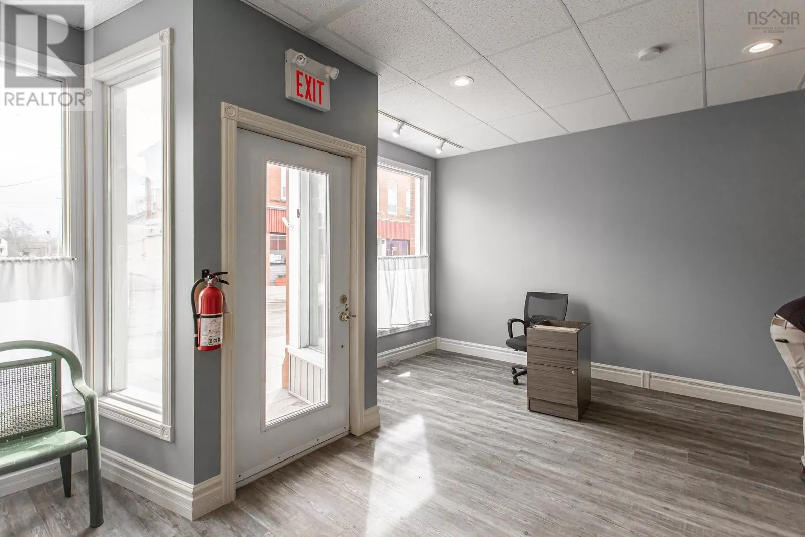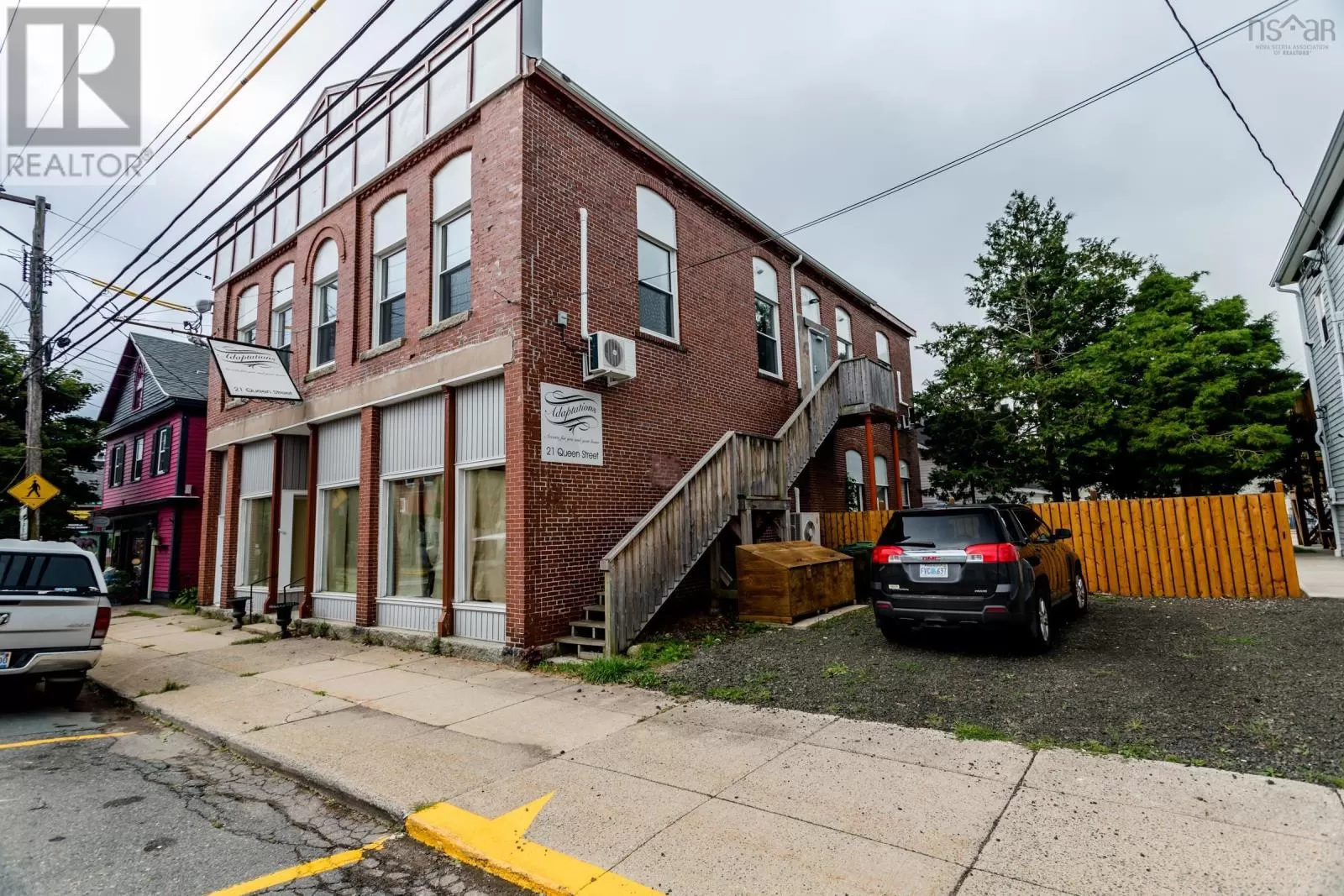 Queen Street, Bridgetown. The historic Shafner Building (1901) offers a prime investment opportunity in downtown Bridgetown with both commercial and residential income potential. Exceptional curb appeal in a high-traffic location, this would make a perfect location for many different businesses. The property features over 2000 sq ft of freshly renovated main floor retail space, complete with staff room, washroom, and storage area. Currently leased to Elections Canada (vacating Summer 2025), the versatile space suits various business ventures. Four apartments on the upper floor generate steady monthly income of $3,450, with room for improvement as tenants vacate. The building has undergone extensive restoration, gutted to exterior walls and completely rebuilt with all new systems and energy-efficient heat pumps. Half the roof is new with remaining materials included at closing. Some exterior brickwork requires correction (estimated at $20K, reflected in asking price). Additional features include a 16' x 22' storage building, on-site parking, and an adjoining public parking lot. This landmark property combines Bridgetown history with immediate income and minimal maintenance concerns. (id:27476)