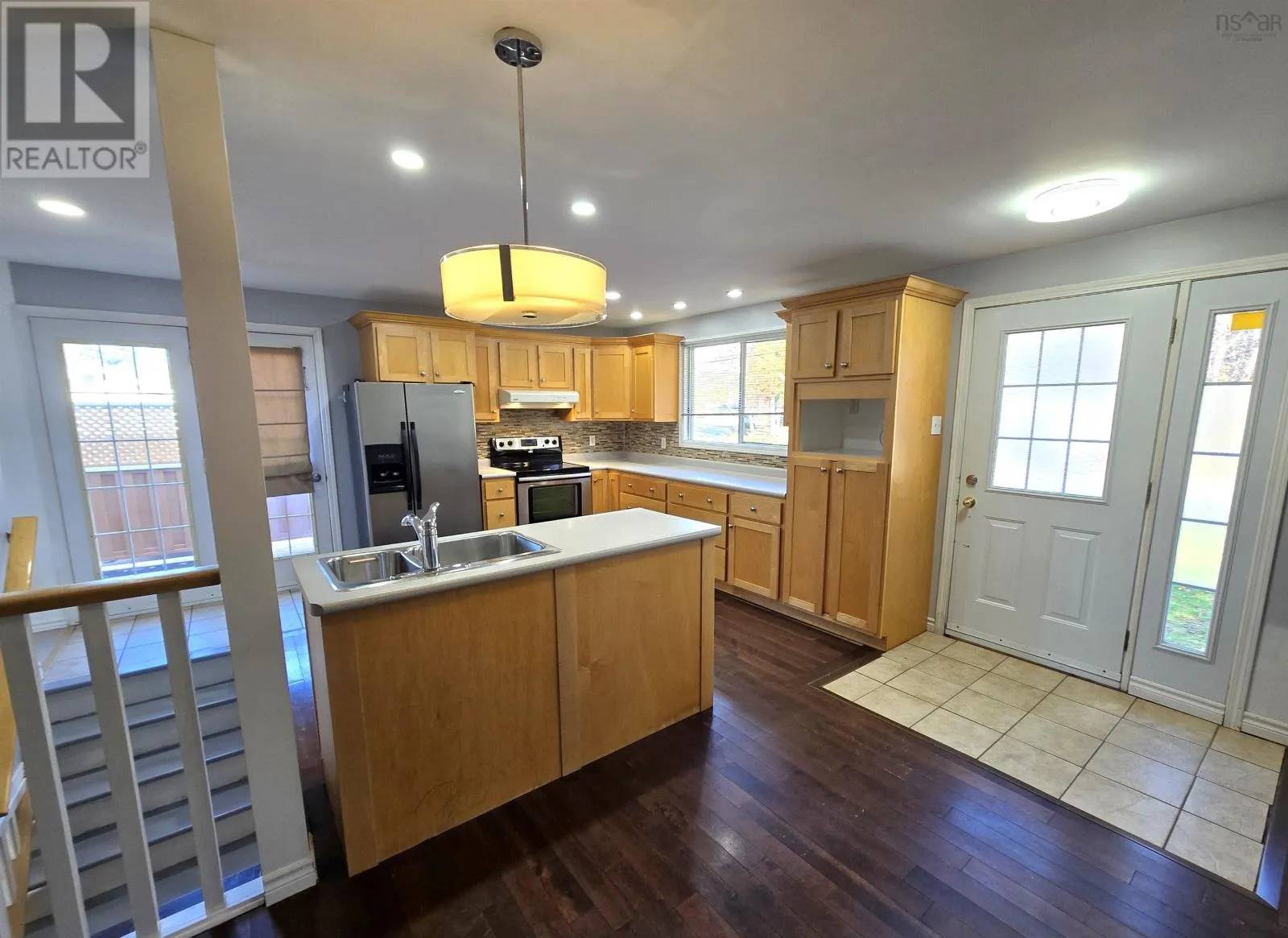 From King Street travelling south, turn right onto Jubilee, left onto Brook and continue left well past stop sign veering right onto Meldrum. House on your right. This sweet house is located in a quiet, solely residential neighborhood of tree-lined streets and other well maintained homes. The front of the house consists of an open-concept, living-dining-kitchen space with a propane fireplace at one end. The kitchen is of a generous size with a large island which looks onto the main living space. The rear of house consists of a large primary bedroom accessed from double French doors, which with the four-piece ensuite bath, occupies the full back portion of the house. This main floor bedroom features two double closets at one end and its own private deck for morning coffee overlooking the back garden. The family bath is accessed from two locations: the primary bedroom and a small hall off the back of the living room. This house could be ideal for two generations of a family seeking a common residence. The lower level is full walk-out to the back yard with an entry door into the lower-level family room at the rear, and an interior side entry off the main-floor side deck which enters a mudroom stairwell adjacent the kitchen on the main floor. The lower level consists of a large family room, two bedrooms, shared bath with shower and a separate laundry. A good sized utility room offers generous storage and houses a newly installed, electric, ducted heat-pump furnace. For a family looking for a home in a quiet, low traffic location, ideal for walking, in a long established community which takes pride in upkeep, this could be the ideal spot to call home. (id:27476)