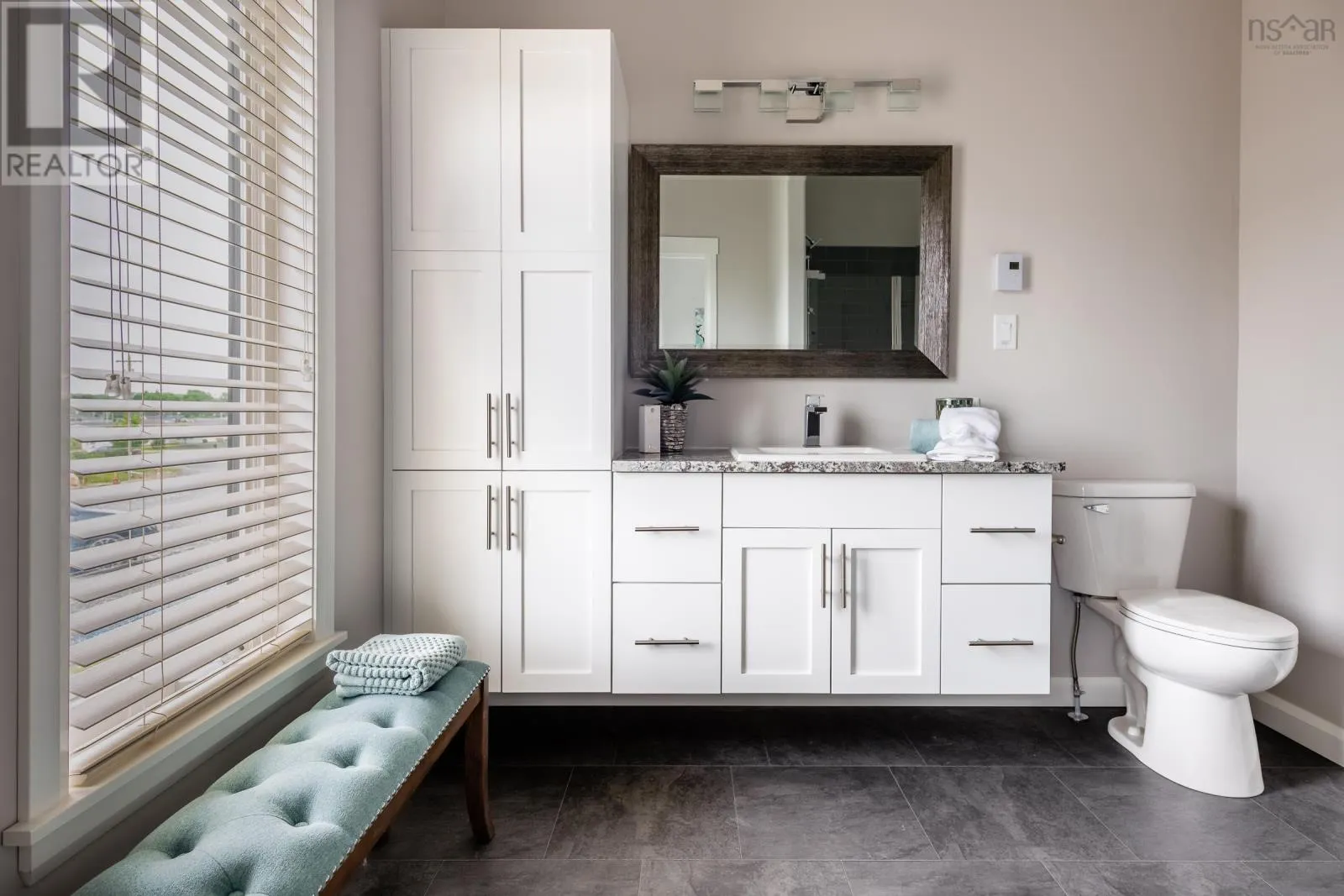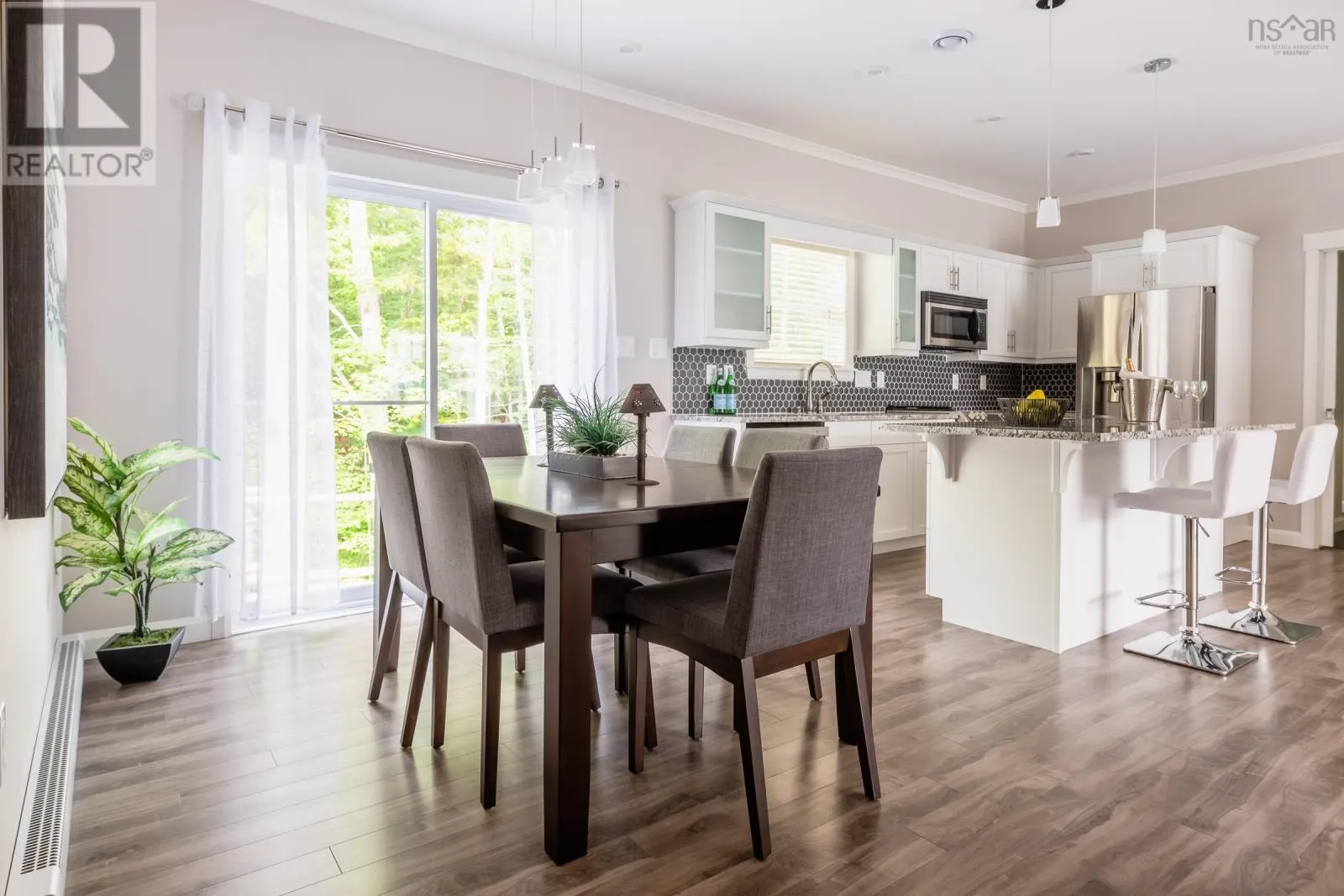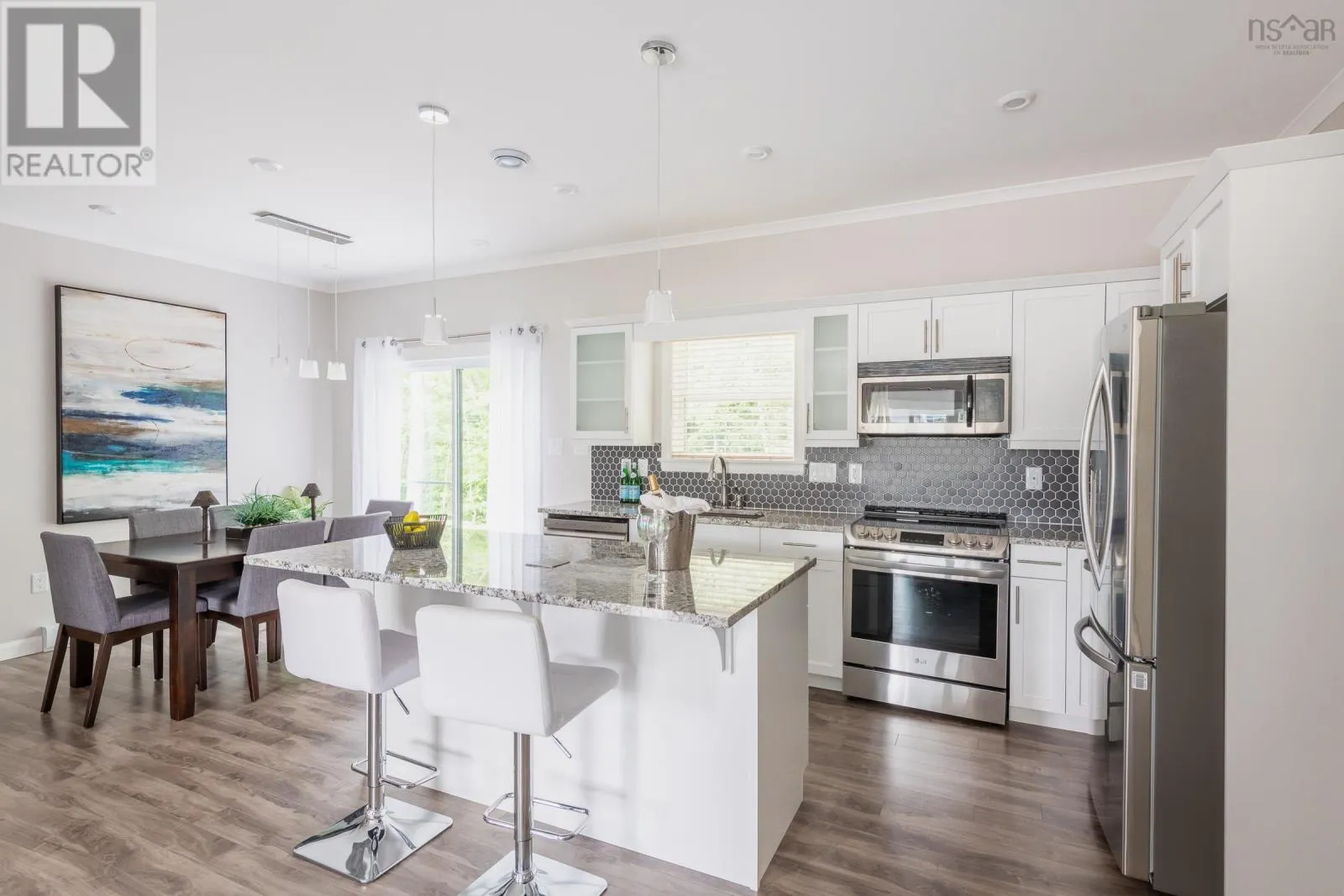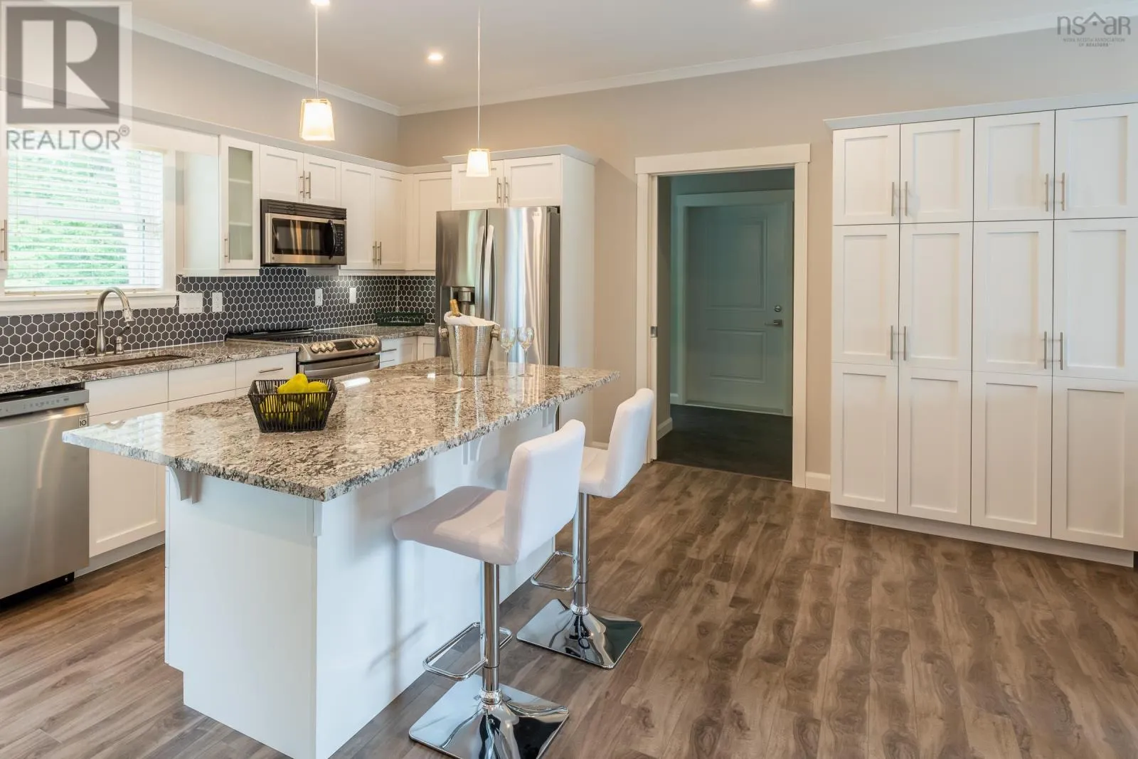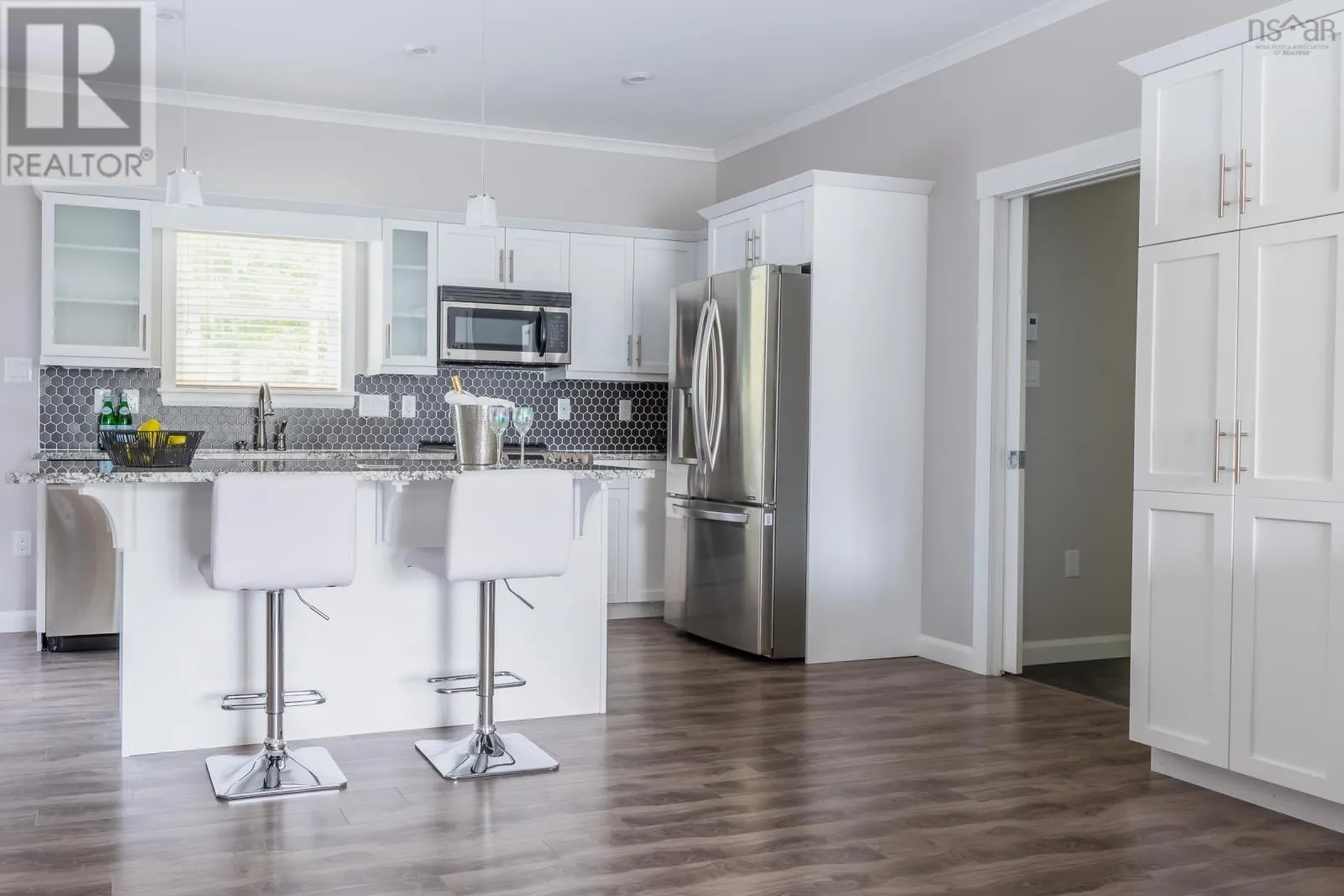 NORTH ST, BRIDGEWATER TO HAVEN DRIVE. This beautifully designed 3-bedroom, 2-bathroom bungalow is located in the desirable LaHave Heights II in Bridgewater and offers the perfect blend of modern comfort and traditional charm. A formal entry with a walk-in closet welcomes you into the home and opens into a bright, spacious living room. The open-concept layout connects the kitchen and dining area in a functional flow thats ideal for hosting family and friends or simply enjoying day-to-day living. The exterior makes a bold first impression with black windows, a black trim package, architectural peaks, and accent siding - design choices that give this home standout curb appeal. Inside, youll find a number of thoughtful upgrades, including 9' ceilings that enhance the airy feel of the space, granite countertops in the kitchen and bathrooms, and upgraded Maxx U-Tile in both bathrooms. The kitchen features white birch cabinetry paired with modern hardware, creating a clean and stylish look throughout. A mudroom with laundry room provides added convenience for everyday living. The total square footage of the home, including the attached storage area, is 1,792 sq ft. Please note: due to the surface mount foundation, the garage is intended for storage only and is not suitable for vehicle parking, however it is possible for an engineered floor to be installed which would allow vehicle storage. Rear deck to be completed by vendor prior to closing. The site fee is $440/month (includes sewer). (id:27476)