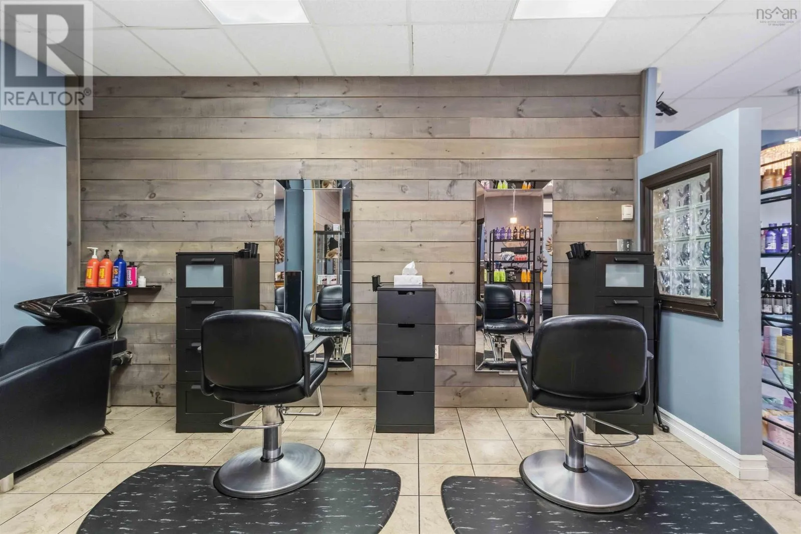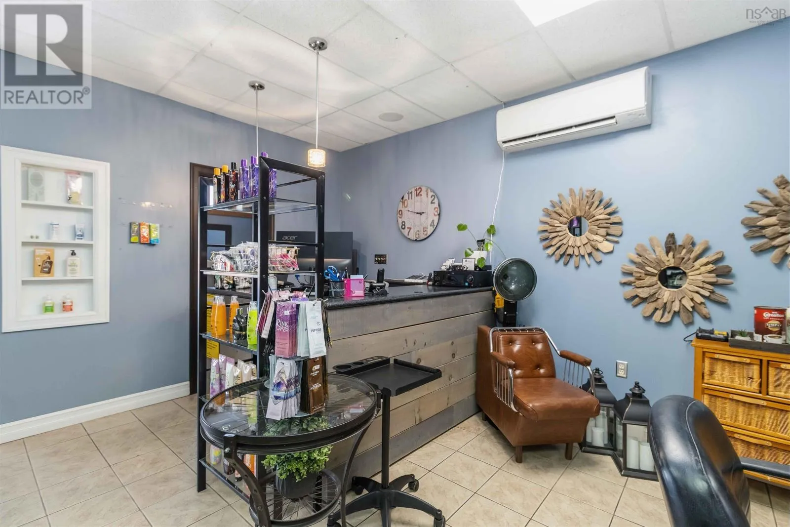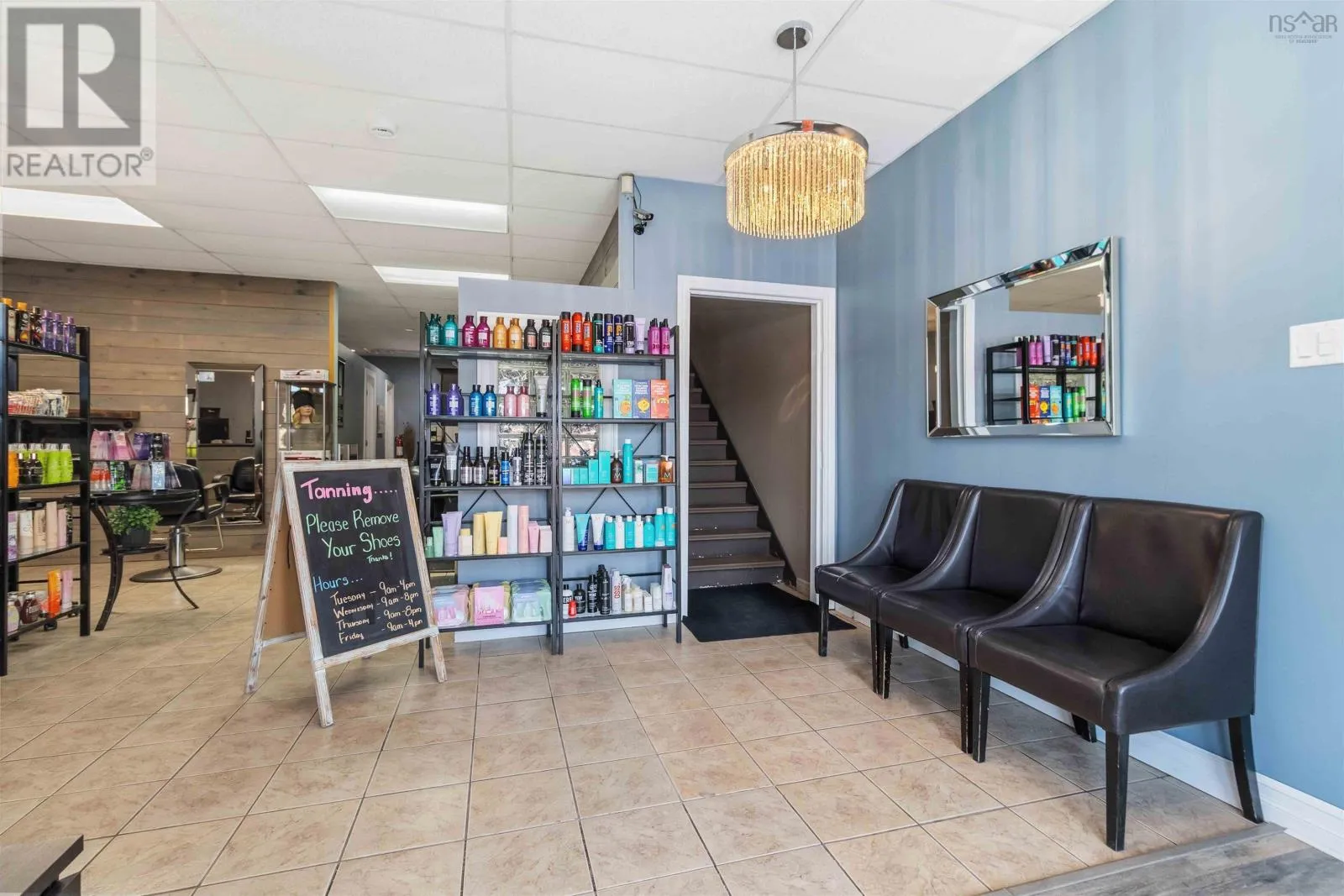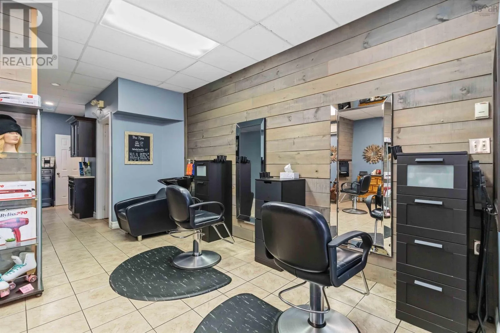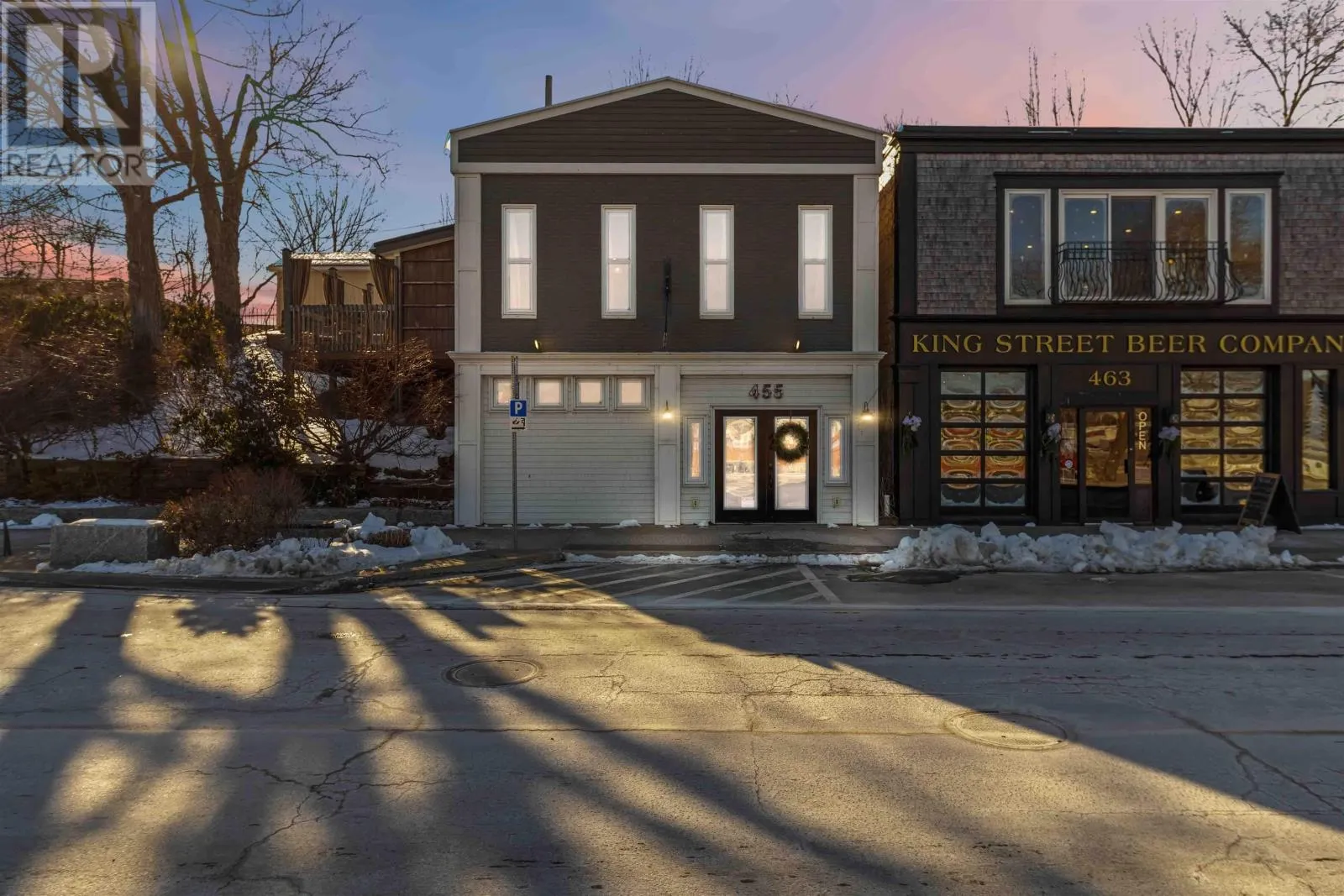 Corner of King Street & Dufferin Street, Town of Bridgewater. Renovated mixed-use commercial/residential building located on high-traffic King Street in downtown Bridgewater, within walking distance to shops, restaurants, professional services, and other key amenities. The ground-level commercial unit offers approximately 1,100 sq.ft. with prominent storefront display, currently owner-occupied as a hair salon and tanning studio. Tanning beds may be negotiated with the sale; hair salon equipment is excluded. The space includes a public washroom with washer and dryer, rear access, and on-site parking - an extremely rare and highly valuable feature in this location - along with 12'x16' and 10' x 12' storage sheds. The commercial space will be available for immediate lease upon closing. The second-floor residential unit also spans approximately 1,100 sq. ft. and underwent major renovations completed in late 2025. With its own private entrance, the unit features an open-concept layout with two bedrooms and one bath. The modern kitchen includes matching appliances including a brand new dishwasher, a large island, and opens to a covered deck ideal for enjoying views of the LaHave River. The residential unit is currently under a periodic year-to-year lease which can be terminated with 2-months notice. The building received a full exterior facelift in 2018 including new windows, a new metal roof and updated electrical panel in 2024. This is a strong investment opportunity in a sought-after, high-exposure, walkable downtown location with two easily leasable units - further strengthened by the rare inclusion of on-site parking. It is equally well-suited for an owner-occupier seeking a centrally located residence with river views while operating a business with excellent street visibility below. Beyond its current configuration, the property offers significant potential for redevelopment into additional revenue-generating residential units, subject to zoning and approvals. Consult the associated documents for more details. (id:27476)