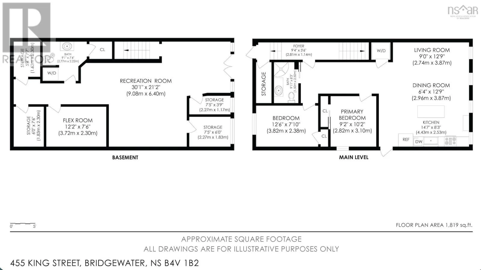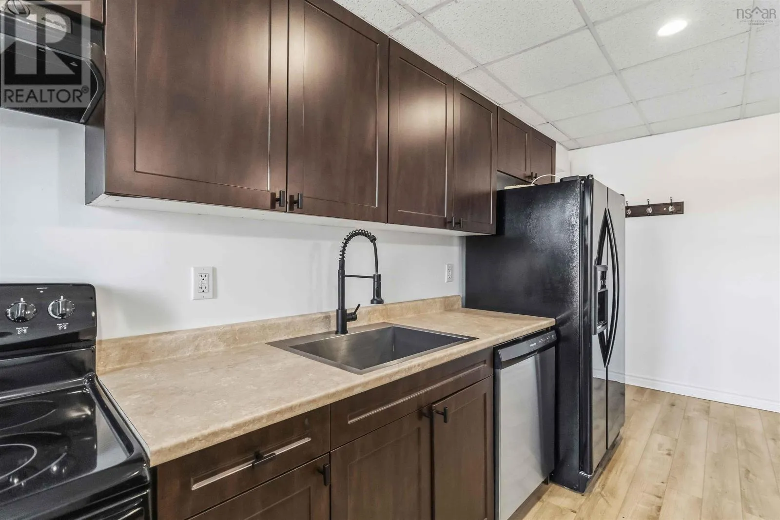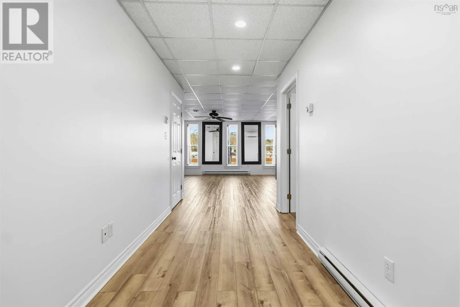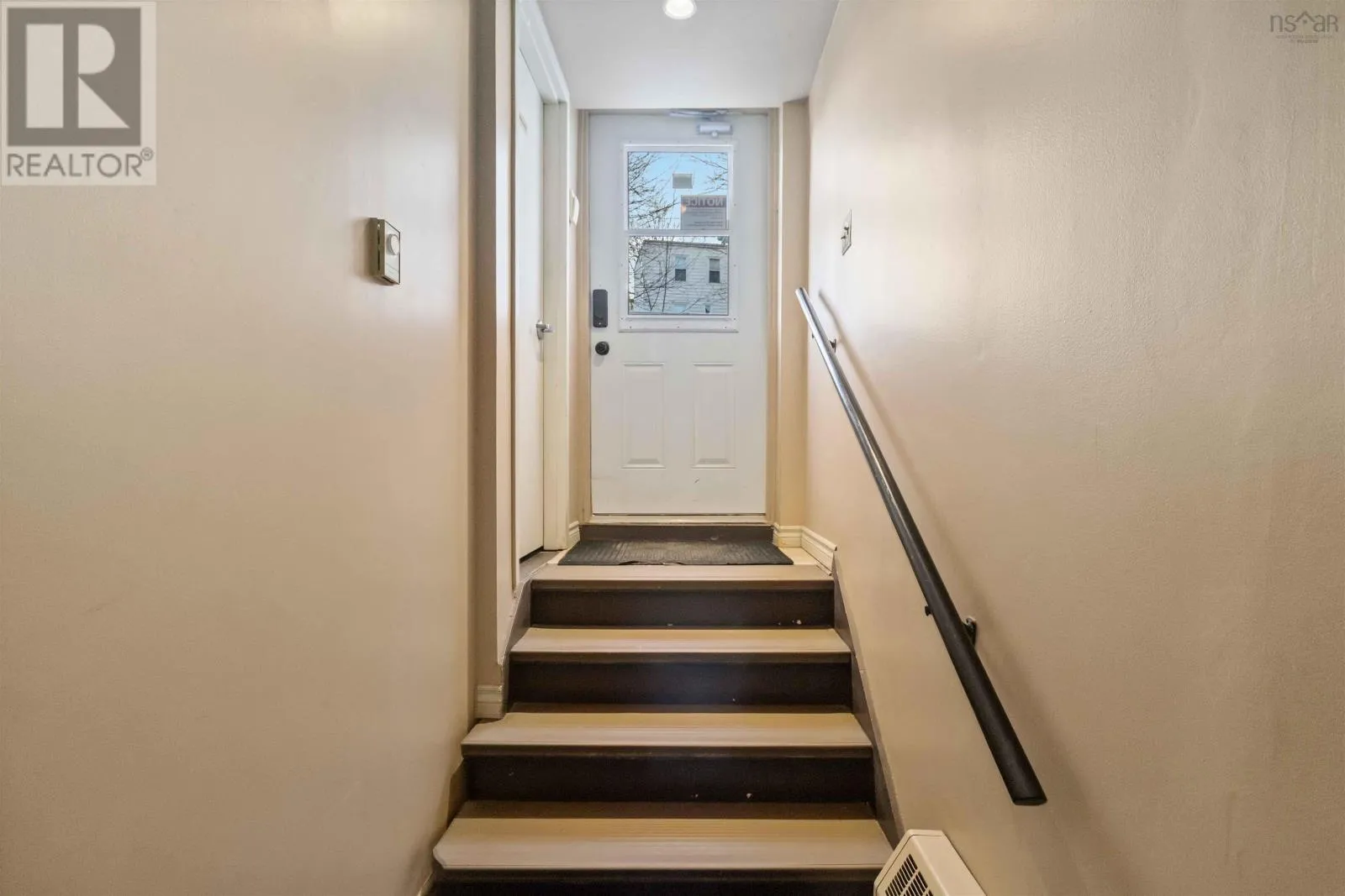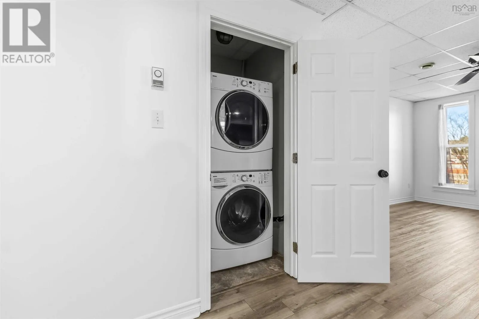 Corner of King Street & Dufferin Street, Town of Bridgewater. Renovated mixed-use commercial/residential building located on high-traffic King Street in downtown Bridgewater, within walking distance to shops, restaurants, professional services, and other key amenities. The ground-level commercial unit offers approximately 1,100 sq.ft. with prominent storefront display, currently owner-occupied as a hair salon and tanning studio. Tanning beds may be negotiated with the sale; hair salon equipment is excluded. The space includes a public washroom with washer and dryer, rear access, and on-site parking - an extremely rare and highly valuable feature in this location - along with 12'x16' and 10' x 12' storage sheds. The commercial space will be available for immediate lease upon closing. The second-floor residential unit also spans approximately 1,100 sq. ft. and underwent major renovations completed in late 2025. With its own private entrance, the unit features an open-concept layout with two bedrooms and one bath. The modern kitchen includes matching appliances including a brand new dishwasher, a large island, and opens to a covered deck ideal for enjoying views of the LaHave River. The residential unit is currently under a periodic year-to-year lease which can be terminated with 2-months notice. The building received a full exterior facelift in 2018 including new windows, a new metal roof and updated electrical panel in 2024. This is a strong investment opportunity in a sought-after, high-exposure, walkable downtown location with two easily leasable units - further strengthened by the rare inclusion of on-site parking. It is equally well-suited for an owner-occupier seeking a centrally located residence with river views while operating a business with excellent street visibility below. Beyond its current configuration, the property offers significant potential for redevelopment into additional revenue-generating residential units, subject to zoning and approvals. Consult the associated documents for more details. (id:27476)