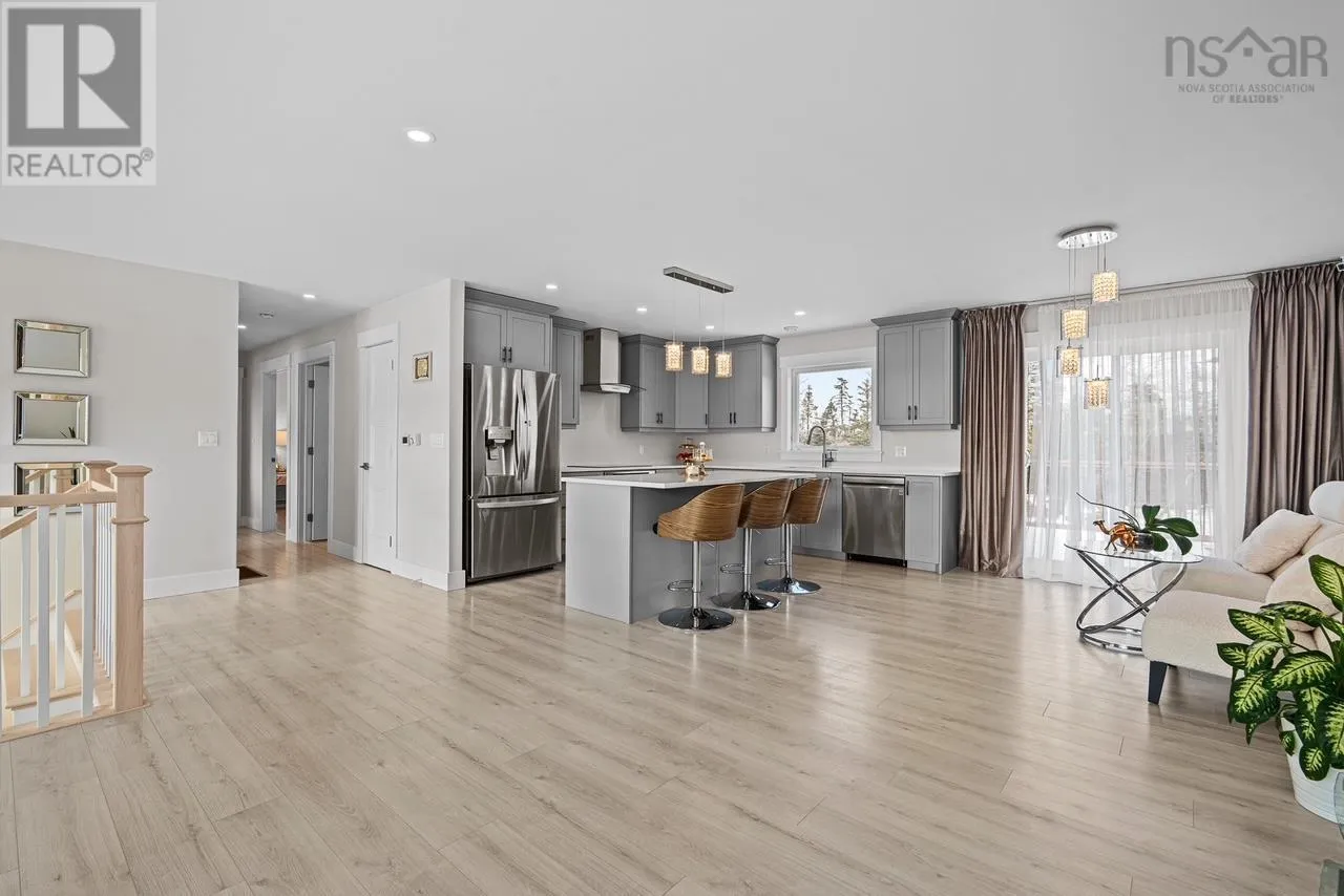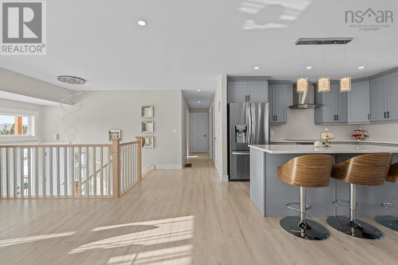Prospect Road to Club Road to Lynwood Drive. Quiet cul-de-sac living on a spacious, secluded lot backing onto Crown land with a beautiful view of the lake, all just 20 minutes to Downtown Halifax. This meticulously maintained, five-year-old split entry home offers over 2,000 sq ft of finished living space with 5 bedrooms and 3 full baths, an attached garage, and a layout that provides both comfort and flexibility for modern living. The home has been thoughtfully upgraded and exceptionally cared for since day one, featuring a fully ducted heat pump system, upgraded countertops, modern appliances, and upgraded fixtures throughout for a clean, contemporary feel. The bright, open-concept main living area is perfect for entertaining while taking in peaceful lake views, while the lower level includes two bedrooms (an upgrade from the original plan), additional living space ideal for guests, a home office, or extended family, and a second washer and dryer hookup for added convenience. The attached garage features its own separate side entrance and walkout, offering excellent versatility and easy access. Outside, the fully landscaped front and back yards create a beautiful, usable outdoor space complete with a stunning fire pit area perfect for summer evenings, all set in a quiet, family-friendly neighbourhood with larger lots, privacy, and direct access to nature. Move-in ready, meticulously cared for, and better than new. (id:27476)