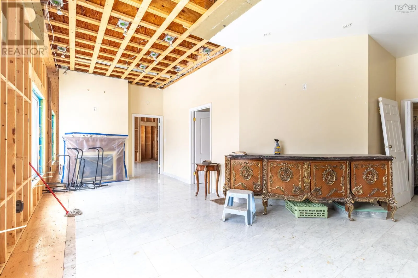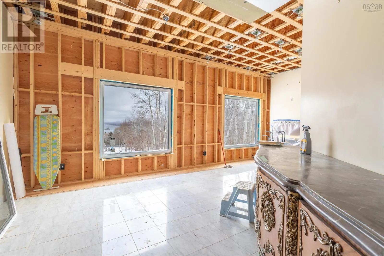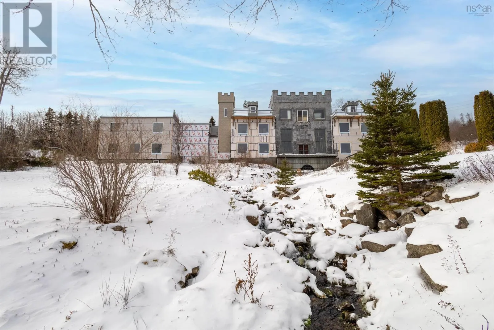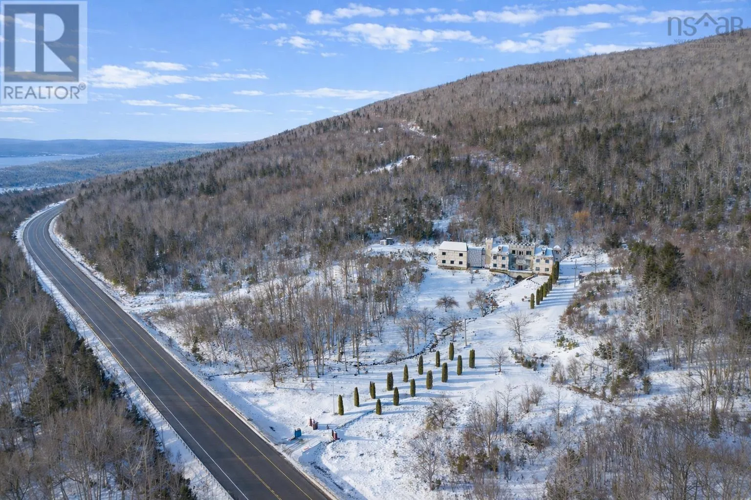 TC Highway 105 in Bucklaw. CIVIC 11980. GATED. A Cape Breton Castle! This extraordinary property presents a rare opportunity to complete and reimagine a landmark estate on almost 160 acres in Aberdeen, Cape Breton Island. Built in 1992, the castle-inspired structure is set within a striking natural landscape, highlighted by a rushing brook through the grounds, creating a truly unique atmosphere. Originally designed with commercial use in mind, the property has successfully operated as a luxury bed and breakfast and offers strong future potential as a retreat centre, boutique resort, or private estate. The expansive layout spans multiple levels and includes large common areas, 12 guest suites, a commercial kitchen, dining space, and recreational areas, reflecting the scale and ambition of its original vision. Significant progress has been made under current ownership, with major construction completed & extensive landscaping. Most of the exterior walls have been fully replaced with new studs, sheathing and most new windows installed, apart from the 'Great Room', providing a solid and modernized building envelope including most new roofing shingles. Interior finishing, including flooring, drywall in select areas, and painting, allowing a new owner to customize the final design and bring the project to completion. With the most intensive structural work behind you, the property is well positioned for transformation into an impressive destination. Surrounded by acreage, natural water features, amazing water views and access to the Bras dOr Lake, this is a rare offering for a buyer prepared to invest in completing a truly iconic Cape Breton property with exceptional scale and future potential. Purchase options could include a partnership opportunity with current owner who has an in-depth & profitable business plan along with a vision and passion for the property that was thought-out with the sellers late partner. A Cape Breton Castle could be your family legacy! (id:27476)