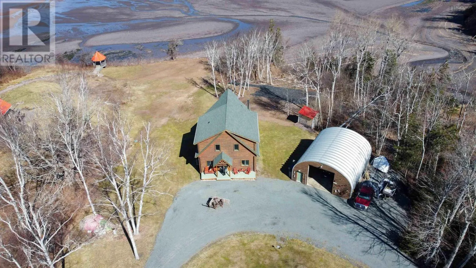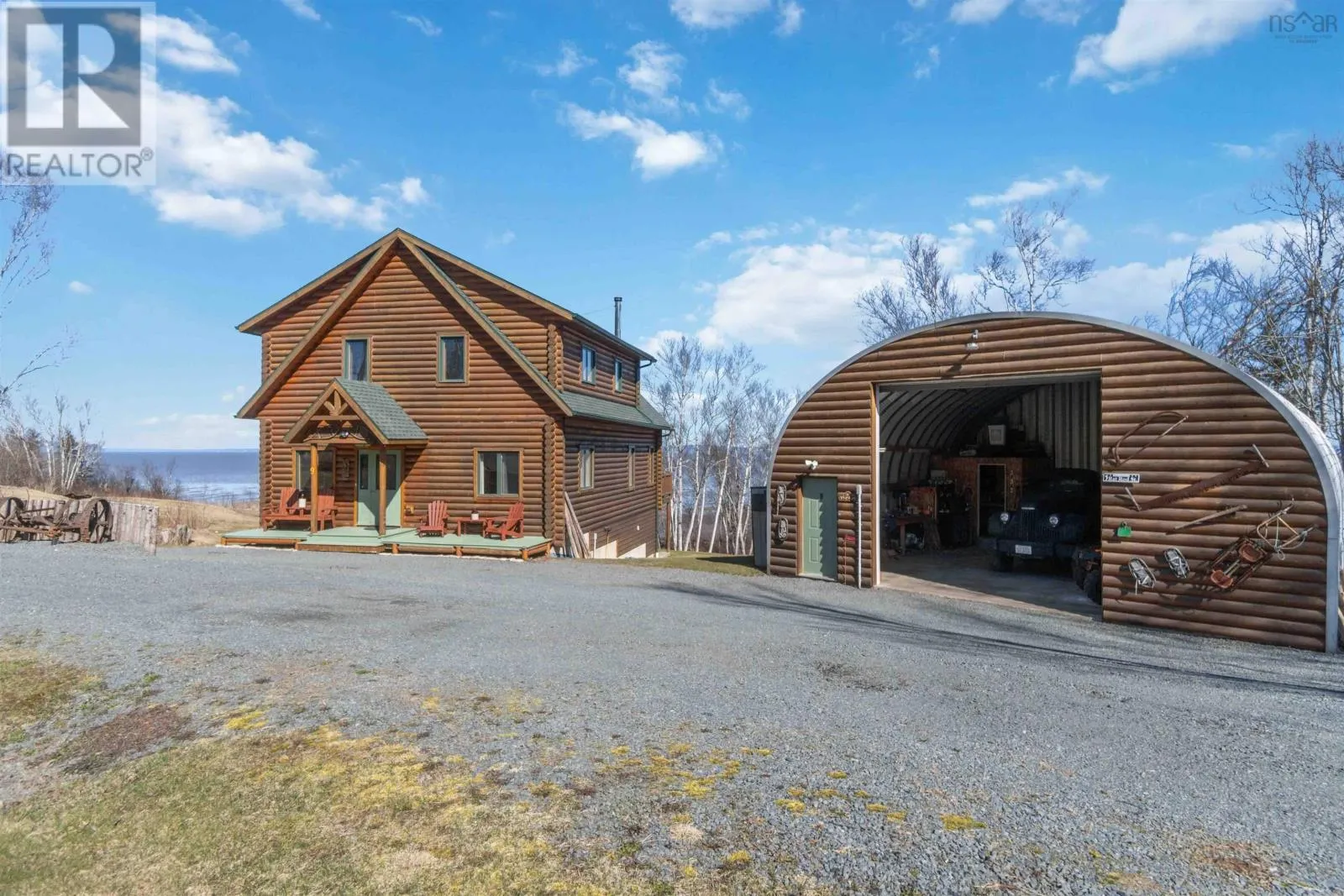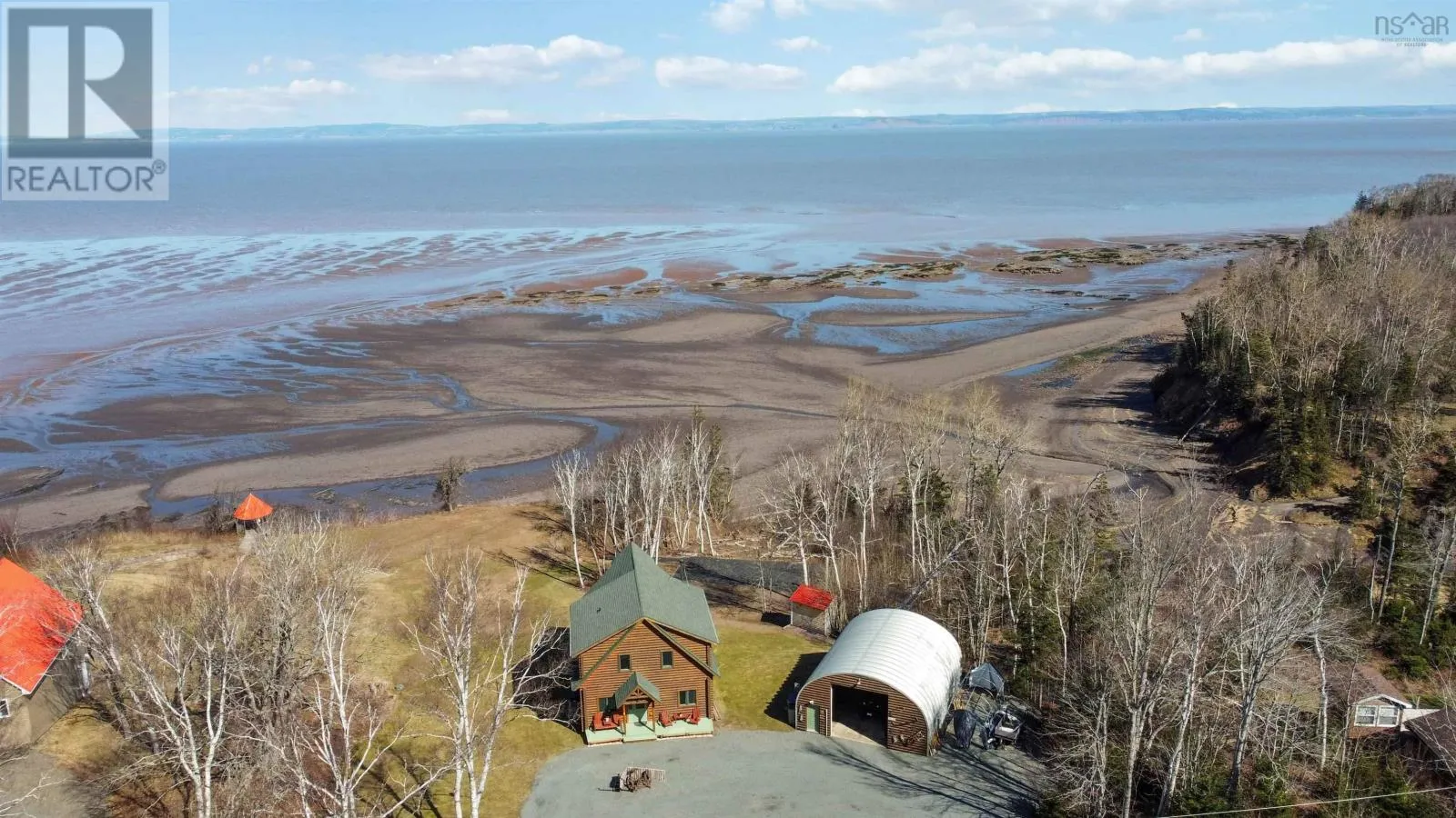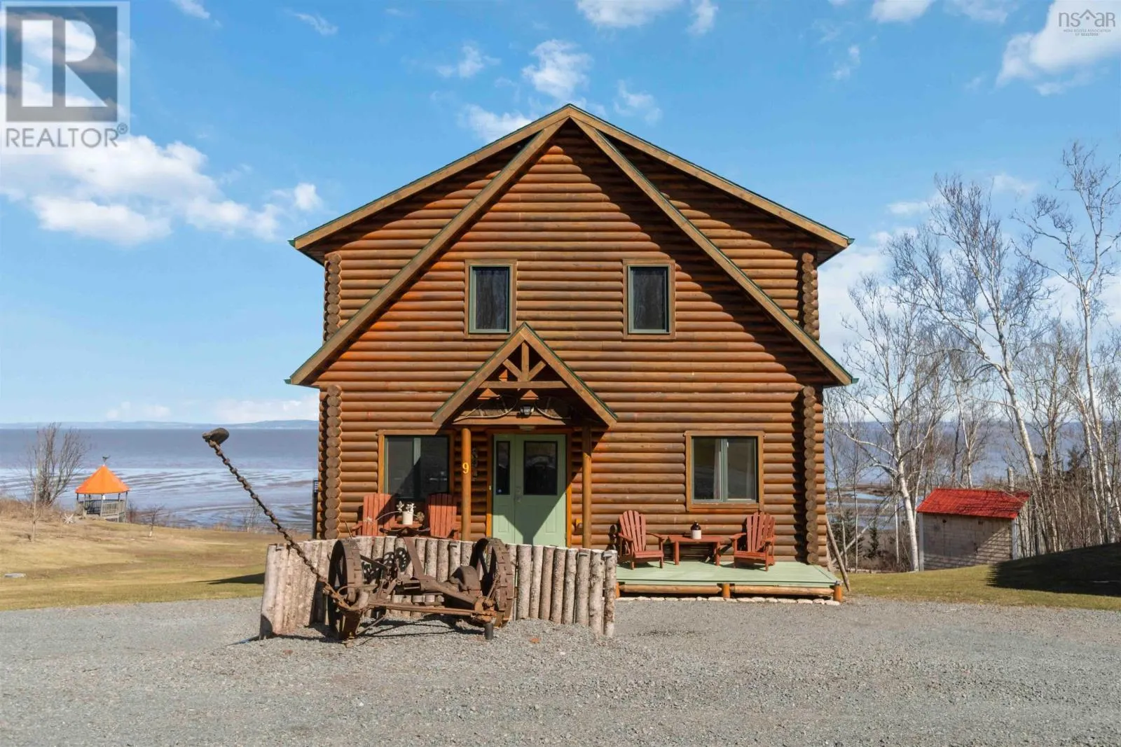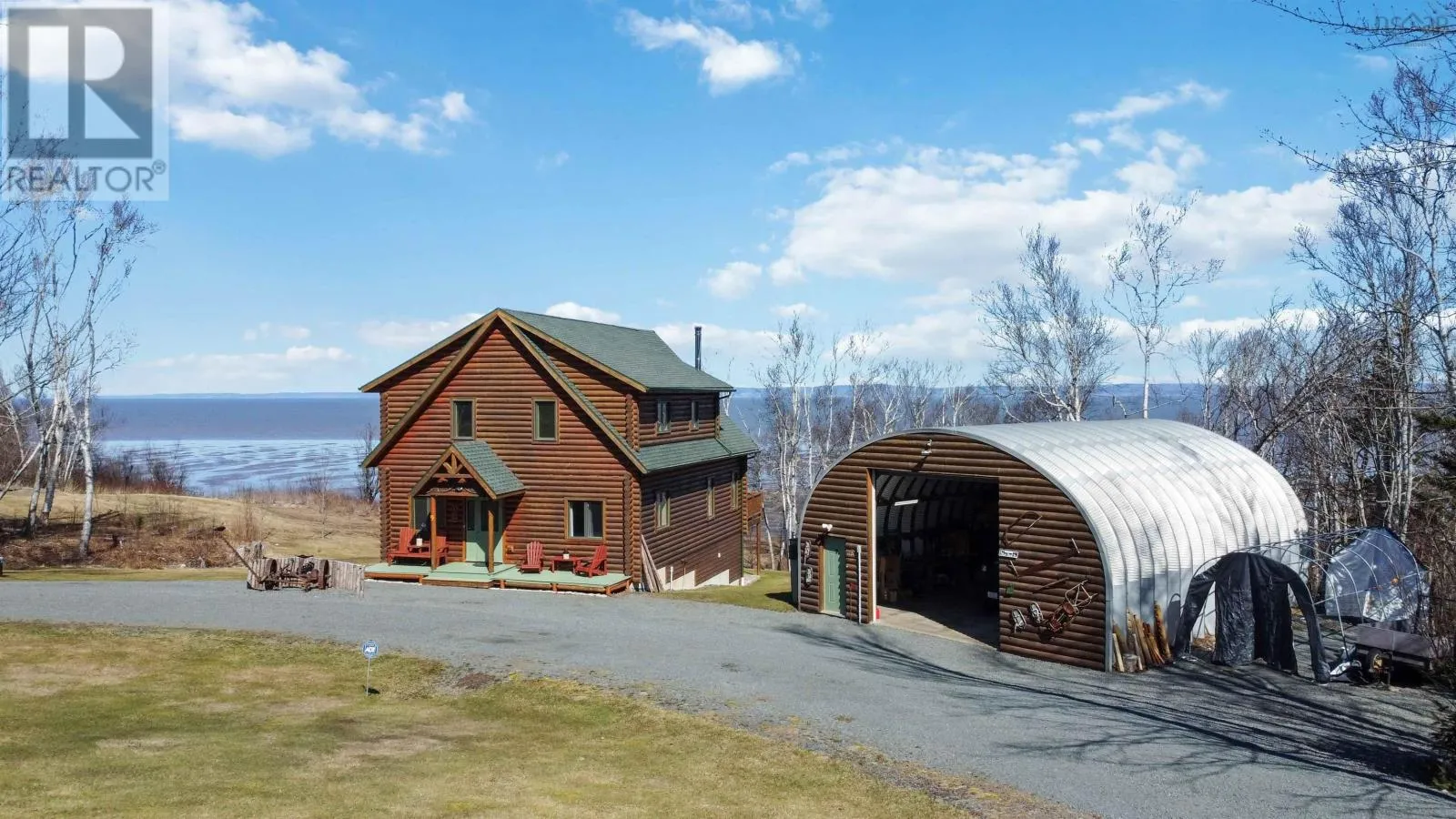 From the 101 Route 14. Turn left onto Avondale Road. Turn Right onto Lawrence Rd. Turn left onto Highway 215. Turn left onto the private dirt road Cambridge Rd. Turn right onto Karen Court. Property is immediately on the Left Discover serenity in this charming log home in Nova Scotia! Enjoy breathtaking panoramic views of the highest tides in the world and Canada's Ocean Playground. From either balcony, relax and observe whales, eagles, and fishing boats troll. With direct access to a well-maintained trail with a recenty reconstructed staircase and pathway, leading to a beachfront ideal for walking and fishing; relaxation awaits. This 4-bed, 3-bath sanctuary features central heating/cooling, heated floors, a cozy wood fireplace, and a generlink power meter. Culinary enthusiasts will love the open concept kitchen with a propane range. Plus, a large powered quonset garage with its own 2pc bath and outdoor shower. Come for the home, stay for the awe-inspiring view (id:27476)