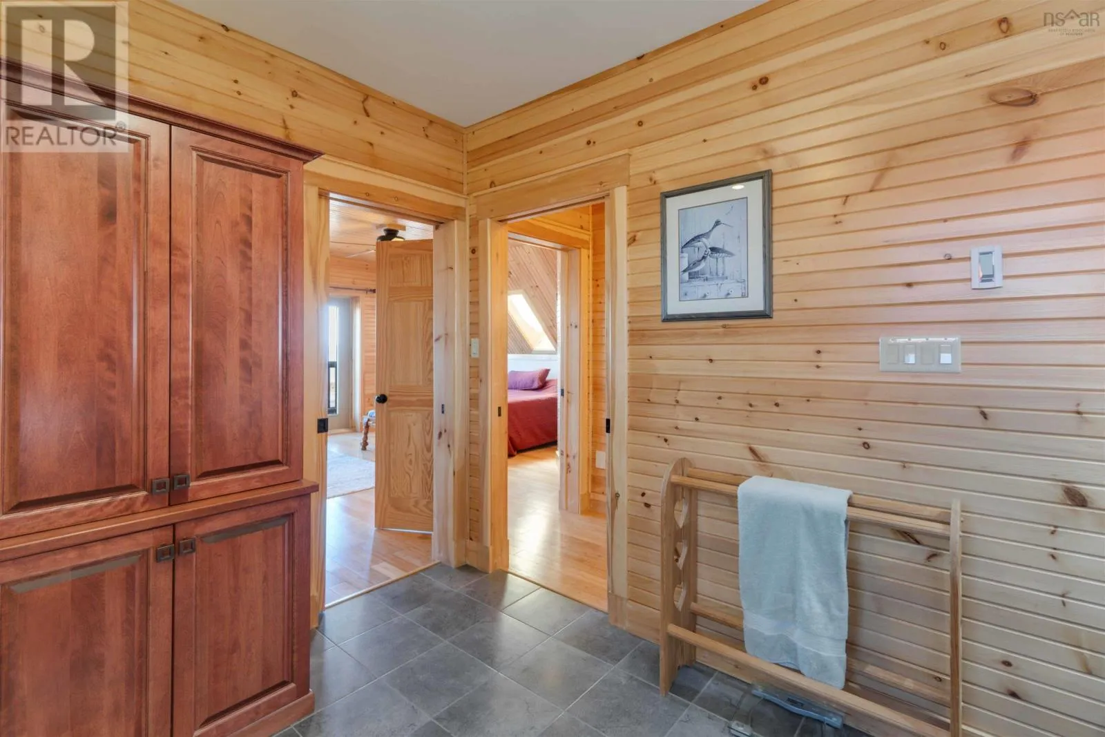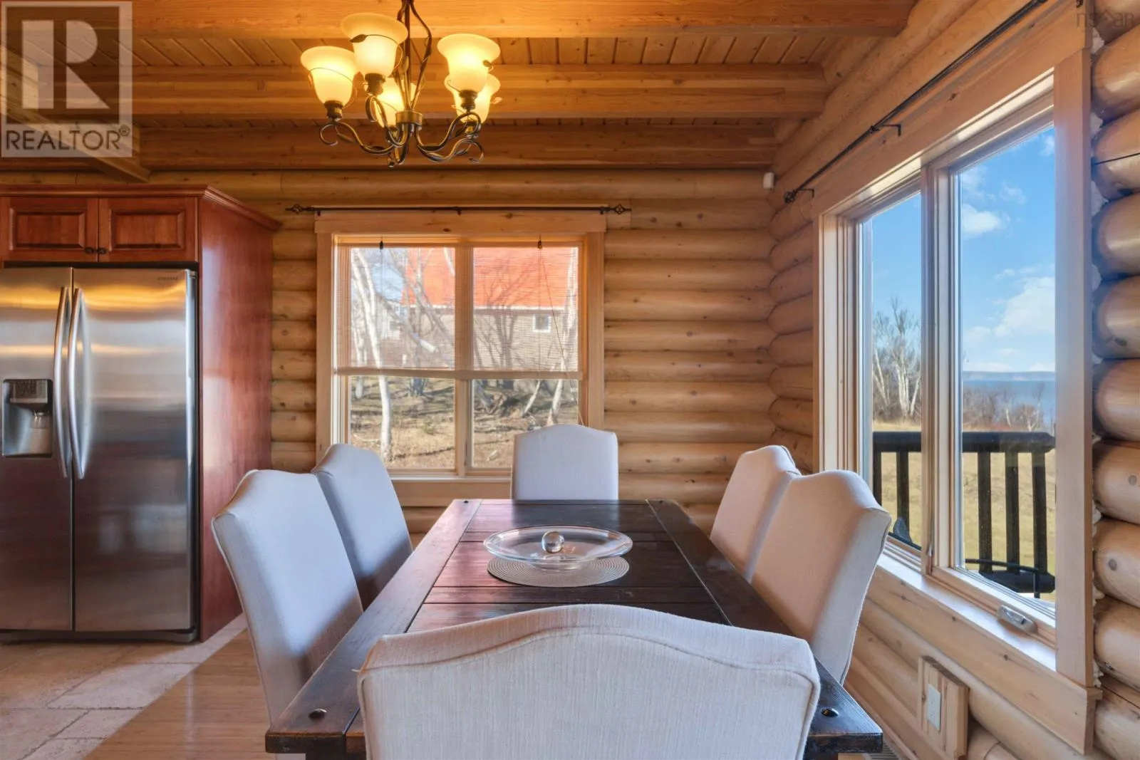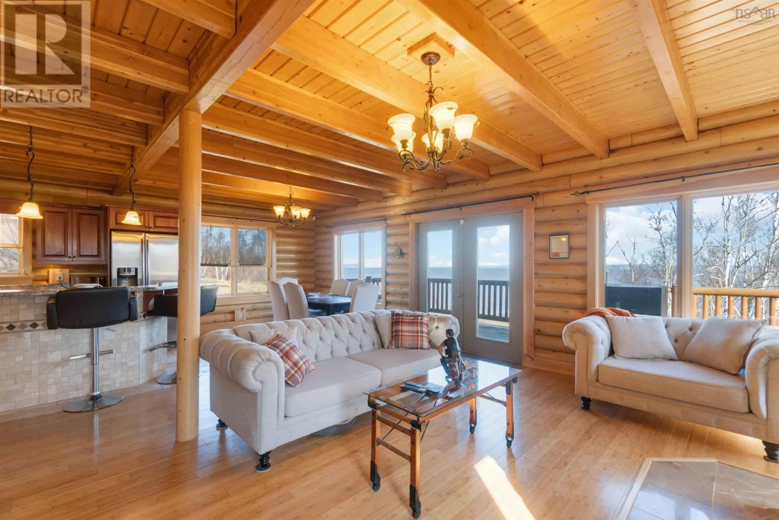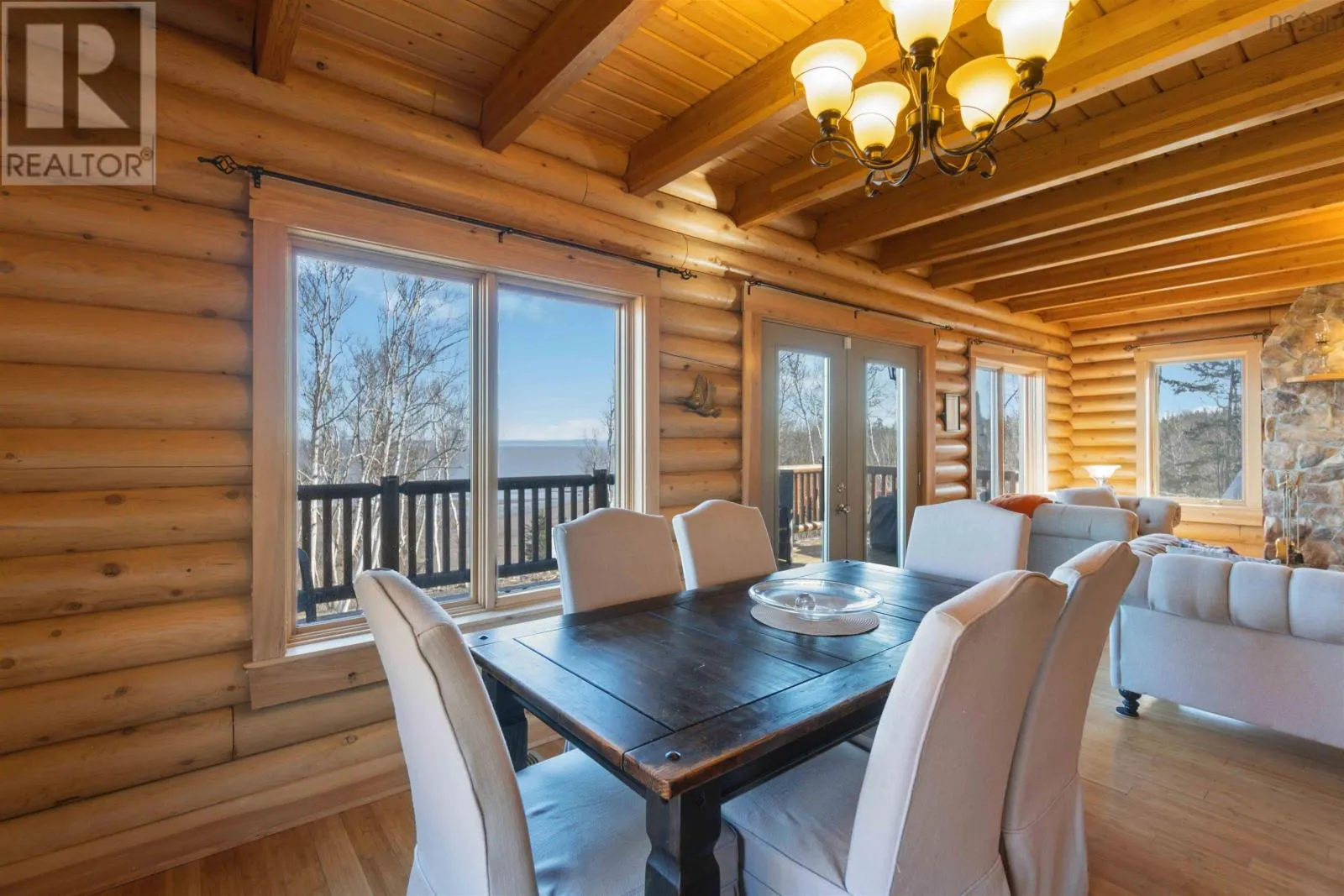 From the 101 Route 14. Turn left onto Avondale Road. Turn Right onto Lawrence Rd. Turn left onto Highway 215. Turn left onto the private dirt road Cambridge Rd. Turn right onto Karen Court. Property is immediately on the Left Discover serenity in this charming log home in Nova Scotia! Enjoy breathtaking panoramic views of the highest tides in the world and Canada's Ocean Playground. From either balcony, relax and observe whales, eagles, and fishing boats troll. With direct access to a well-maintained trail with a recenty reconstructed staircase and pathway, leading to a beachfront ideal for walking and fishing; relaxation awaits. This 4-bed, 3-bath sanctuary features central heating/cooling, heated floors, a cozy wood fireplace, and a generlink power meter. Culinary enthusiasts will love the open concept kitchen with a propane range. Plus, a large powered quonset garage with its own 2pc bath and outdoor shower. Come for the home, stay for the awe-inspiring view (id:27476)