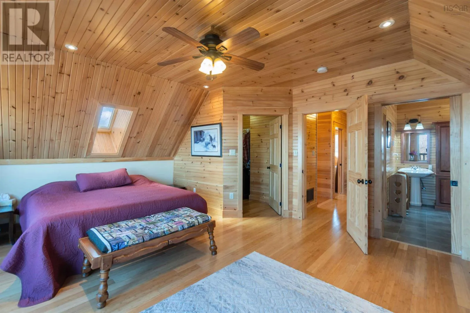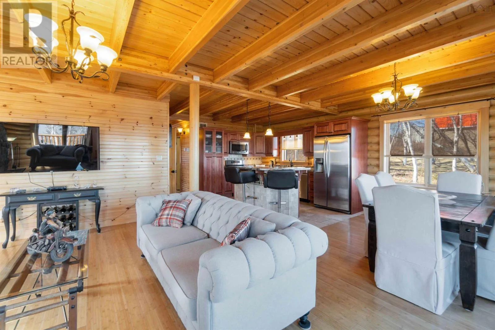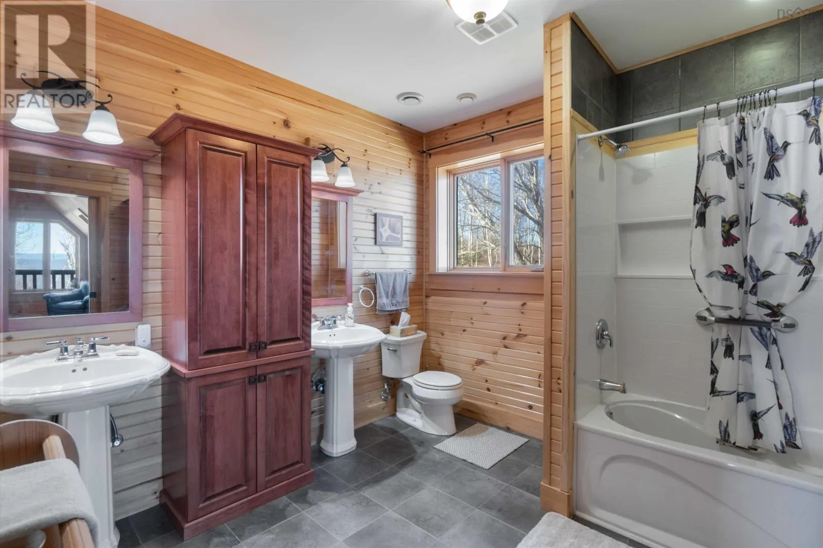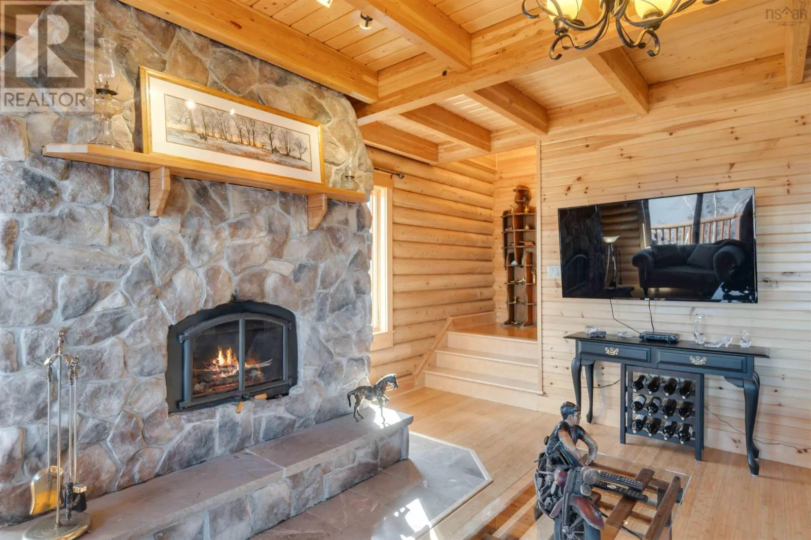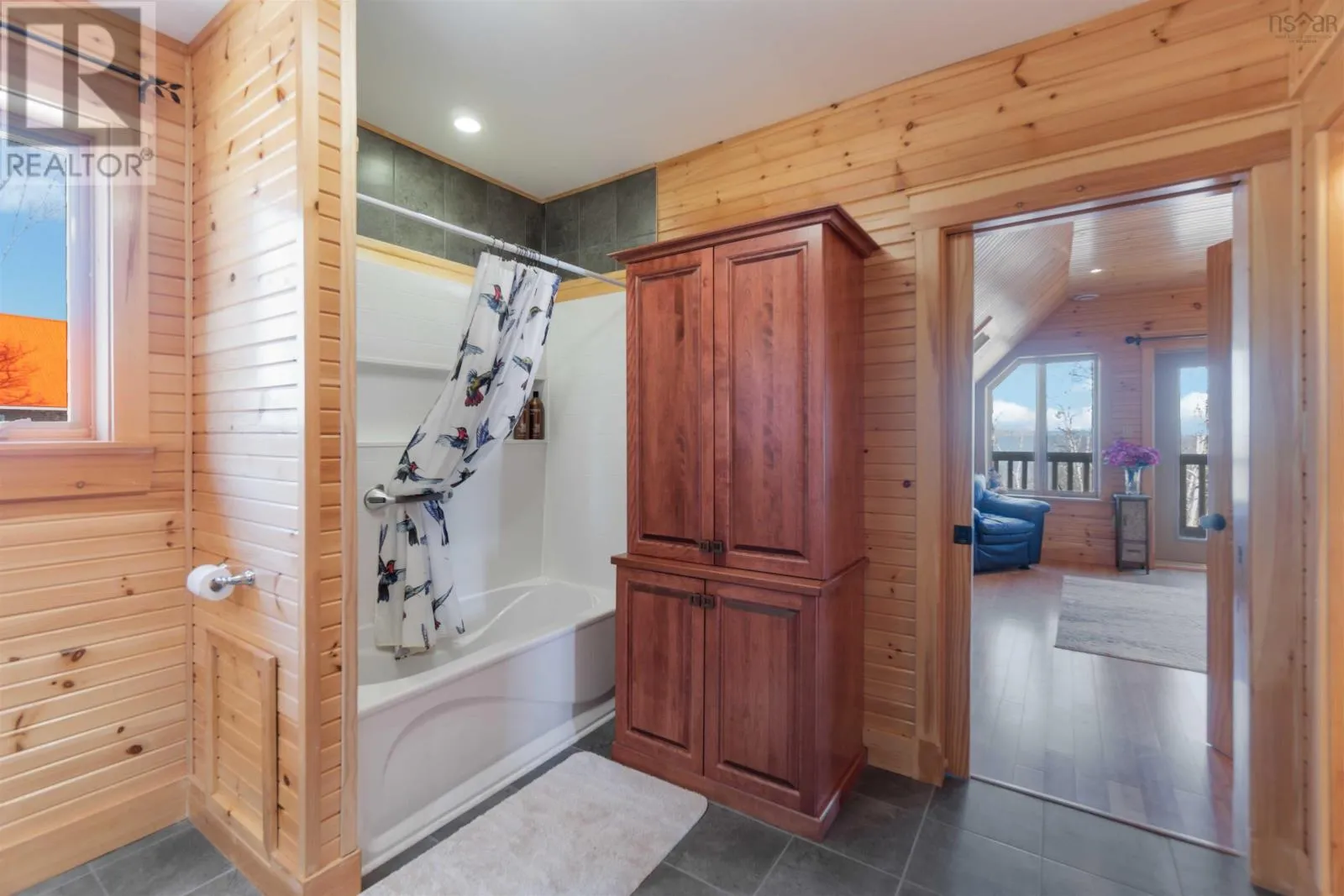 From the 101 Route 14. Turn left onto Avondale Road. Turn Right onto Lawrence Rd. Turn left onto Highway 215. Turn left onto the private dirt road Cambridge Rd. Turn right onto Karen Court. Property is immediately on the Left Discover serenity in this charming log home in Nova Scotia! Enjoy breathtaking panoramic views of the highest tides in the world and Canada's Ocean Playground. From either balcony, relax and observe whales, eagles, and fishing boats troll. With direct access to a well-maintained trail with a recenty reconstructed staircase and pathway, leading to a beachfront ideal for walking and fishing; relaxation awaits. This 4-bed, 3-bath sanctuary features central heating/cooling, heated floors, a cozy wood fireplace, and a generlink power meter. Culinary enthusiasts will love the open concept kitchen with a propane range. Plus, a large powered quonset garage with its own 2pc bath and outdoor shower. Come for the home, stay for the awe-inspiring view (id:27476)