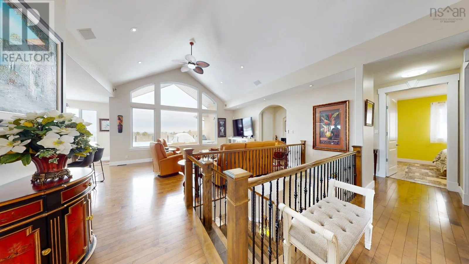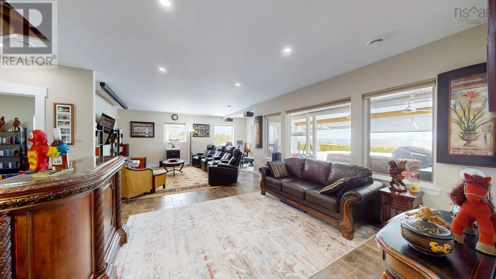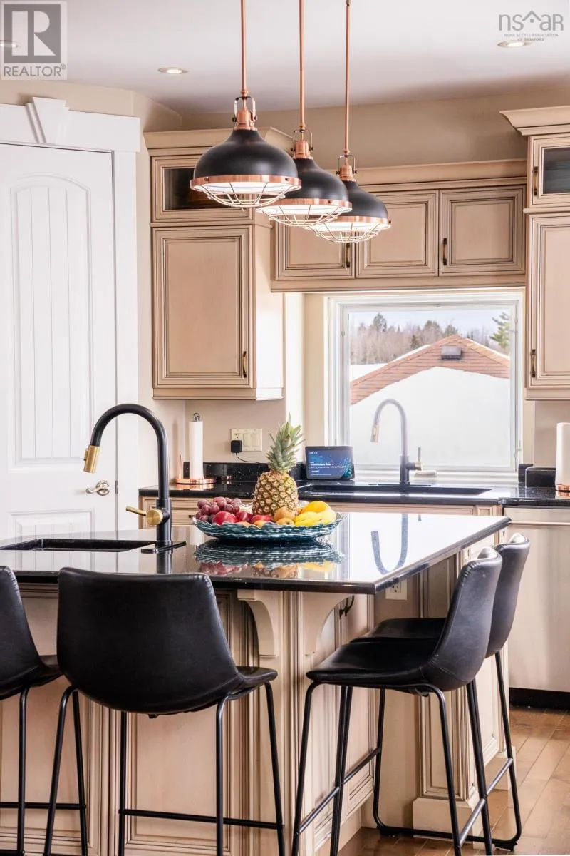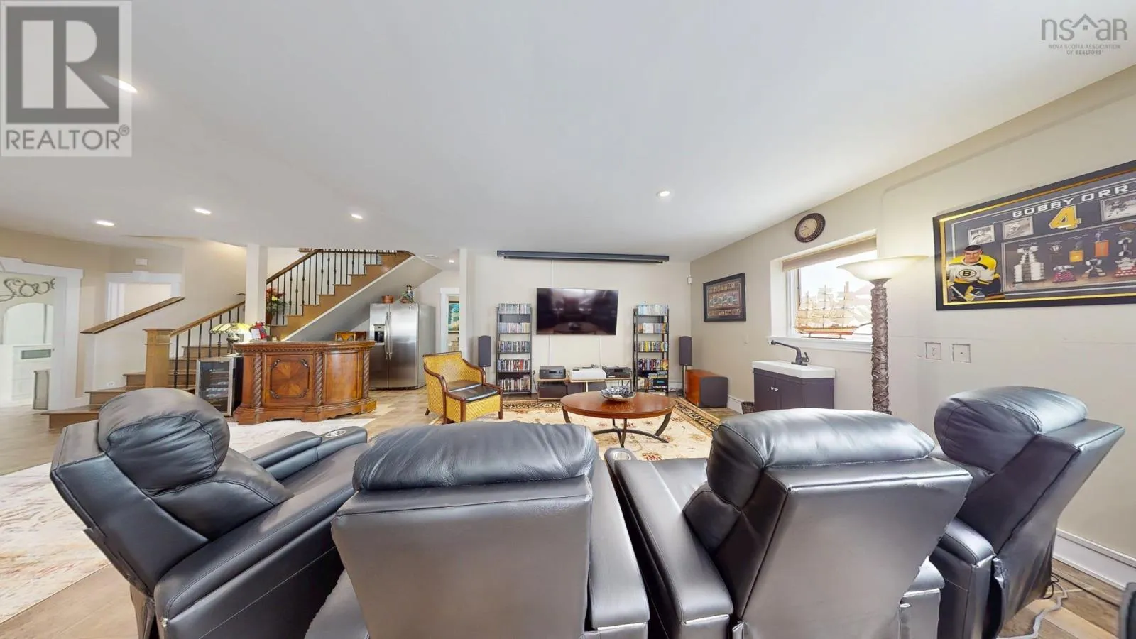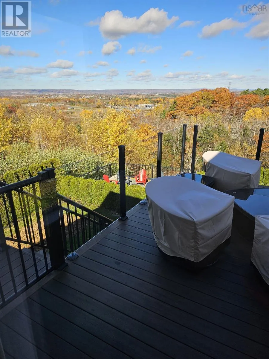 Follow New Minas Connector Road to Canaan Heights subdivision, follow Falcon Drive to 31, Home is on LHS Luxury bungalow living with exceptional upgradesthis 5-bedroom, fully finished walkout home offers stunning views of Blomidon and a lifestyle designed for comfort and entertaining, all close to amenities. Featuring two expansive primary suitesone on the main level and a second on the lower walkout levelboth with beautiful ensuites and large closets, with the lower suite offering an impressive custom cabinet system. The open-concept main level showcases 15 vaulted ceilings in the living room, 9 ceilings throughout, bright windows (many with built-in blinds), quartz countertops, abundant cabinetry, and a large kitchen island with veggie sink and generous storage. Two additional bedrooms complete the main floor. The walkout lower level offers a spacious family room, bar area, full bath, additional bedroom/office, and beautifully tiled stairs with hardwood nosing and lightingplus the second private primary suite, ideal for guests or multi-generational living. Outdoor living truly shines with a new composite deck with glass railings, a massive lower patio featuring a built-in outdoor kitchen (ceramic BBQ, smoker, pizza oven, fridge, and sink), dining area, and firepit and irrigation system. New propane heaters on patio remain, making this space ready to enjoy. Additional highlights include a 1.5-bay garage with 102 ceilings and beautiful built-ins, sauna, new washer and dryer, 3 fridges, 2 wine fridges, new water tank (2024), 5-year Venmar system, new furnace, large shed, and backyard safety railings. The garage, mechanical room, and patio all feature durable 2-part epoxy flooring. A thoughtfully designed luxury home with high-end finishes, incredible indoor-outdoor living, and exceptional attention to detailthis one must be seen to be fully appreciated. (id:27476)