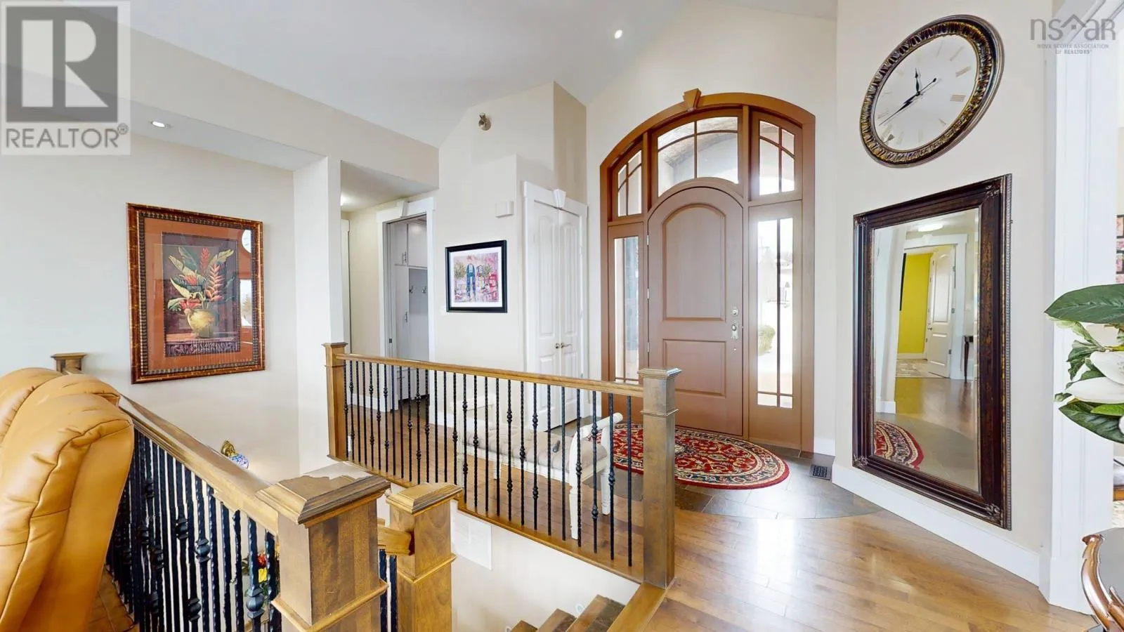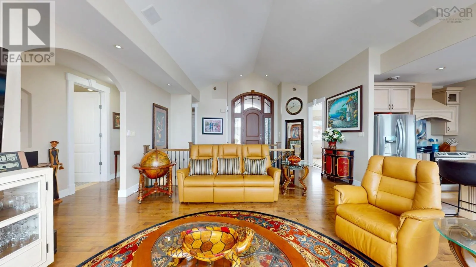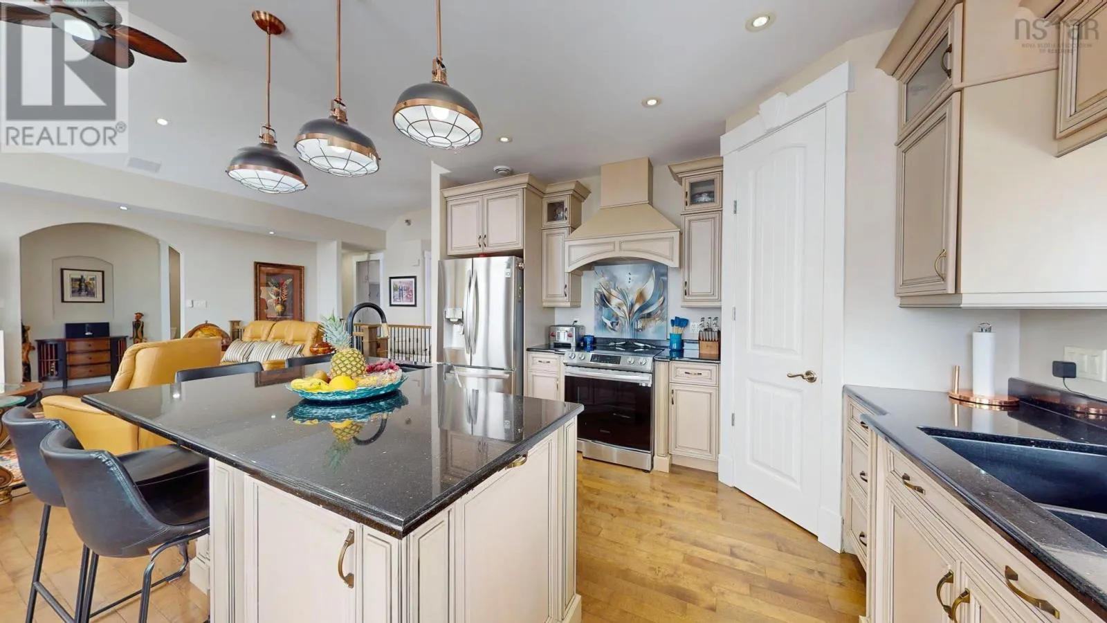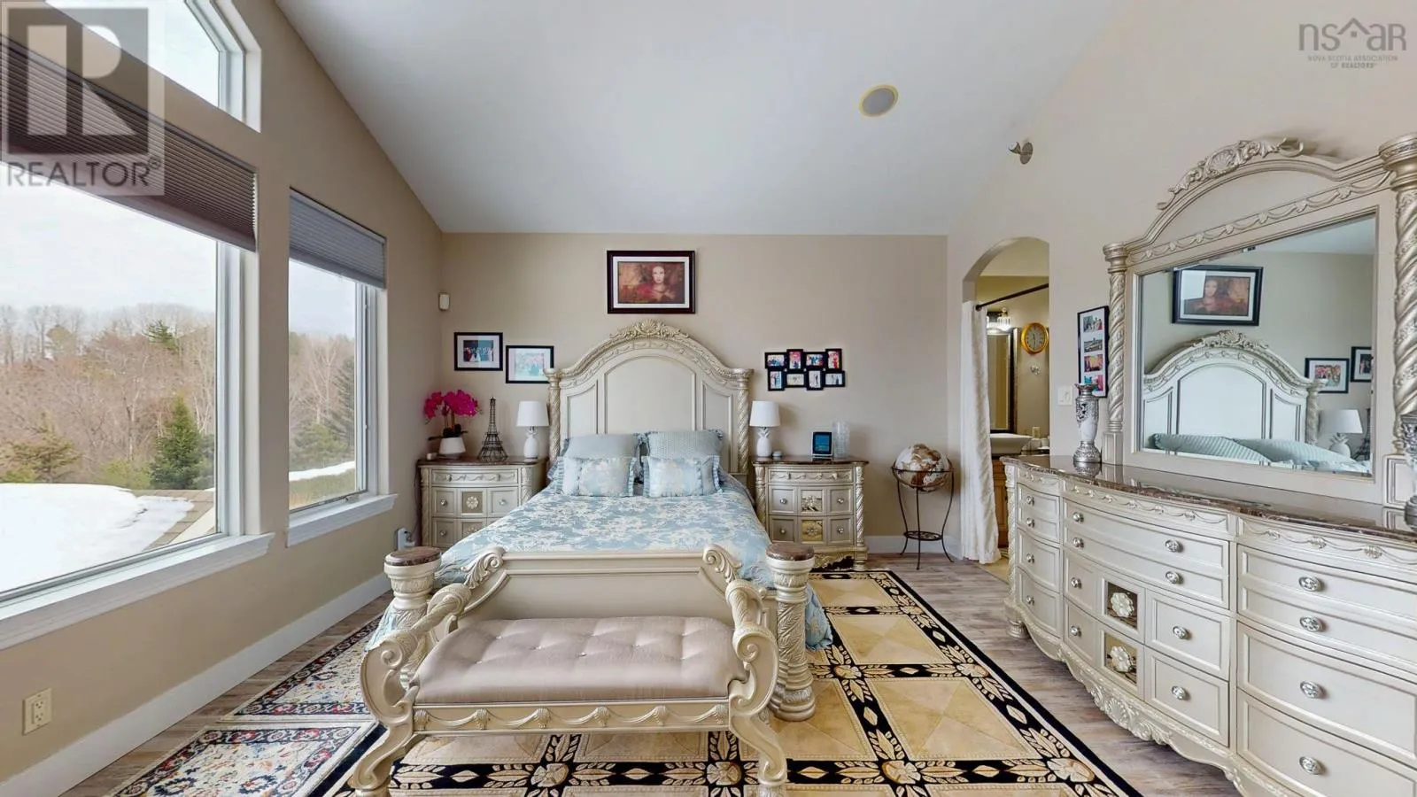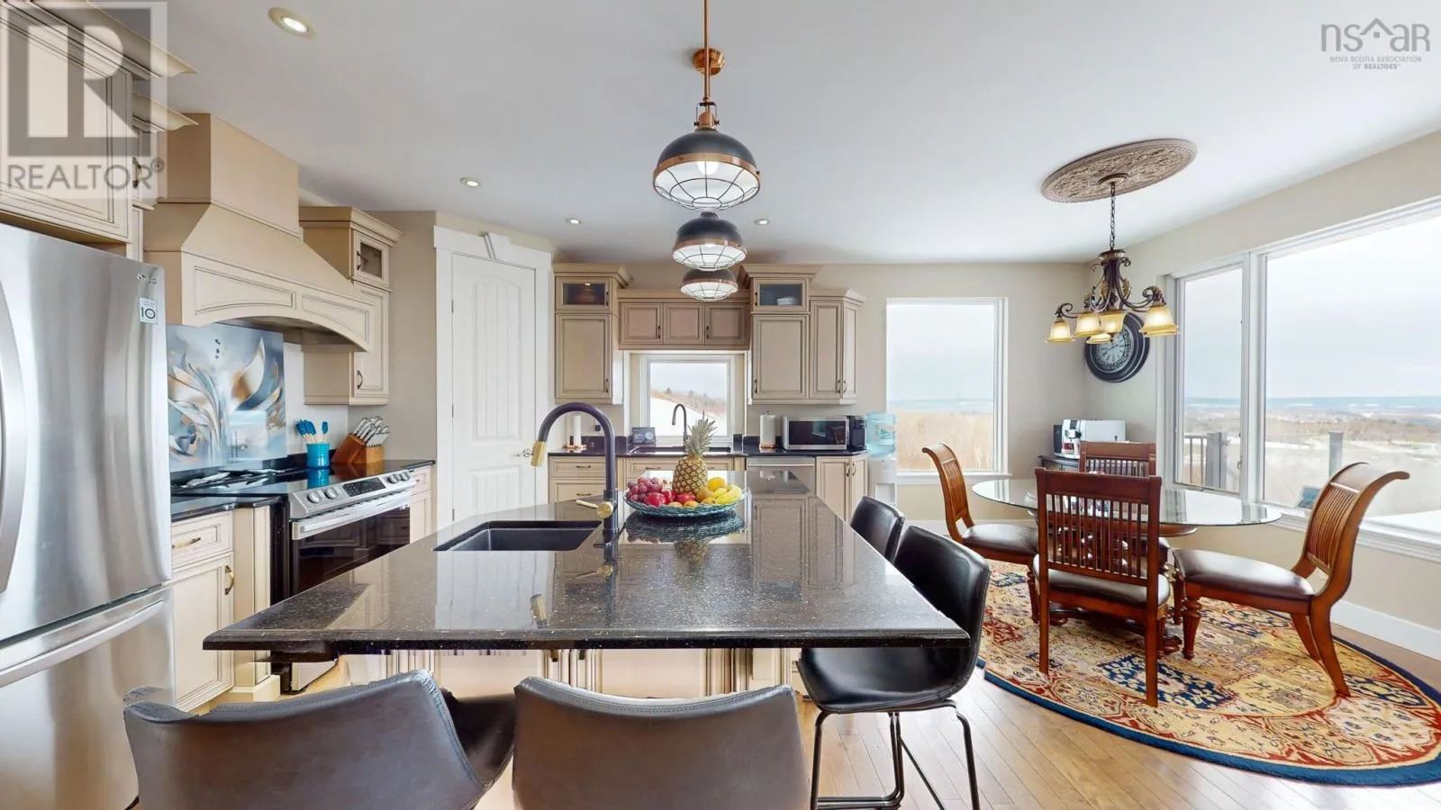 Follow New Minas Connector Road to Canaan Heights subdivision, follow Falcon Drive to 31, Home is on LHS Luxury bungalow living with exceptional upgradesthis 5-bedroom, fully finished walkout home offers stunning views of Blomidon and a lifestyle designed for comfort and entertaining, all close to amenities. Featuring two expansive primary suitesone on the main level and a second on the lower walkout levelboth with beautiful ensuites and large closets, with the lower suite offering an impressive custom cabinet system. The open-concept main level showcases 15 vaulted ceilings in the living room, 9 ceilings throughout, bright windows (many with built-in blinds), quartz countertops, abundant cabinetry, and a large kitchen island with veggie sink and generous storage. Two additional bedrooms complete the main floor. The walkout lower level offers a spacious family room, bar area, full bath, additional bedroom/office, and beautifully tiled stairs with hardwood nosing and lightingplus the second private primary suite, ideal for guests or multi-generational living. Outdoor living truly shines with a new composite deck with glass railings, a massive lower patio featuring a built-in outdoor kitchen (ceramic BBQ, smoker, pizza oven, fridge, and sink), dining area, and firepit and irrigation system. New propane heaters on patio remain, making this space ready to enjoy. Additional highlights include a 1.5-bay garage with 102 ceilings and beautiful built-ins, sauna, new washer and dryer, 3 fridges, 2 wine fridges, new water tank (2024), 5-year Venmar system, new furnace, large shed, and backyard safety railings. The garage, mechanical room, and patio all feature durable 2-part epoxy flooring. A thoughtfully designed luxury home with high-end finishes, incredible indoor-outdoor living, and exceptional attention to detailthis one must be seen to be fully appreciated. (id:27476)