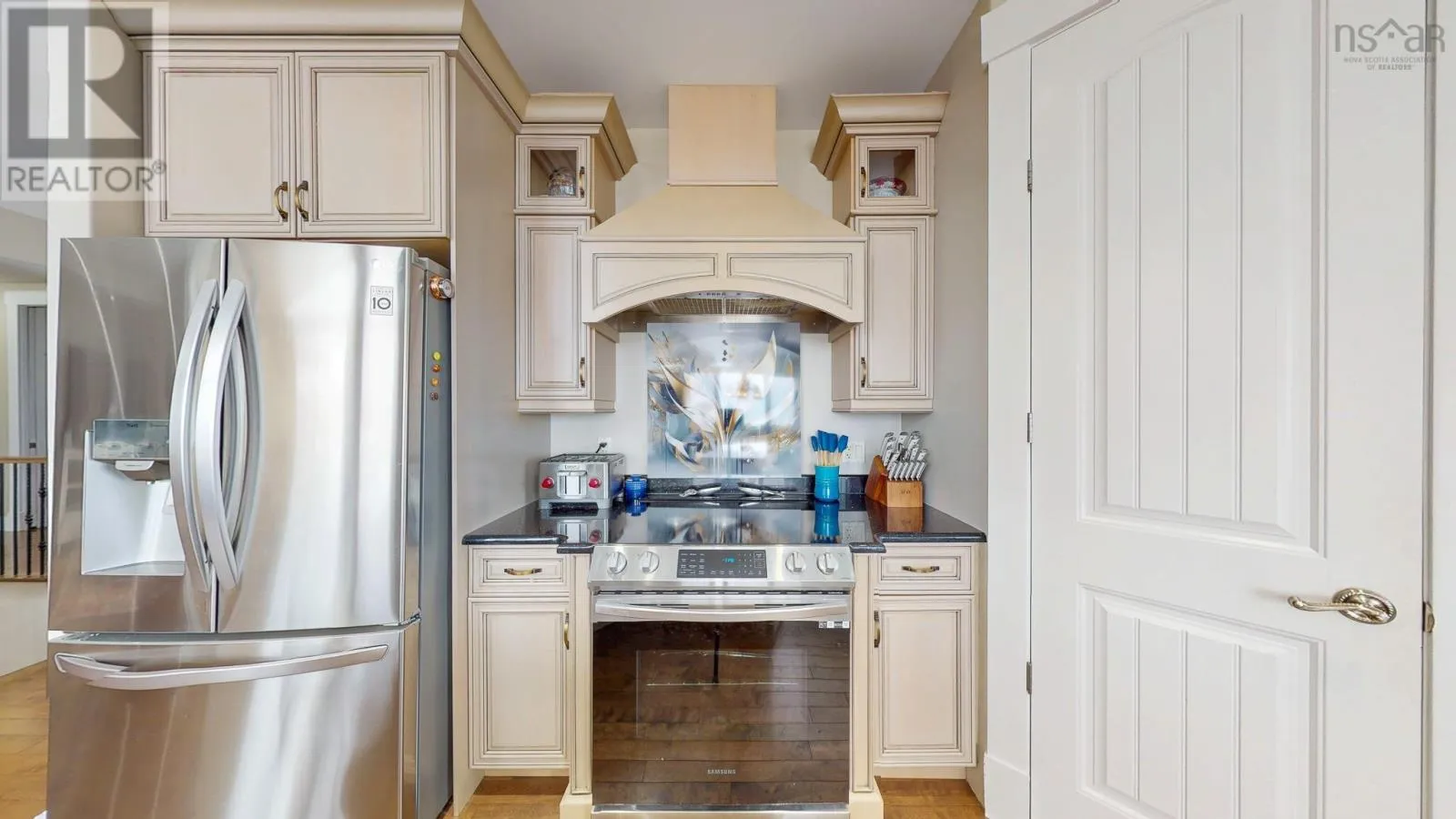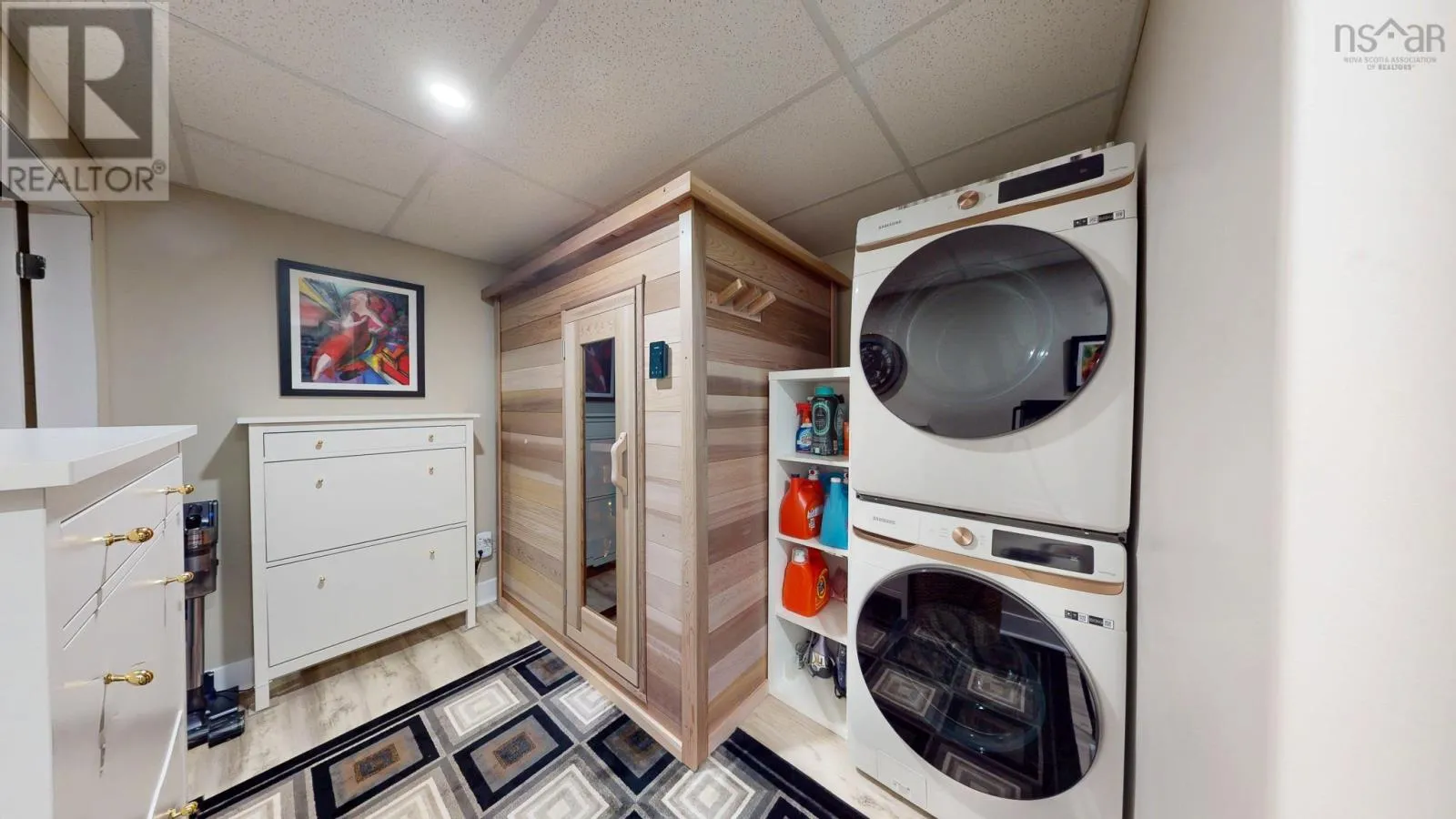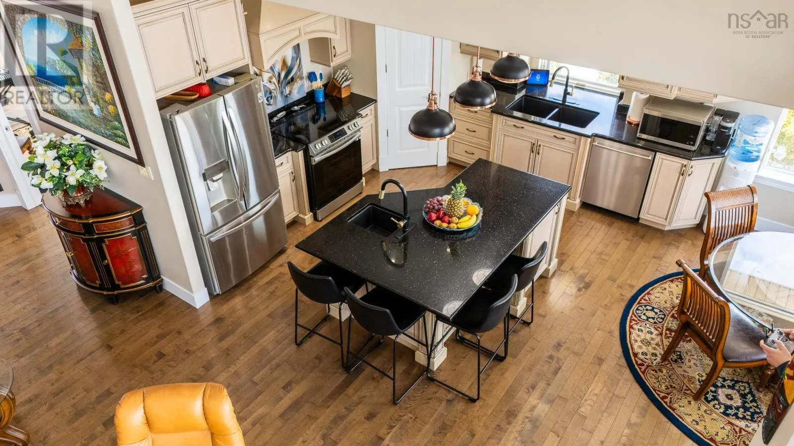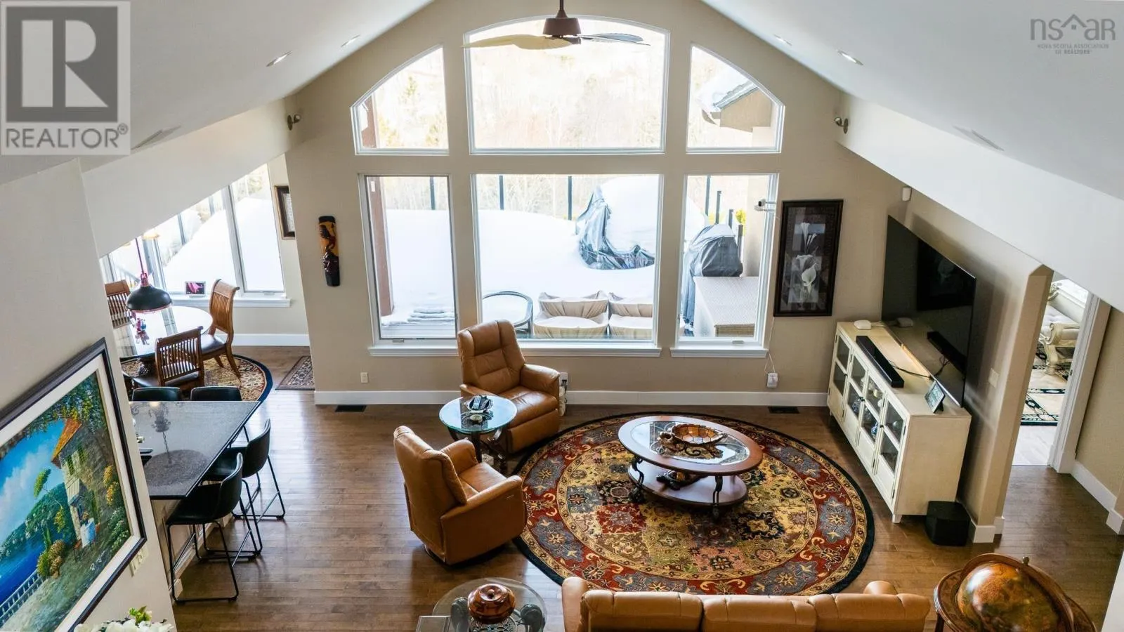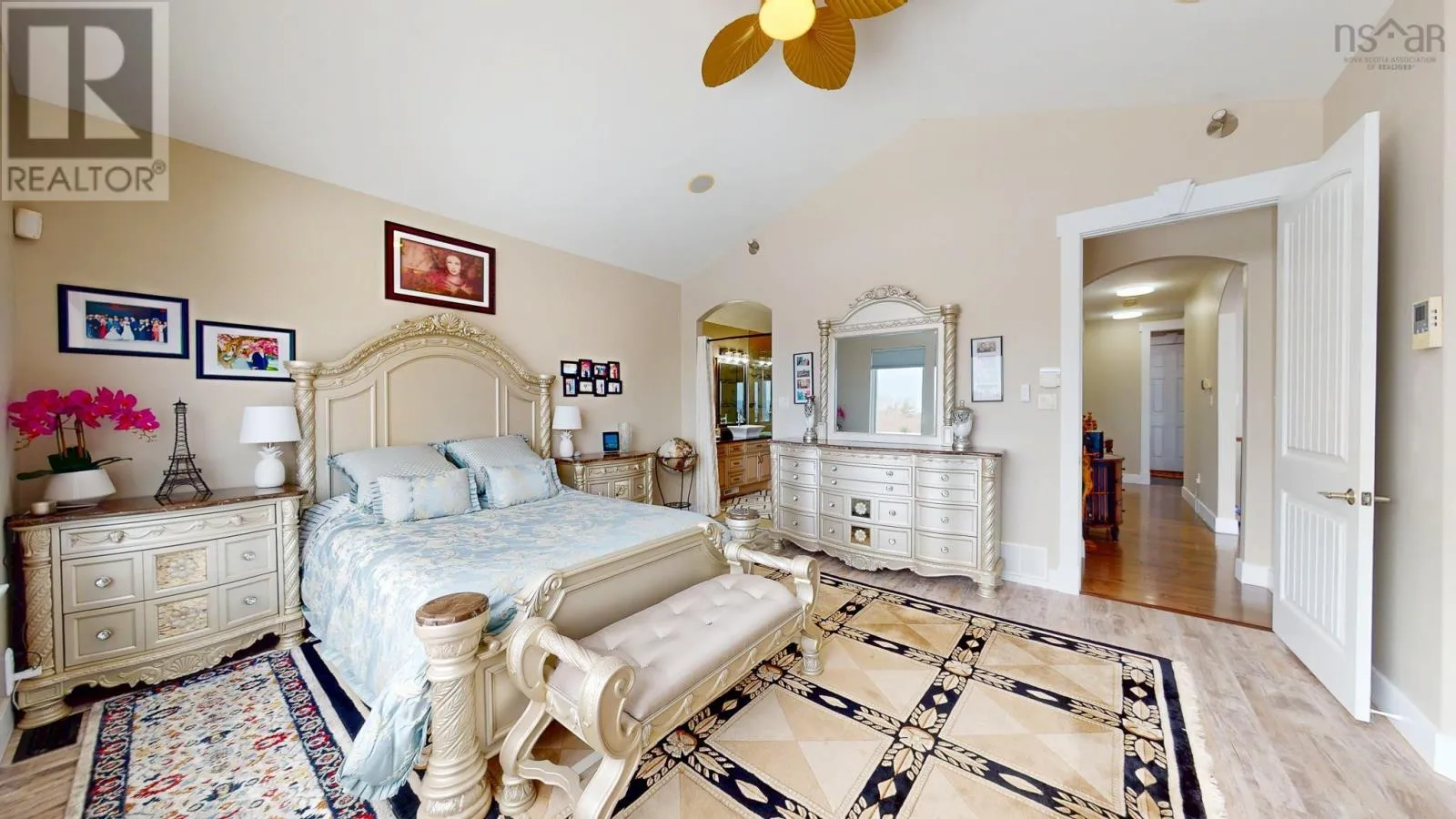 Follow New Minas Connector Road to Canaan Heights subdivision, follow Falcon Drive to 31, Home is on LHS Luxury bungalow living with exceptional upgradesthis 5-bedroom, fully finished walkout home offers stunning views of Blomidon and a lifestyle designed for comfort and entertaining, all close to amenities. Featuring two expansive primary suitesone on the main level and a second on the lower walkout levelboth with beautiful ensuites and large closets, with the lower suite offering an impressive custom cabinet system. The open-concept main level showcases 15 vaulted ceilings in the living room, 9 ceilings throughout, bright windows (many with built-in blinds), quartz countertops, abundant cabinetry, and a large kitchen island with veggie sink and generous storage. Two additional bedrooms complete the main floor. The walkout lower level offers a spacious family room, bar area, full bath, additional bedroom/office, and beautifully tiled stairs with hardwood nosing and lightingplus the second private primary suite, ideal for guests or multi-generational living. Outdoor living truly shines with a new composite deck with glass railings, a massive lower patio featuring a built-in outdoor kitchen (ceramic BBQ, smoker, pizza oven, fridge, and sink), dining area, and firepit and irrigation system. New propane heaters on patio remain, making this space ready to enjoy. Additional highlights include a 1.5-bay garage with 102 ceilings and beautiful built-ins, sauna, new washer and dryer, 3 fridges, 2 wine fridges, new water tank (2024), 5-year Venmar system, new furnace, large shed, and backyard safety railings. The garage, mechanical room, and patio all feature durable 2-part epoxy flooring. A thoughtfully designed luxury home with high-end finishes, incredible indoor-outdoor living, and exceptional attention to detailthis one must be seen to be fully appreciated. (id:27476)