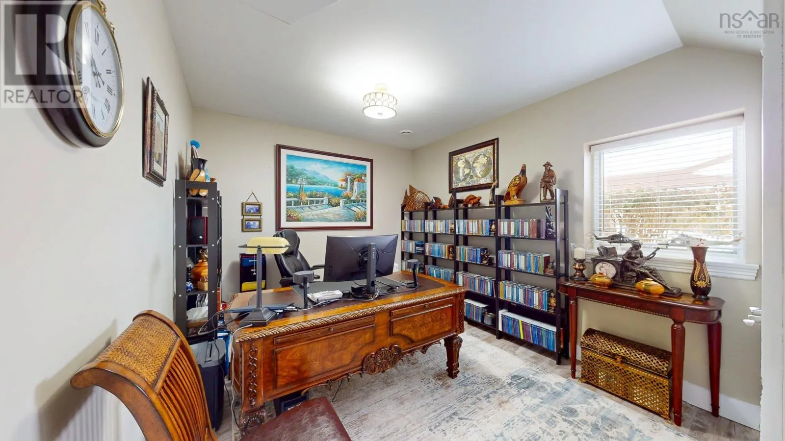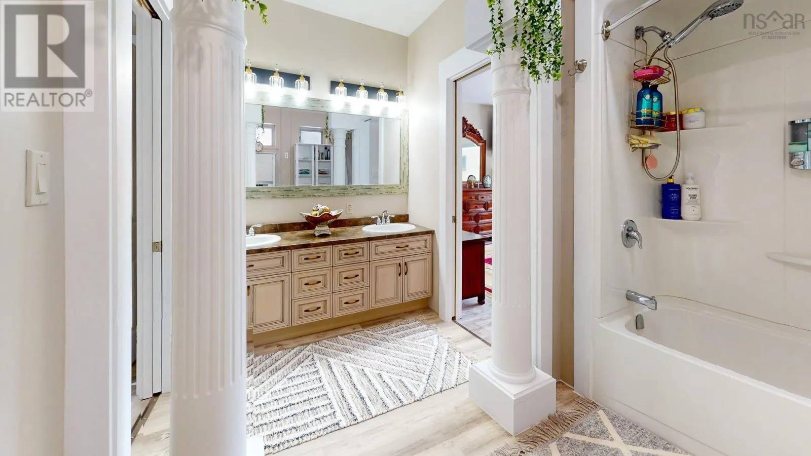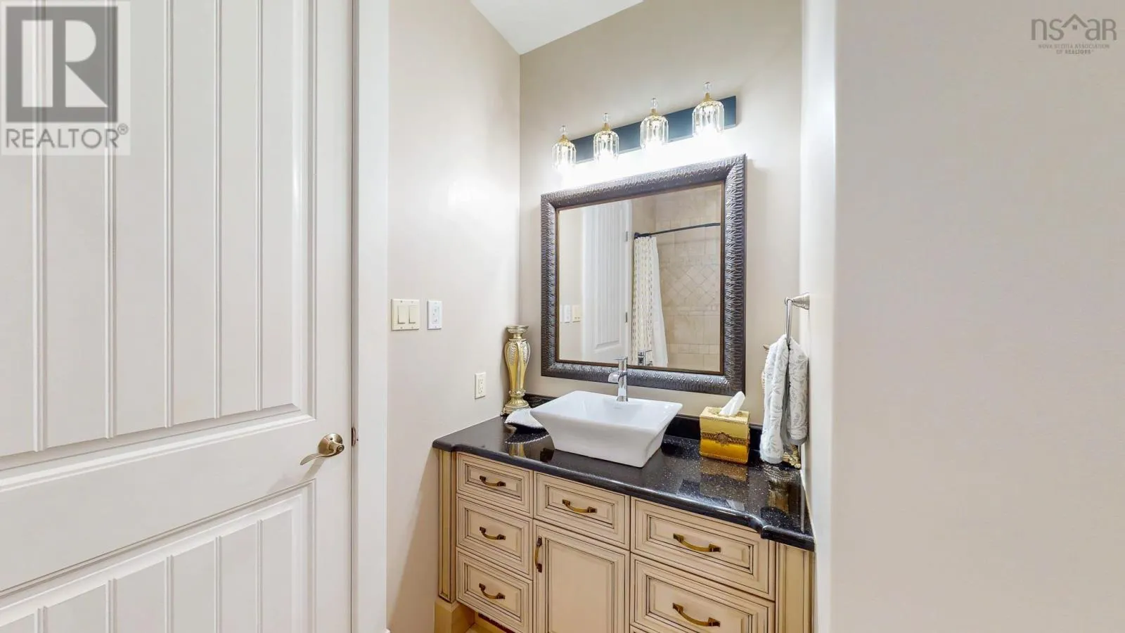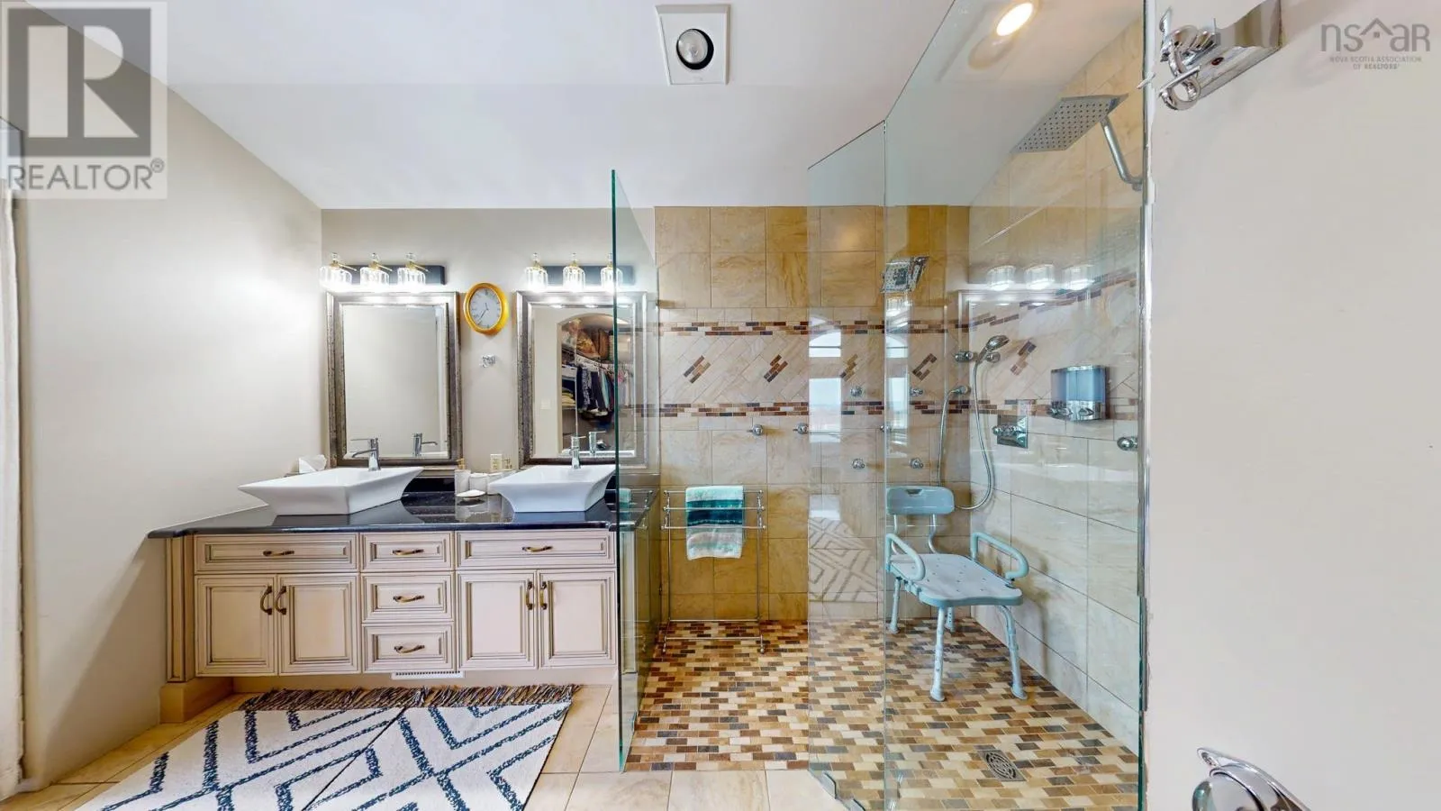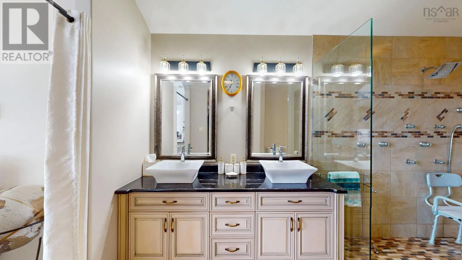 Follow New Minas Connector Road to Canaan Heights subdivision, follow Falcon Drive to 31, Home is on LHS Luxury bungalow living with exceptional upgradesthis 5-bedroom, fully finished walkout home offers stunning views of Blomidon and a lifestyle designed for comfort and entertaining, all close to amenities. Featuring two expansive primary suitesone on the main level and a second on the lower walkout levelboth with beautiful ensuites and large closets, with the lower suite offering an impressive custom cabinet system. The open-concept main level showcases 15 vaulted ceilings in the living room, 9 ceilings throughout, bright windows (many with built-in blinds), quartz countertops, abundant cabinetry, and a large kitchen island with veggie sink and generous storage. Two additional bedrooms complete the main floor. The walkout lower level offers a spacious family room, bar area, full bath, additional bedroom/office, and beautifully tiled stairs with hardwood nosing and lightingplus the second private primary suite, ideal for guests or multi-generational living. Outdoor living truly shines with a new composite deck with glass railings, a massive lower patio featuring a built-in outdoor kitchen (ceramic BBQ, smoker, pizza oven, fridge, and sink), dining area, and firepit and irrigation system. New propane heaters on patio remain, making this space ready to enjoy. Additional highlights include a 1.5-bay garage with 102 ceilings and beautiful built-ins, sauna, new washer and dryer, 3 fridges, 2 wine fridges, new water tank (2024), 5-year Venmar system, new furnace, large shed, and backyard safety railings. The garage, mechanical room, and patio all feature durable 2-part epoxy flooring. A thoughtfully designed luxury home with high-end finishes, incredible indoor-outdoor living, and exceptional attention to detailthis one must be seen to be fully appreciated. (id:27476)