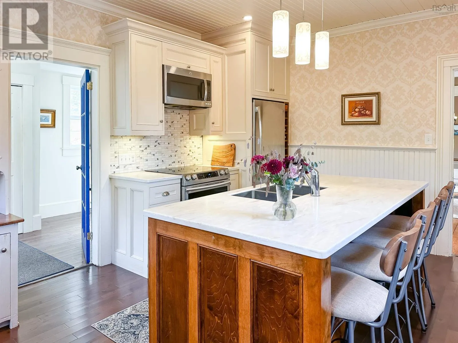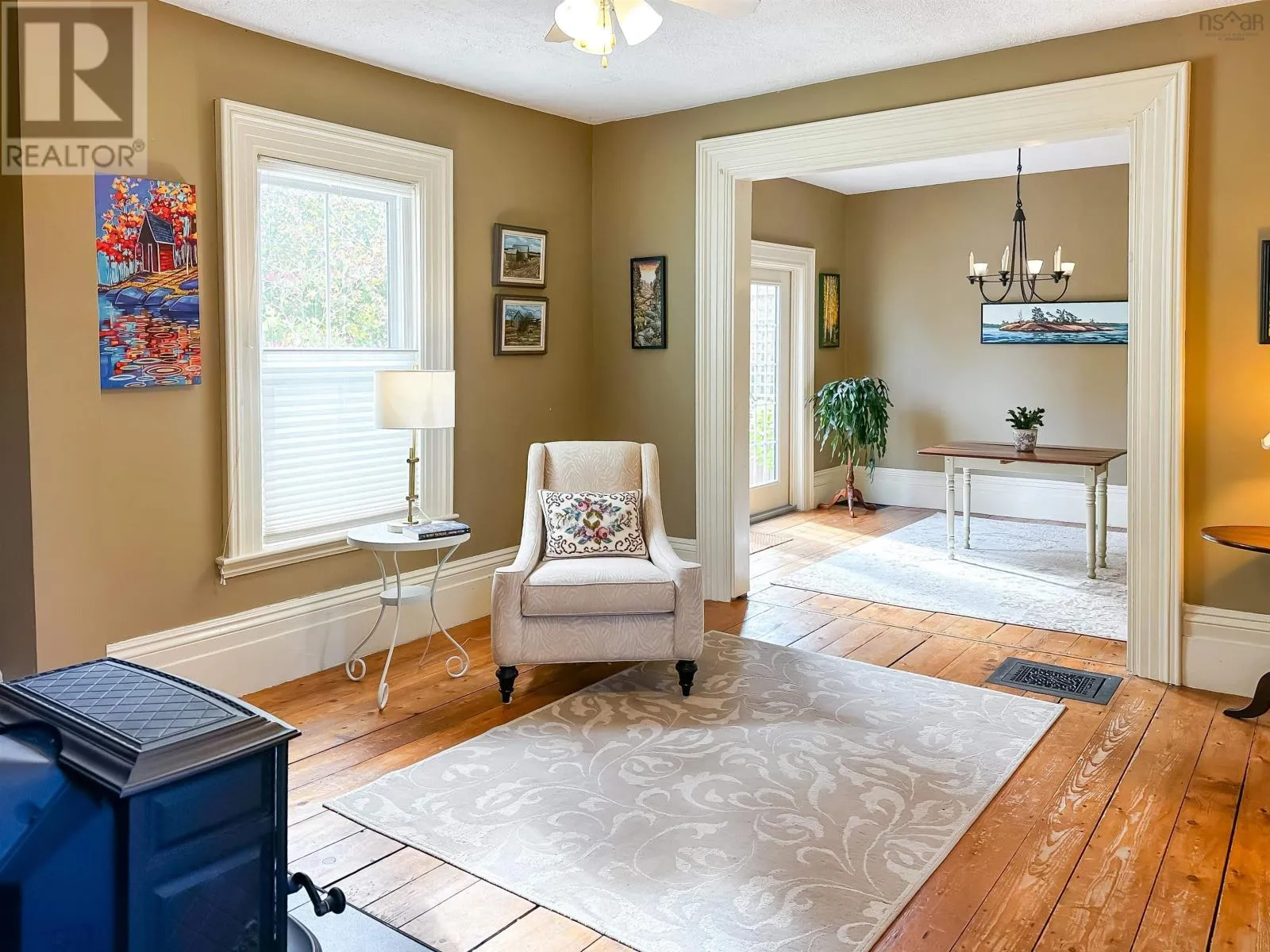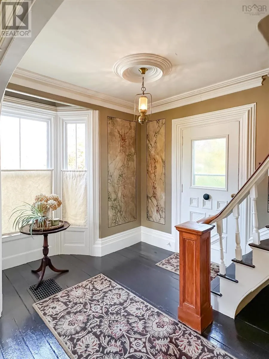 From Hwy 101 take exit 11 (Wolfville/Greenwich) and head North on 358. Travel towards Canning, turn left onto Hwy 221, property on left. Nestled in the vibrant village of Canning, this beautifully maintained 2-storey home offers the perfect blend of character, comfort, and modern updatesall within walking distance of local shops, cafes, and both the elementary and high schools. Step inside to discover a thoughtfully designed main floor layout featuring a welcoming front foyer, a cozy living room, and a spacious family room anchored by a wood stoveperfect for chilly evenings. The elegant, renovated kitchen (2018) is a true standout, complete with a custom island, Corian countertops, and a layout thats ideal for family meals and entertaining. A formal dining room opens to the back patio and garden area, offering seamless indoor-outdoor living. You'll also find a convenient back entrance with laundry and a half bath, tucked away for practicality and ease. Upstairs, you'll find four bedrooms and a full 4-piece bathroom, ideal for growing families or those needing extra space for guests or a home office. Original features such as the curved staircase and historic "marble" wall finish add unique character and timeless appeal throughout the home. Additional features include metal roof (2018), updated windows (approx. 10 years ago) and Single detached garage. This home is a rare find in a welcoming community, offering a lifestyle of comfort, charm, and convenience. Whether you're relaxing by the fire or enjoying the local shops, cafés and restaurants, this property truly offers the best of the Annapolis Valley. Just a 10-minute drive to Wolfville and quick access to the highway, this location strikes the ideal balance between small-town living and urban convenience. (id:27476)