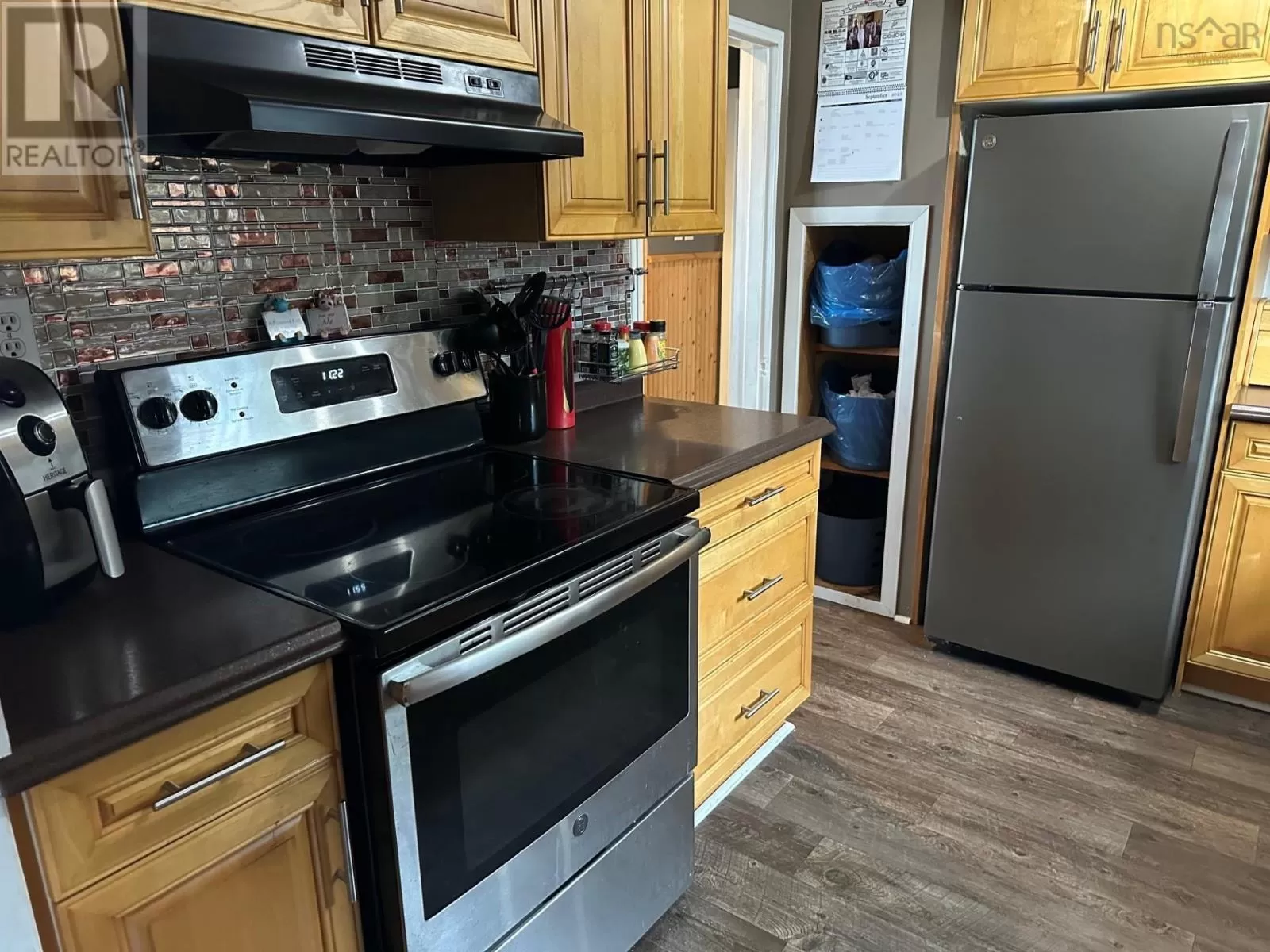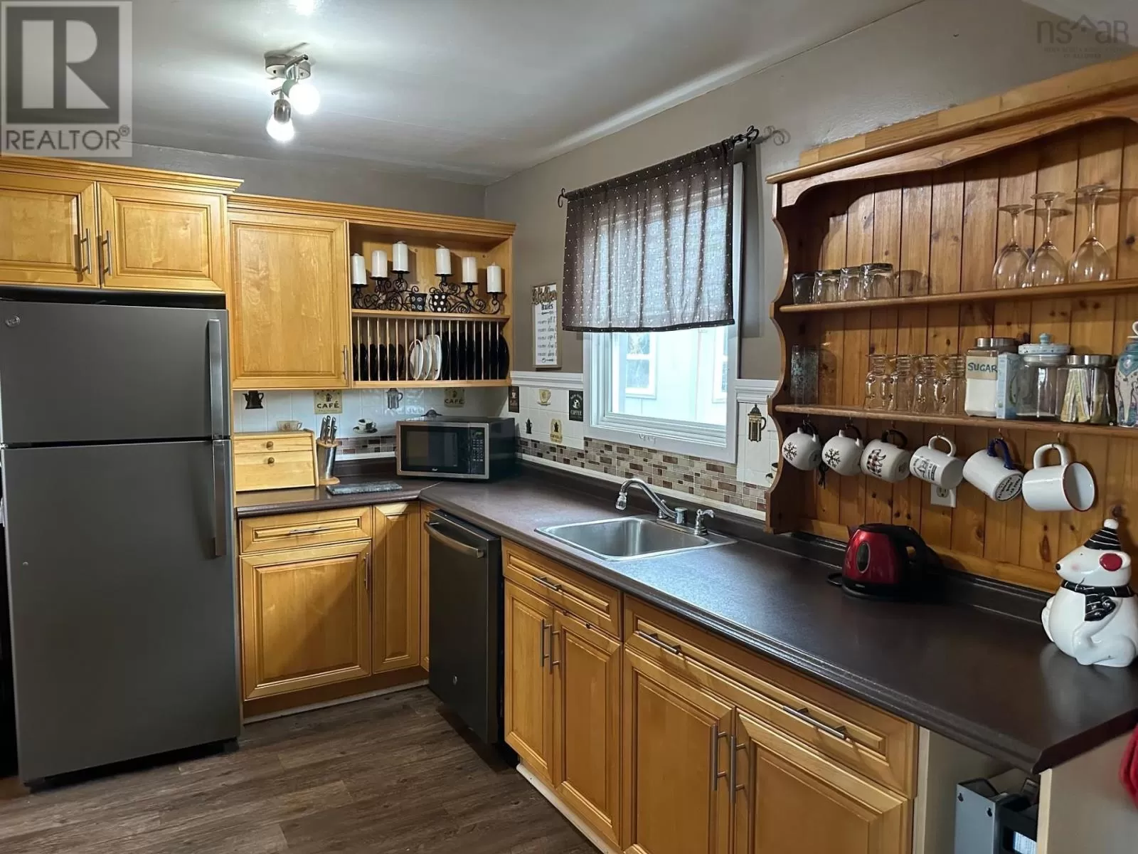 Highway 16 to Canso turn right on to School Str turn left on to Centennial Str Great family home with extra large deck and great water view in the heart of Canso on quiet cul-de-sac. Municipal water and sewer. 58 year split level home has updated kitchen and bathrooms. Upper level features open concept living and dining room with door to very large back deck ( great for entertaining or add a hot tub). Ramp from first driveway leading up to 12x16 storage shed and a 16x24.6 plus 18x 30.6 back deck. Electric lawnmower and most contents of the shed are included. Also on upper level is a nicely renovated kitchen with updated appliances as well as the master suite. Behind glass door you will find master bedroom, office and main bathroom with walk in shower. The lower level features 3 bedrooms ( egress needs to be confirmed by buyer), 4 piece bath and utility room holding oil furnace, hot water heater, washer and dryer, sump pump, industrial freezer and work bench ( also included). The owner will include a carpet cleaner (shampooer) since some floors are carpet. Fiberglass oiltank outside. 100amp breaker panel; taxes 2025 $1099 furnace oil through irving oil on monthly budget $106. 2 window air conditioners one in living room and one in dining nook will also remain. (id:27476)