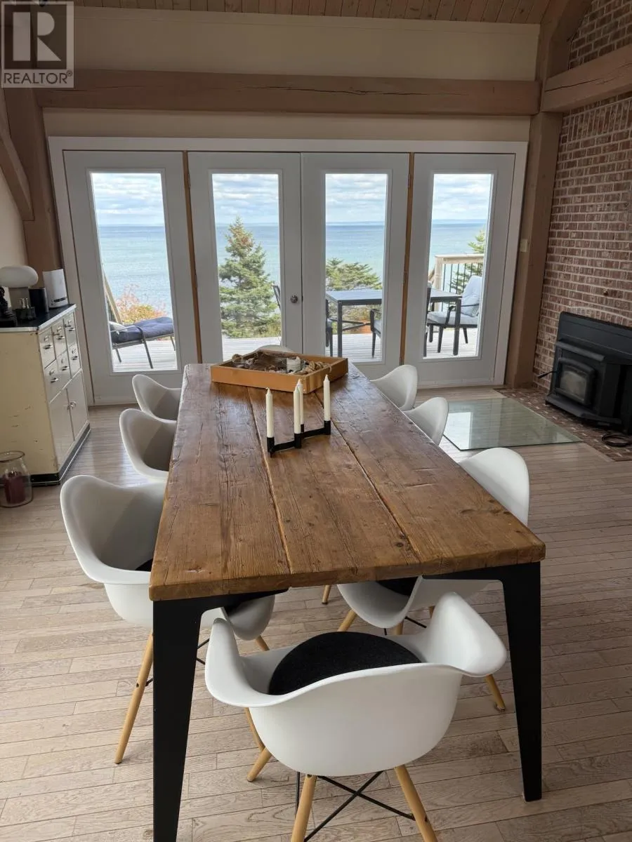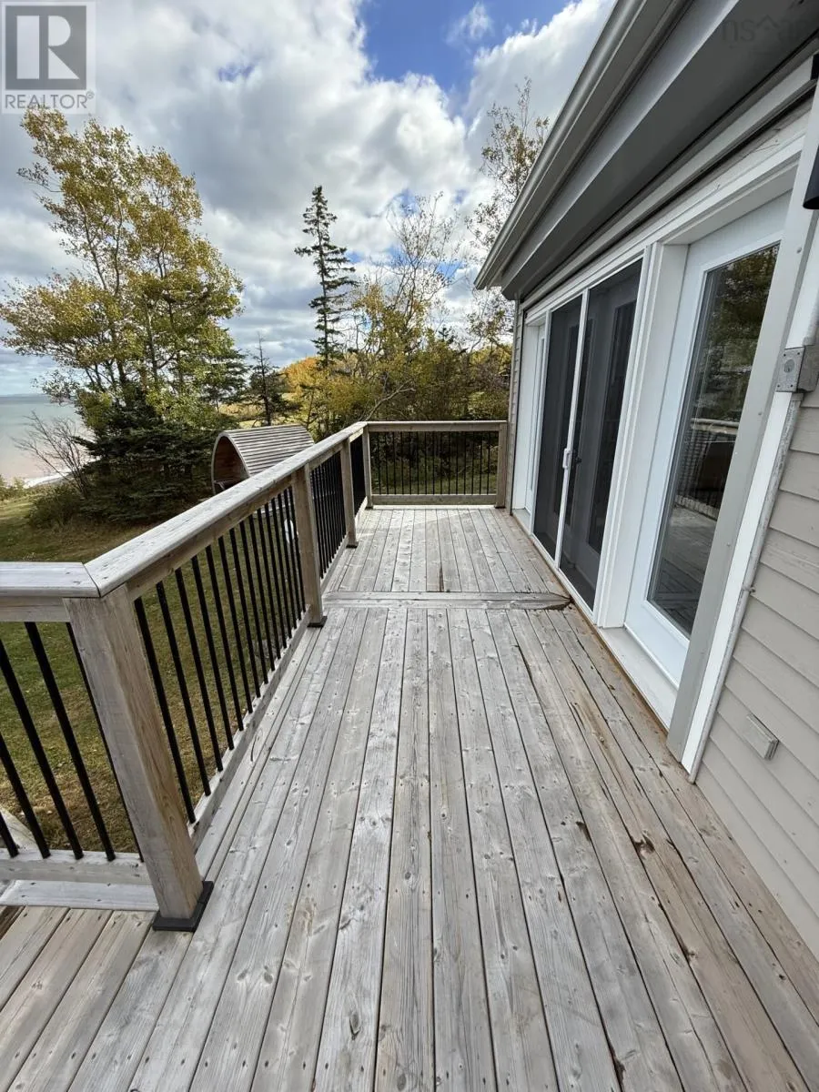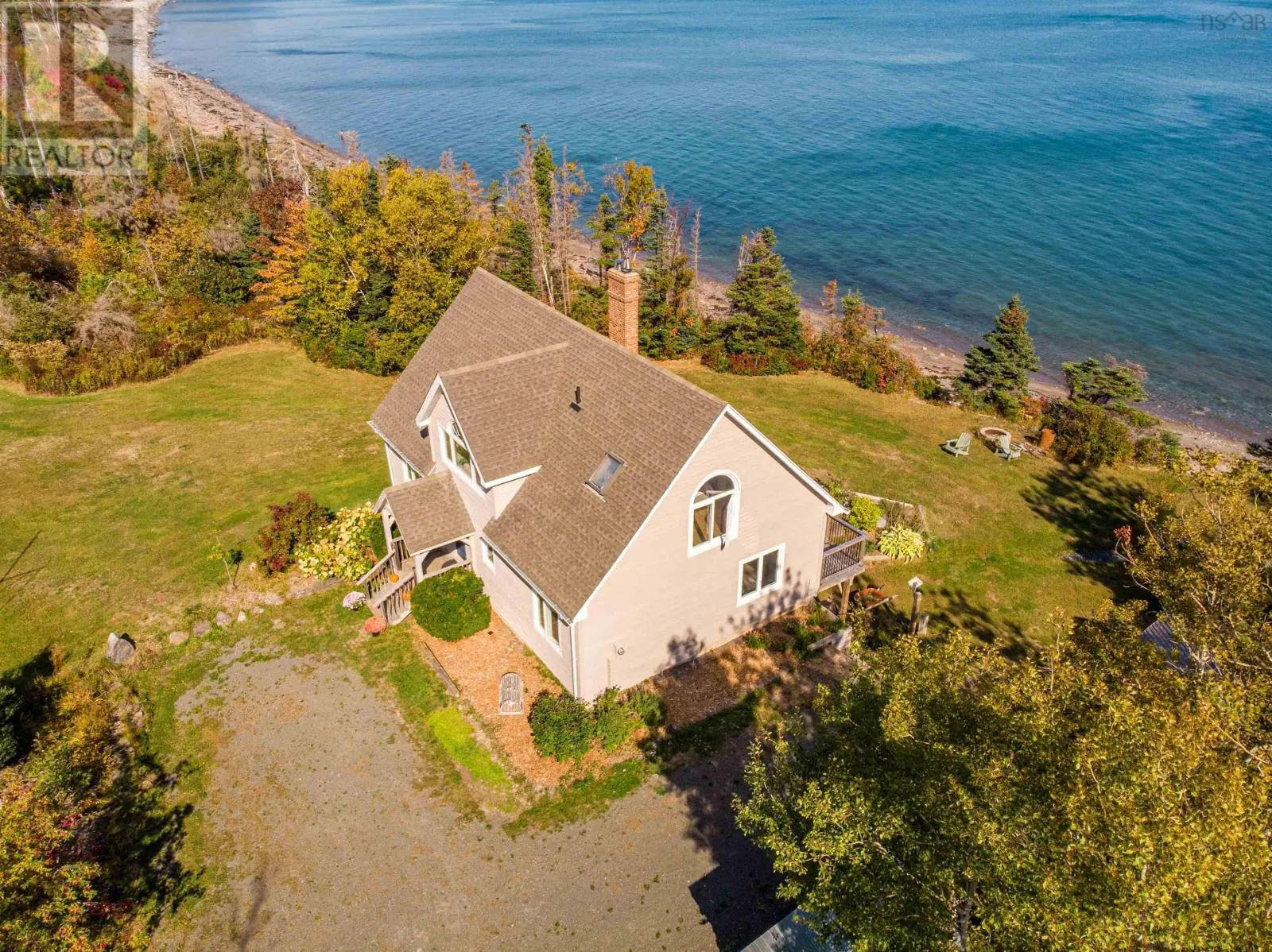 Travel Highway 337 from Antigonish - watch for civic sign Oceanfront home (4.08 acres) in beautiful Cape George with stairs to the swimmable beach on St. George's Bay! Large deck facing the ocean - watch the beautiful sunrise and moon rise - Eagles soaring - wildlife - Post & Beam style home with open concept on the main level with spectacular views from spacious windows in all directions! The main level has a galley kitchen, dining area with door to ocean facing deck, living room again with door to ocean facing deck and a two sided wood fireplace with wood inserts in dining and living room for cozy fire in cool evenings - plus a bathroom and bedroom. A lovely wooden staircase leads to upper level with a primary bedroom & ensuite plus an added loft style sleeping area. Full basement with walk out houses utility area and lots of storage space. Detached garage. Enjoy a sauna before taking a dip in the ocean. Numerous upgrades have been done - a list can be provided on request. (id:27476)