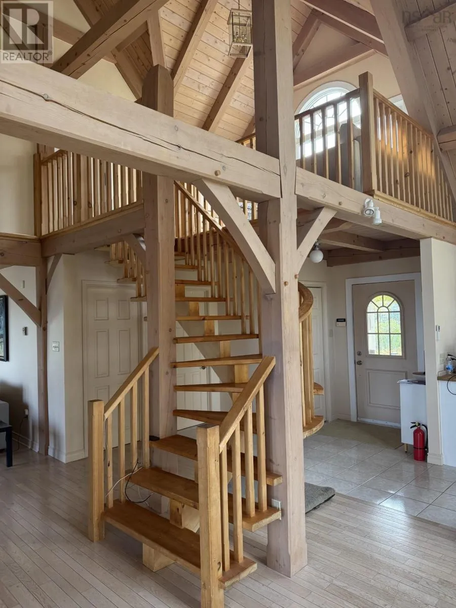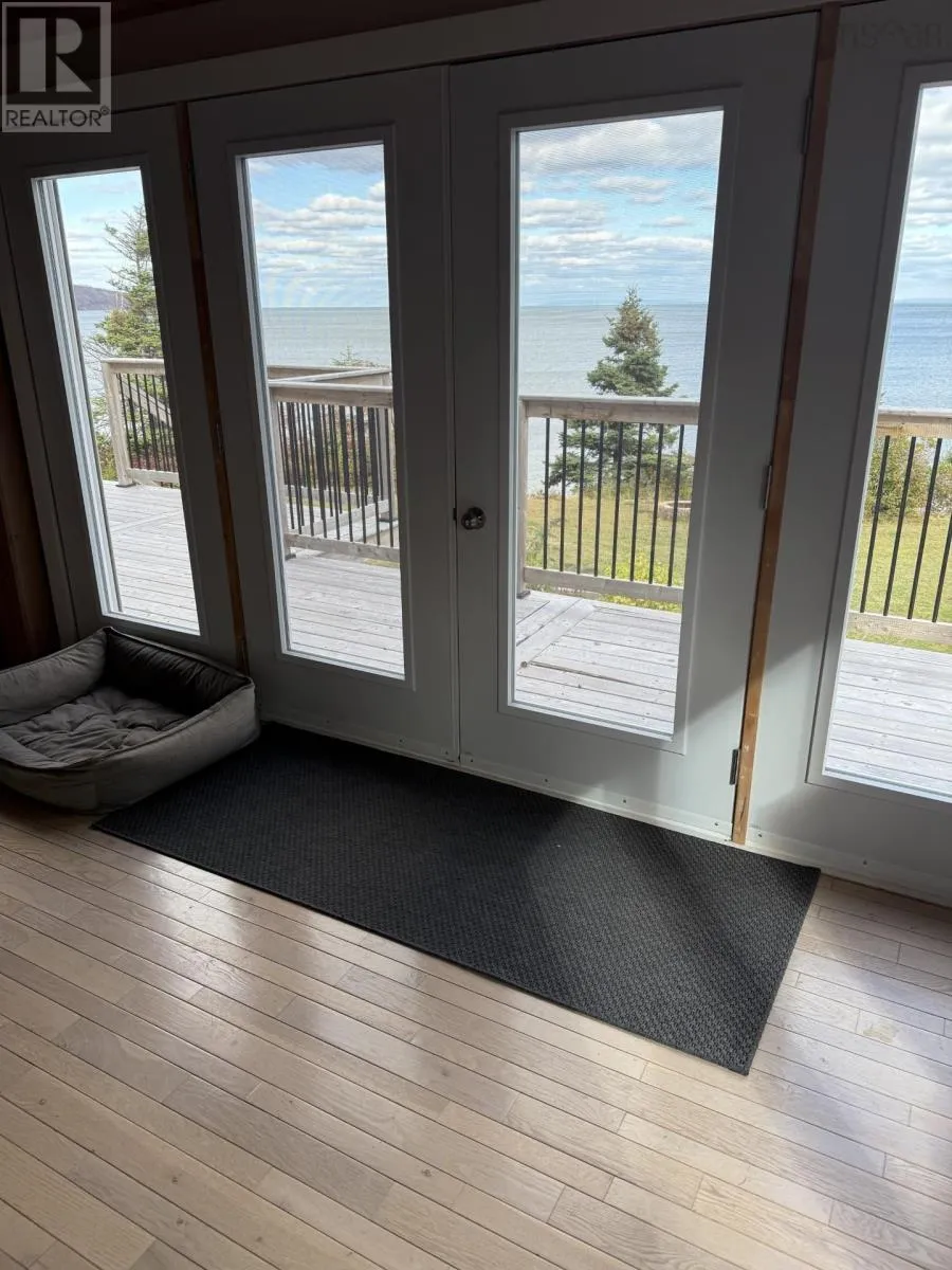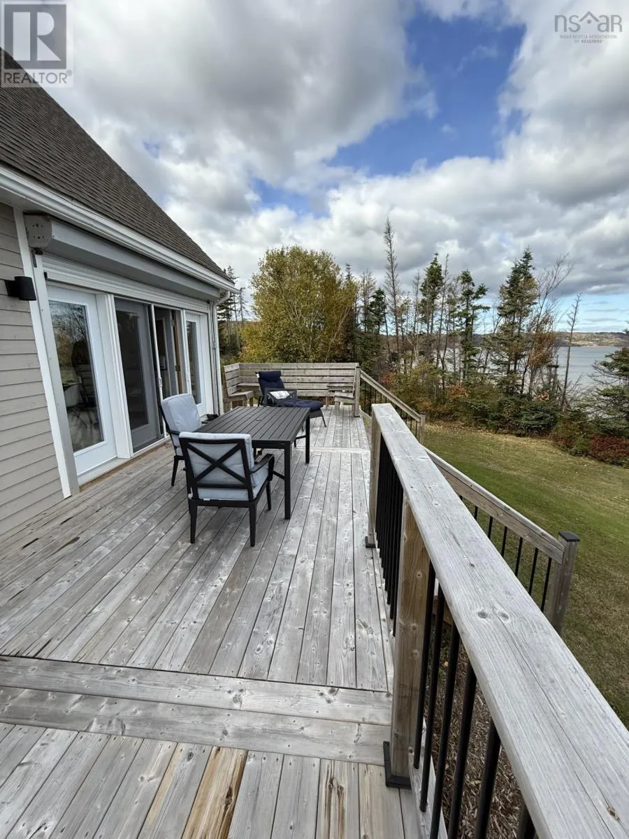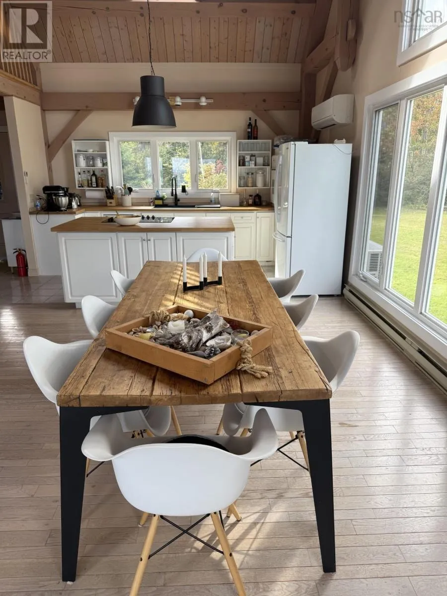 Travel Highway 337 from Antigonish - watch for civic sign Oceanfront home (4.08 acres) in beautiful Cape George with stairs to the swimmable beach on St. George's Bay! Large deck facing the ocean - watch the beautiful sunrise and moon rise - Eagles soaring - wildlife - Post & Beam style home with open concept on the main level with spectacular views from spacious windows in all directions! The main level has a galley kitchen, dining area with door to ocean facing deck, living room again with door to ocean facing deck and a two sided wood fireplace with wood inserts in dining and living room for cozy fire in cool evenings - plus a bathroom and bedroom. A lovely wooden staircase leads to upper level with a primary bedroom & ensuite plus an added loft style sleeping area. Full basement with walk out houses utility area and lots of storage space. Detached garage. Enjoy a sauna before taking a dip in the ocean. Numerous upgrades have been done - a list can be provided on request. (id:27476)