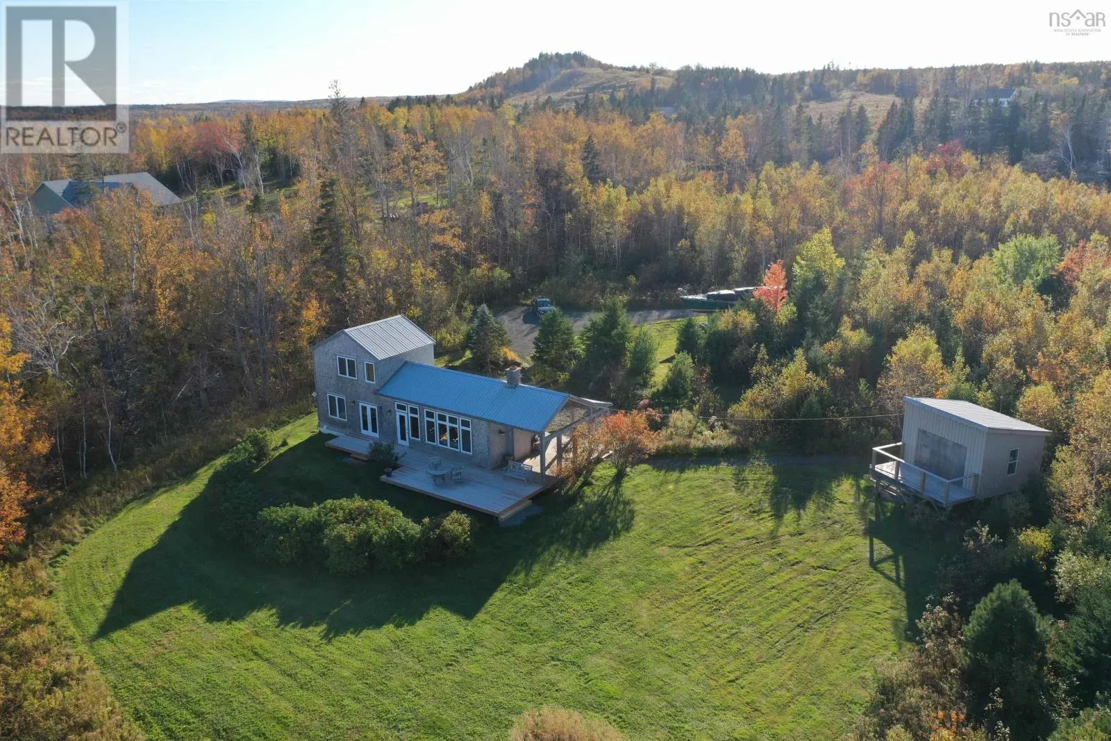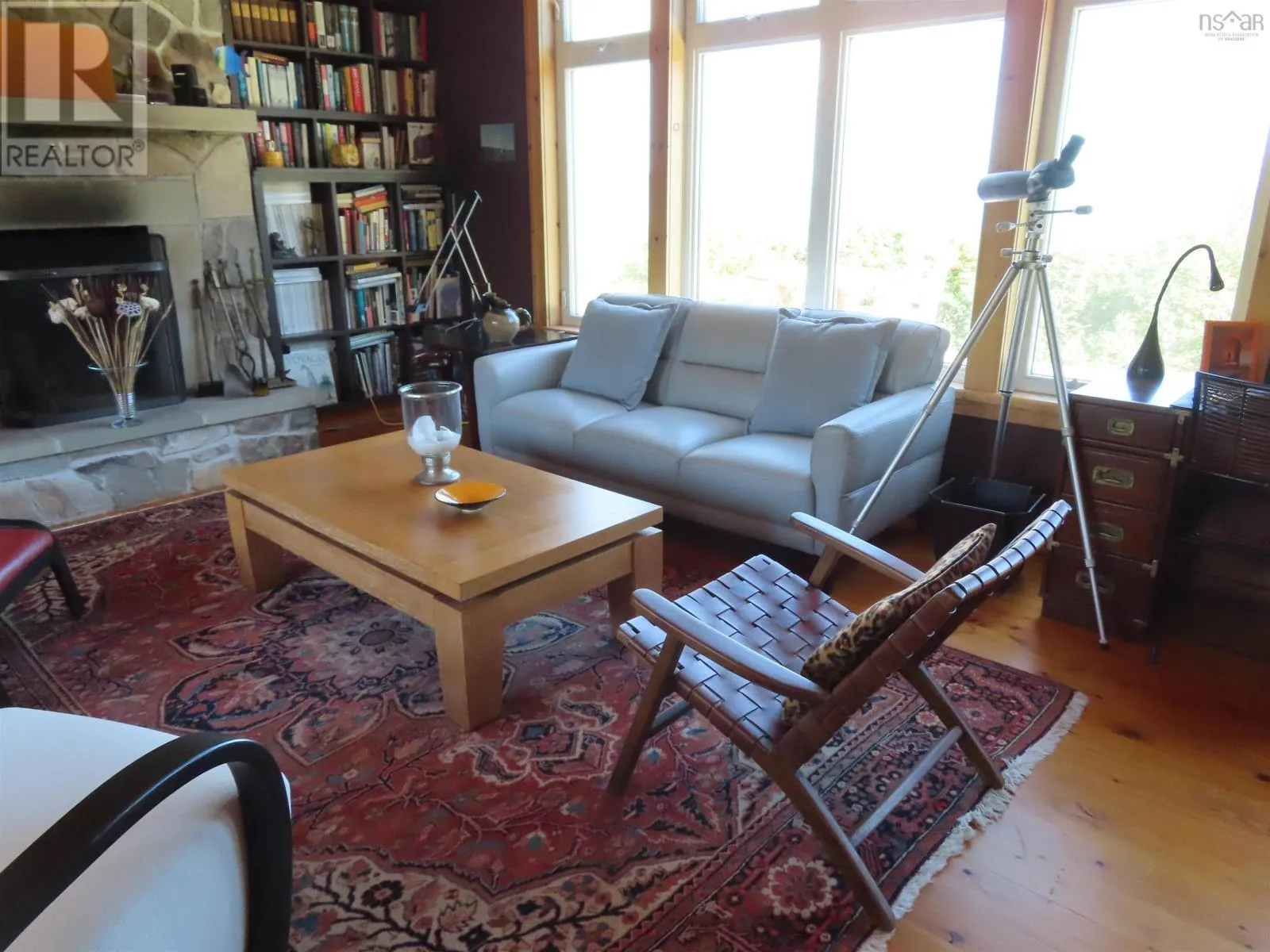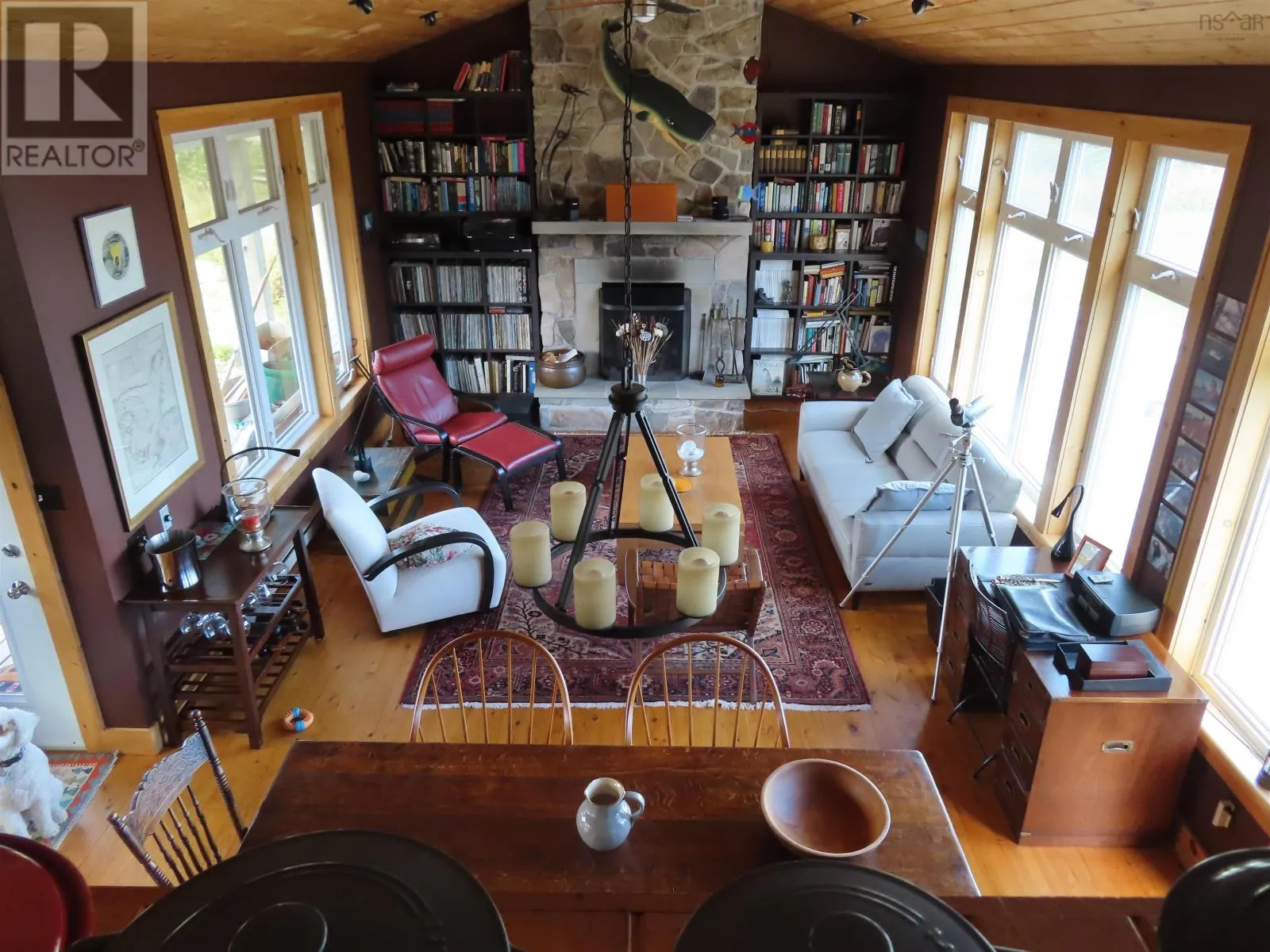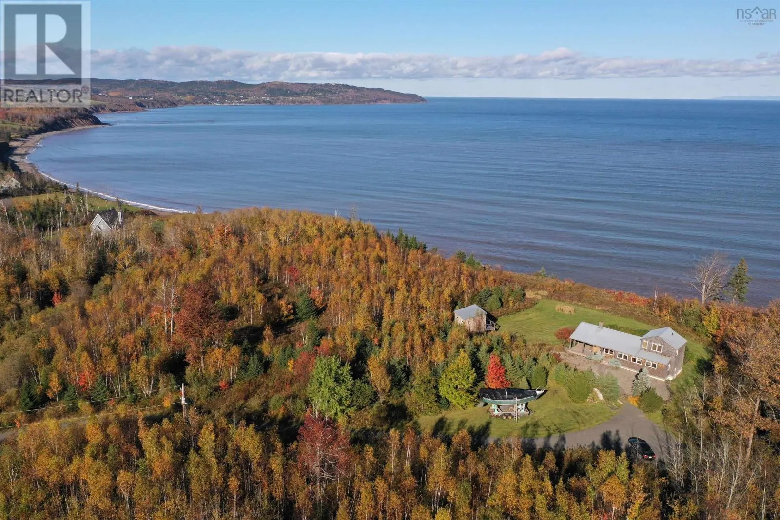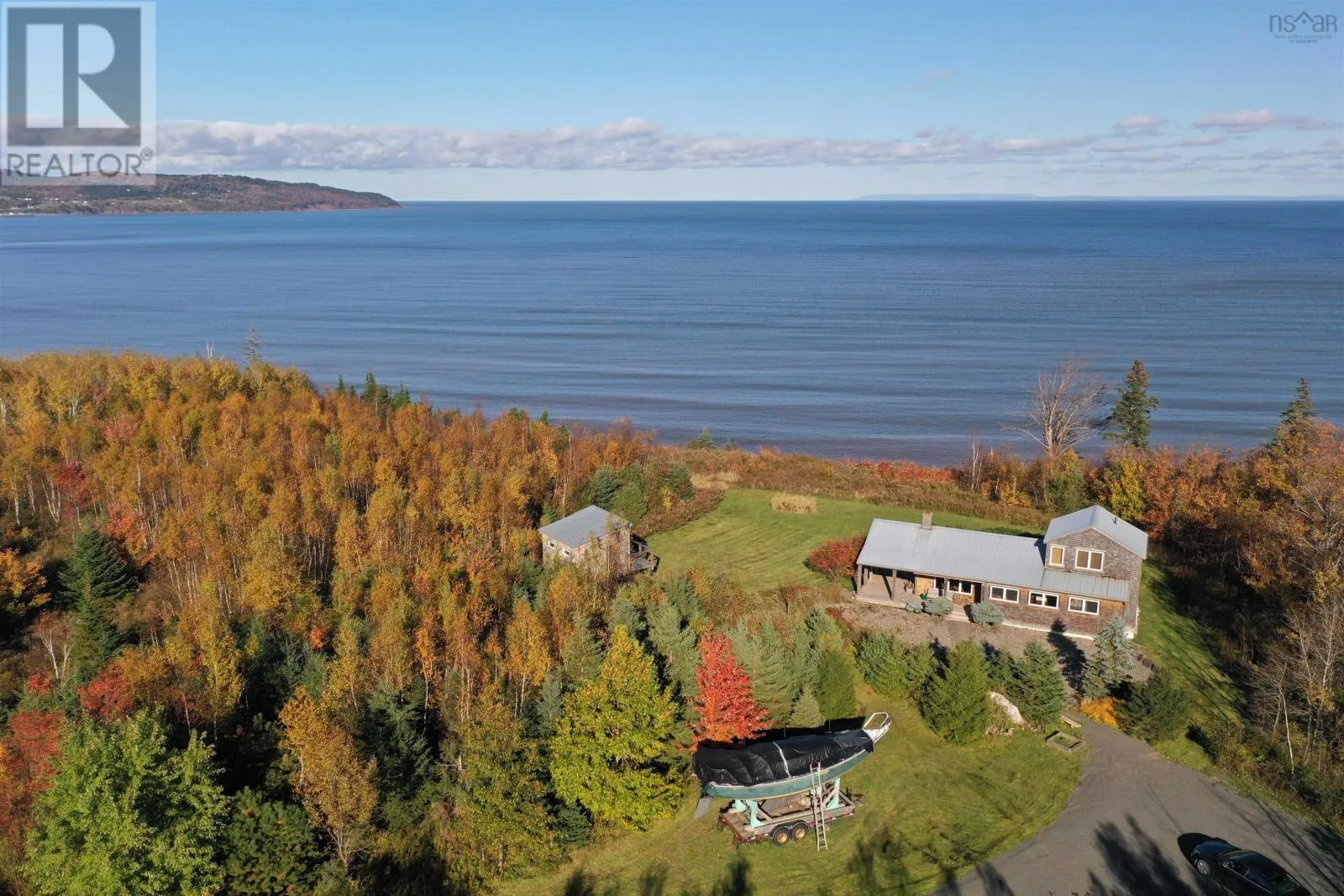 Highway 337 to Cape George - watch for civic sign Architecturally designed (architect James Ireland, Toronto) - two bedroom two bathroom cliff side home with water frontage on beautiful St. George's Bay and views across the bay to Cape Breton and Cape George Lighthouse...spectacular sunrises and moon rises!! the main level has a combined living room with massive stone woodburning fireplace, dining area, galley kitchen and windows all around to capture the views. Custom built storage cabinets along the hallway which leads to a bath with shower, guest bedroom and hallway. The upper level is a primary bedroom, full bathroom, walk-in closet again with captivating views. A full basement houses laundry area, utility and a full storage area. This home is move-in ready. Decking on three sides. A detached building (bunkie) with sleeping quarters for the privacy of guests - a lush rose bush hedge with long numerous bloom times with amazing scents. This property affords privacy with neighbors in close proximity - PLUS - just minutes to a pleasure craft marina - (id:27476)