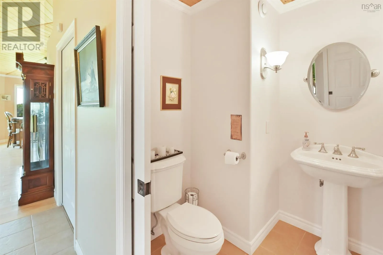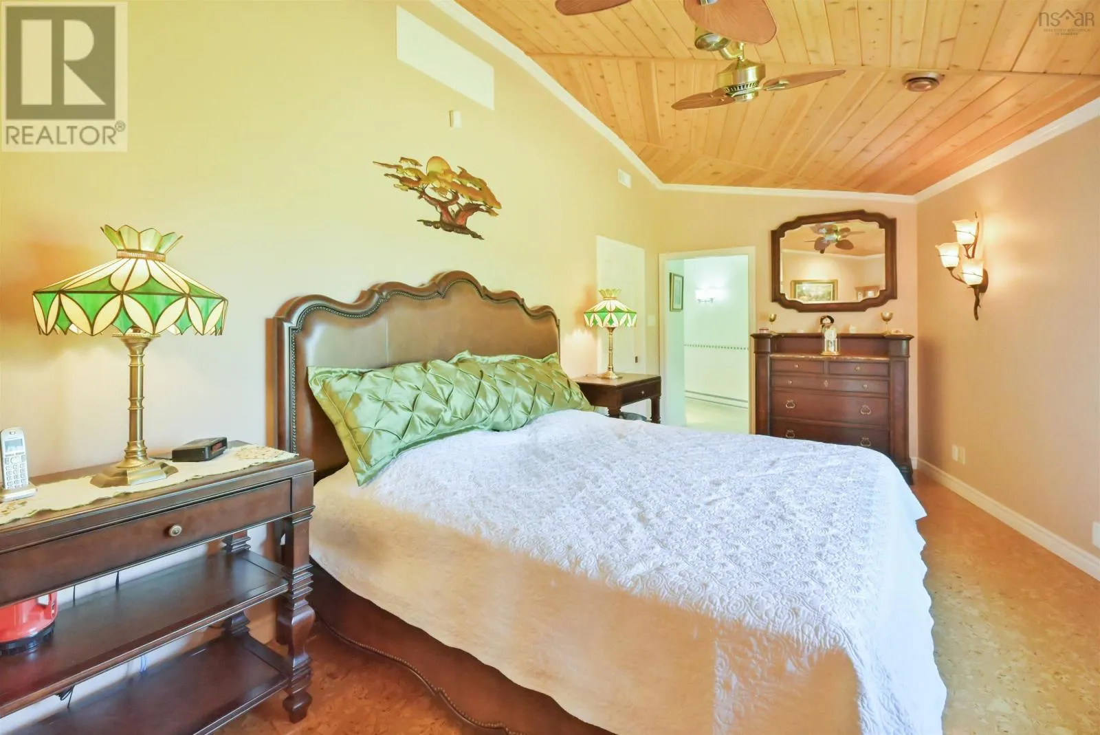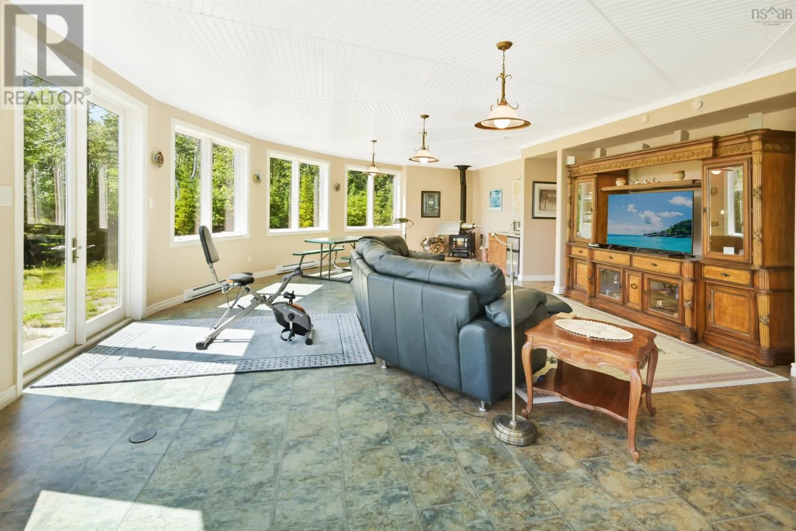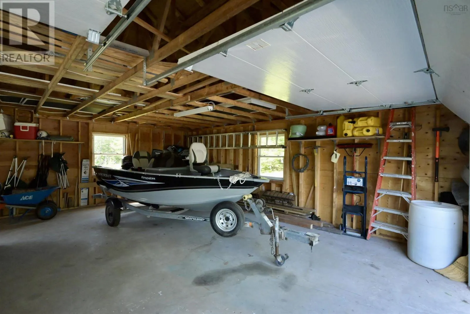 Take West Bay Highway from St Peter's. Take a right onto Cedar Drive. you will see Cape George Estates Sign. Take a right onto Maple Drive. Sign at road. Welcome to the Round House of Cape George Estates, an exceptional Deltec-designed, 18-sided home on 2.7 acres with 200 feet of deep, sheltered waterfront on the Bras dOr Lake. With seven south-facing sides of Marvin Integrity windows on both levels, the home is filled with natural light and offers sweeping water views. The Bras dOr here is remarkably deep - large enough to even accommodate a 140-foot yacht that came through St. Georges Channel last year - making it a boaters dream. Inside, 3,350 square feet of living space showcase high-end finishes and a thoughtful layout. On the upper level, youll find a spacious great room with 3/4" solid maple flooring, cedar ceiling, and a stone fireplace with gas insert and blower. The kitchen offers quartz countertops, gas range, French-door refrigerator, pantry with chest freezer, and extensive quality cookware. This level also features a large primary bedroom with a stunning ensuite bathroom, a generous walk-in pantry, and a convenient half bath. Additional highlights include a wet bar, stereo sound system, central vacuum, dedicated laundry room, and climate-controlled attic. It is the perfect space for entertaining guests and enjoying the views. A custom iron spiral staircase leads down to the lower level, where a bright, above-grade seating area opens to two additional bedrooms and a full bathroom. A Napoleon woodstove adds warmth and character. The home includes a brand-new Move Air heat pump system (2024, with 10-year warranty) providing whole-home heating and cooling. Outside, enjoy a 160-sq-ft deck with views of sailboats in the channel, a detached 26' x 32' two-car garage with extra storage, a gravel RV parking area with 110V hookup, and a marine-treated shore platform with permits for a floating dock and mooring. This remarkable property comes fully furnished with beautiful solid hardwood furniture offering a true turnkey opportunity to own on one of Cape Bretons most unique and admired water (id:27476)