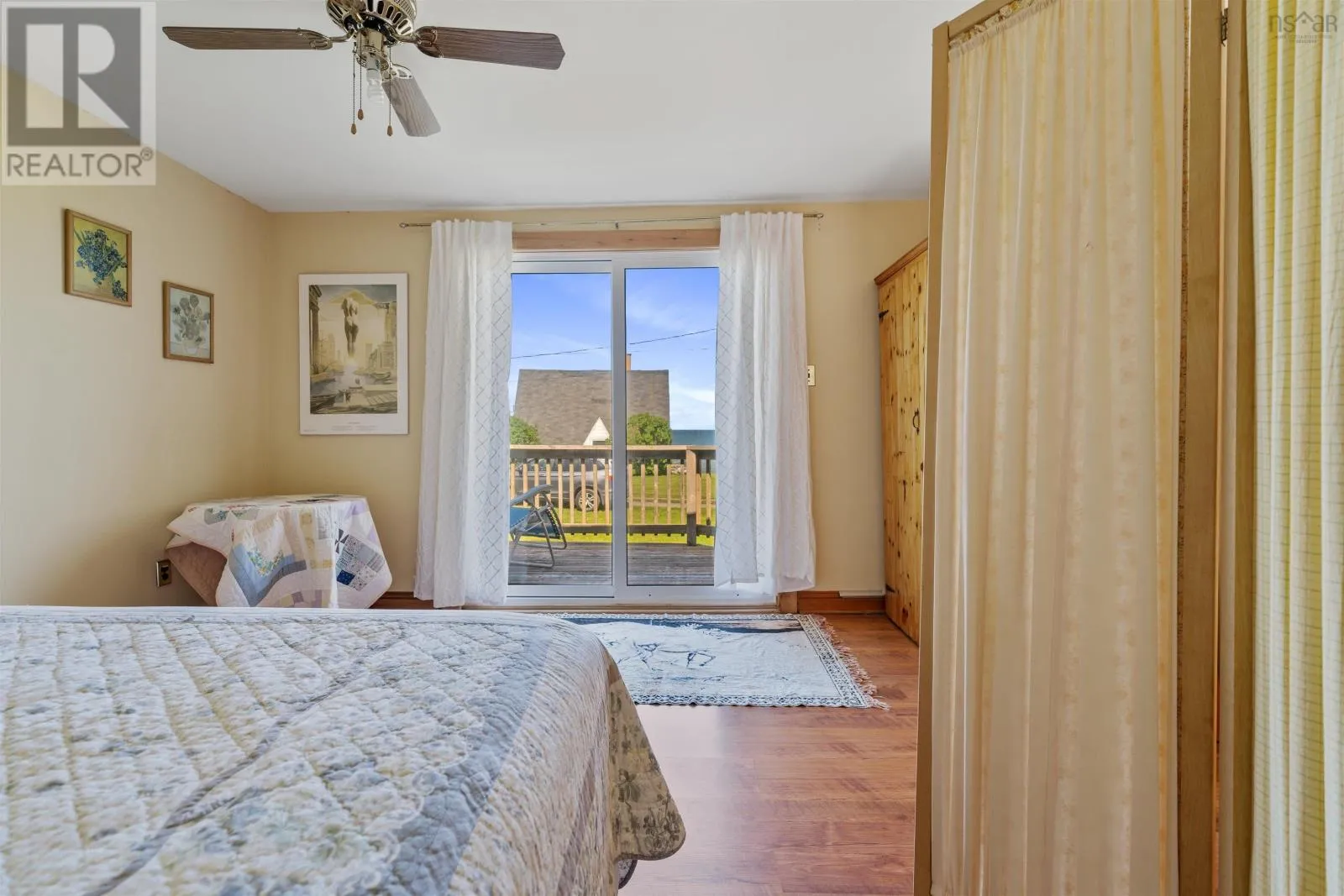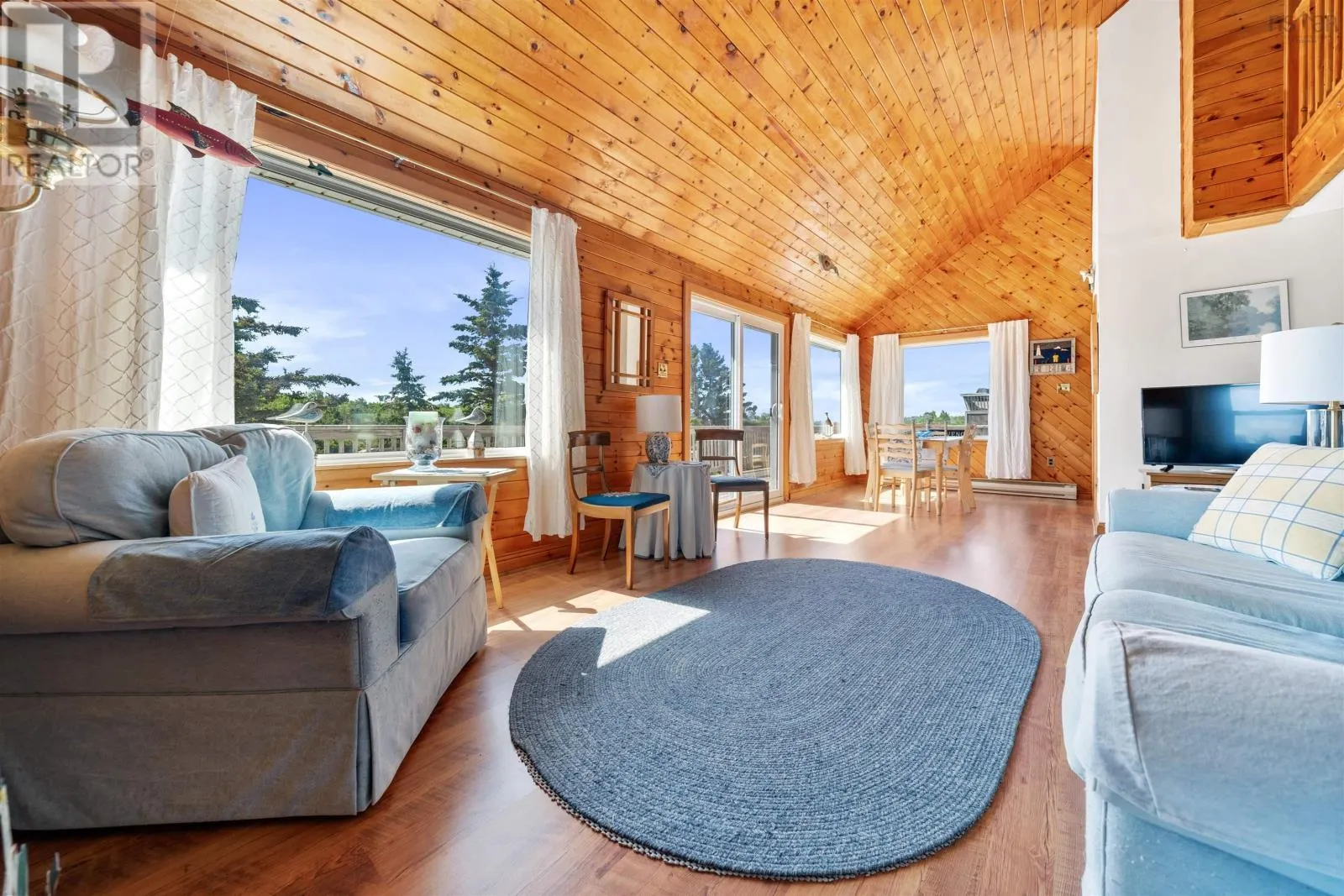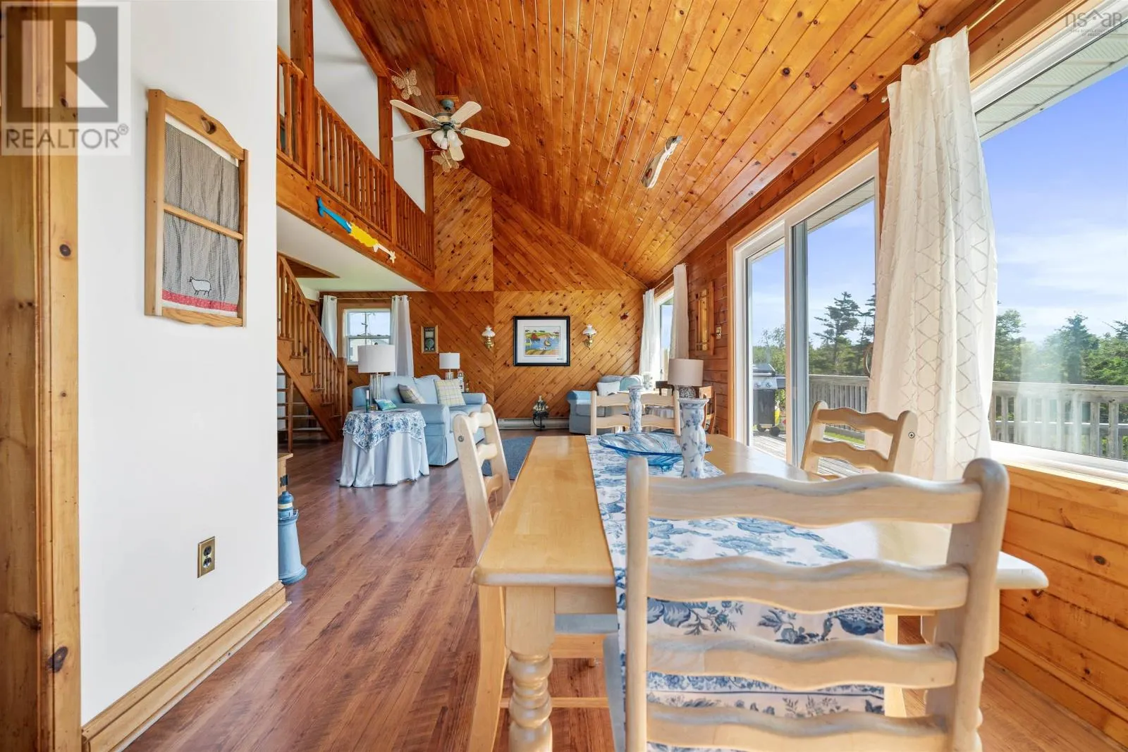 Caribou Island Road , turn left onto Hilltop Lane , property on left see sign Welcome to your peaceful escape on beautiful Caribou Island! This charming two-bedroom, one-bath cottage sits on a 15,000 sq ft lot overlooking the oceanand offers the perfect place to soak in the coastal lifestyle. Tucked in a friendly cottage community on a hilltop, youll love the welcoming feel and breathtaking views from sunrise to sunset. Step inside to an open-concept main floor featuring pine walls and ceilings with a bright living and dining space that captures views of the bay through the large picture window in the dining area. The newer roof and expansive wraparound deck make it easy to enjoy outdoor living, whether you're sipping coffee at sunrise or unwinding after a day at the beach. Upstairs, youll find two cozy bedrooms, with one bedroom opening onto a private balcony overlooking Prince Edward Island and Pictou Island ,a perfect spot to watch the ferry glide by or catch the evening breeze. This property includes deeded access to a stunning sandy beach just steps away, often quiet and nearly private, inviting you to swim, beachcomb, or simply relax by the waves. Offered fully furnished, this turn-key cottage is ready for you to start making summer memories by the sea. Whether youre looking for a seasonal retreat or a peaceful getaway, this Caribou Island gem is ready to welcome you home. (id:27476)