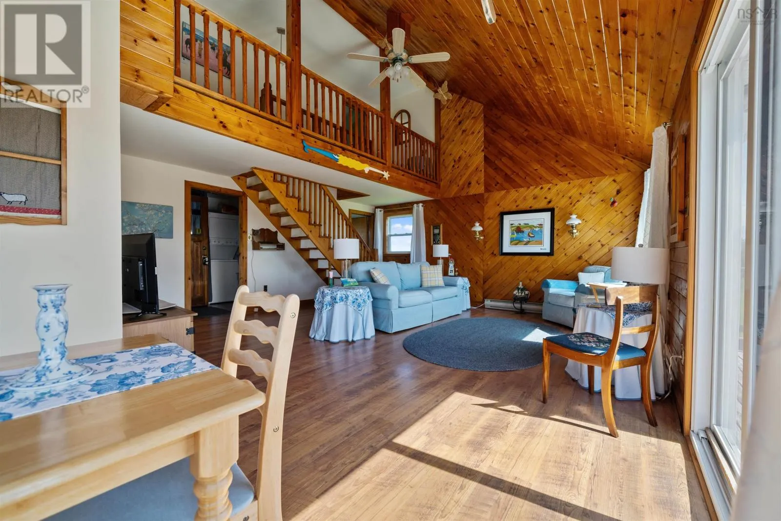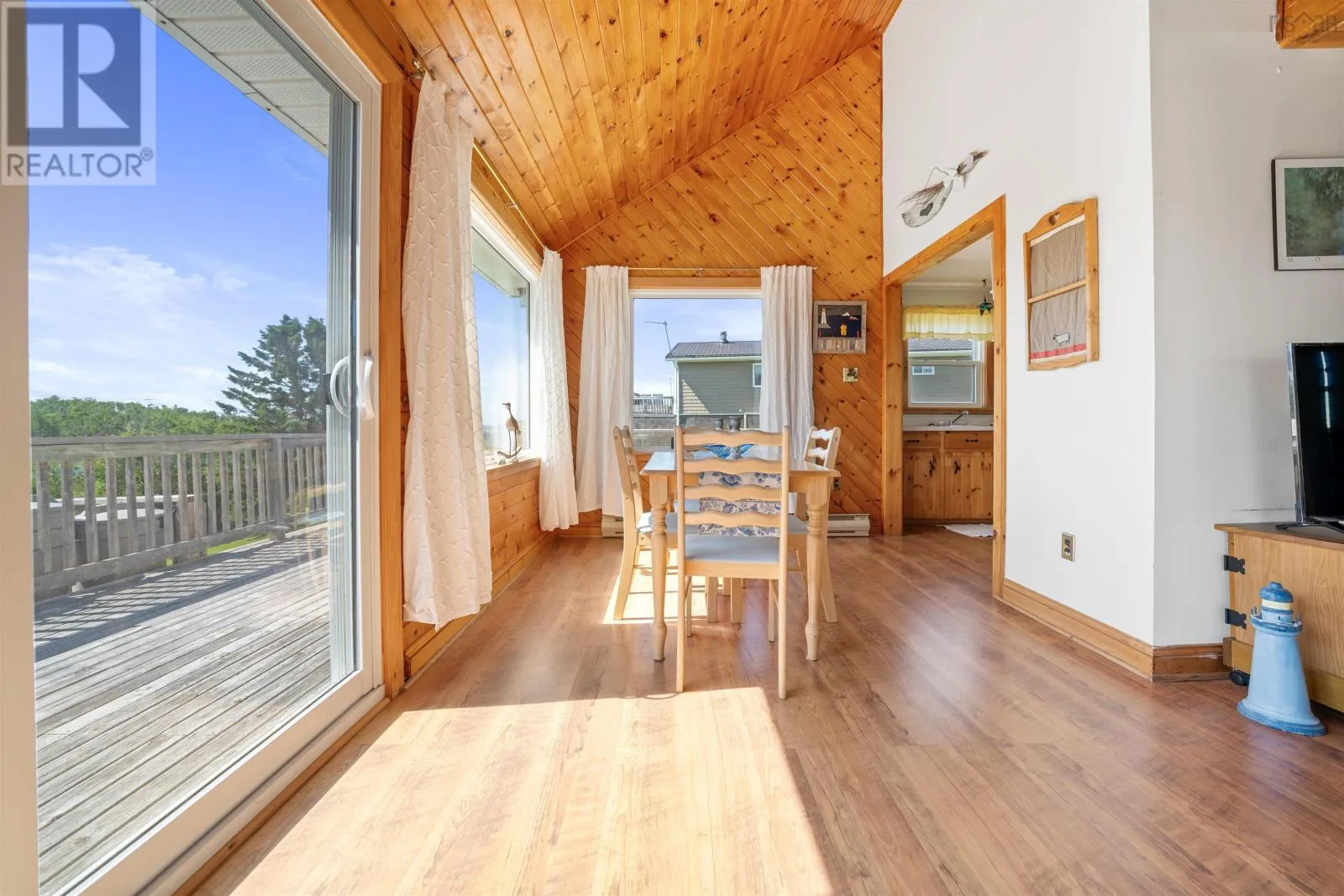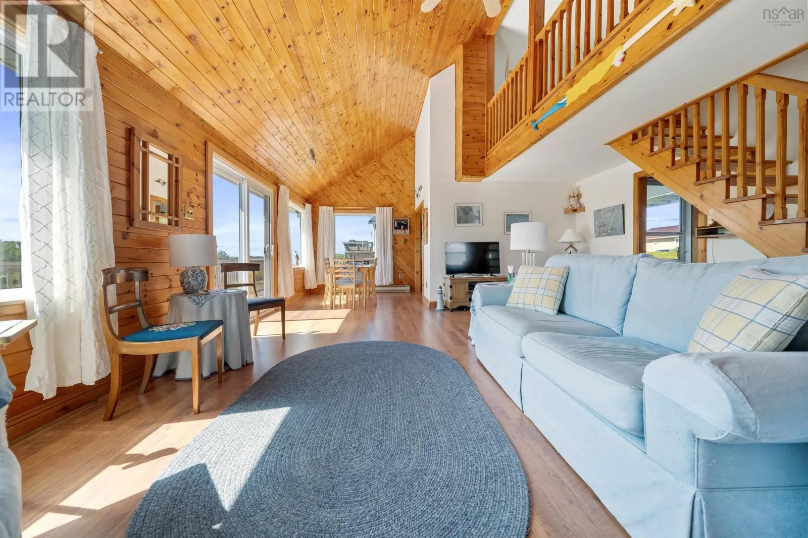 Caribou Island Road , turn left onto Hilltop Lane , property on left see sign Welcome to your peaceful escape on beautiful Caribou Island! This charming two-bedroom, one-bath cottage sits on a 15,000 sq ft lot overlooking the oceanand offers the perfect place to soak in the coastal lifestyle. Tucked in a friendly cottage community on a hilltop, youll love the welcoming feel and breathtaking views from sunrise to sunset. Step inside to an open-concept main floor featuring pine walls and ceilings with a bright living and dining space that captures views of the bay through the large picture window in the dining area. The newer roof and expansive wraparound deck make it easy to enjoy outdoor living, whether you're sipping coffee at sunrise or unwinding after a day at the beach. Upstairs, youll find two cozy bedrooms, with one bedroom opening onto a private balcony overlooking Prince Edward Island and Pictou Island ,a perfect spot to watch the ferry glide by or catch the evening breeze. This property includes deeded access to a stunning sandy beach just steps away, often quiet and nearly private, inviting you to swim, beachcomb, or simply relax by the waves. Offered fully furnished, this turn-key cottage is ready for you to start making summer memories by the sea. Whether youre looking for a seasonal retreat or a peaceful getaway, this Caribou Island gem is ready to welcome you home. (id:27476)
