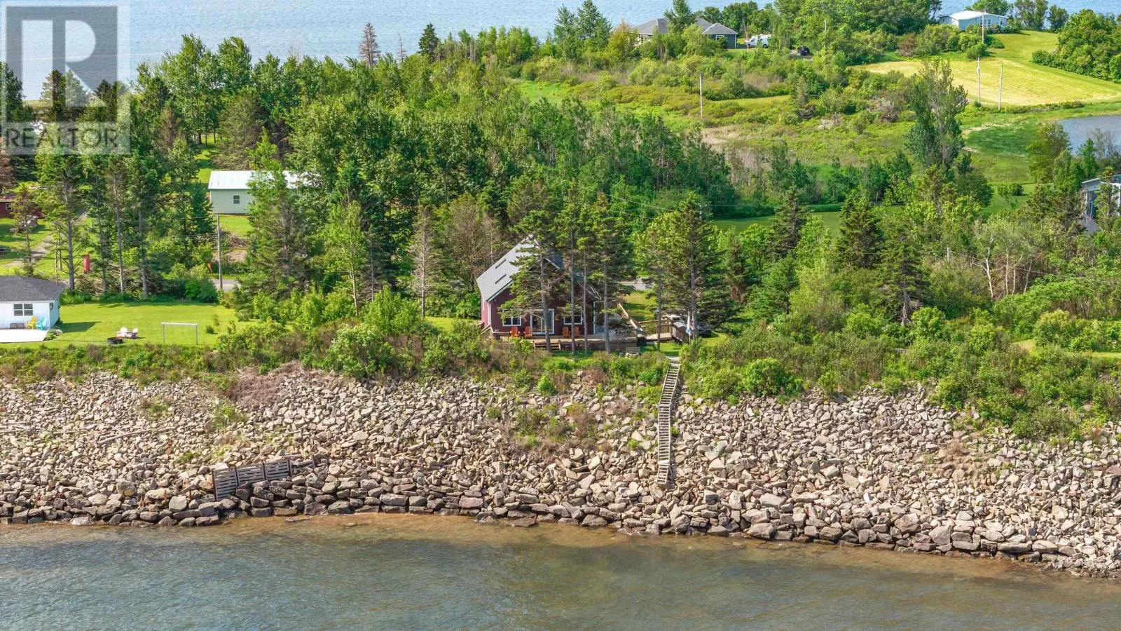From Highway 6 right onto Rue Grant Road, left to caribou island road. Property on left see sign Welcome to your oceanfront escape on beautiful Caribou Island! This charming one-and-a-half-storey home is nestled on a private half-acre lot with breathtaking views of the Northumberland Strait, Pictou Island, and Prince Edward Island. Whether you're watching fishing boats pass, catching a glimpse of the ferry, or soaking in the sunrise from your expansive back deck, this is coastal living at its finest. Inside, the warmth of cedar accents throughout creates a cozy, inviting atmosphere. The main level offers an open-concept layout with a bright kitchen, dining, and living areaideal for relaxing or entertaining. Patio doors lead to the deck for seamless indoor-outdoor living, where you can take in stunning sunsets and the sound of the waves. You'll also find a spacious main floor bedroom and a full four-piece bath with convenient laundry. Upstairs, the loft is currently set up to sleep multiple guests and features patio doors leading to a front-facing balconyperfect for your morning coffee or unwinding under star-filled skies. Don't forget about the firepit perfect for cool evenings by the shore. Whether you're dreaming of a peaceful year-round retreat or a seasonal coastal getaway, this Caribou Island gem offers unmatched tranquility, natural beauty, and the timeless magic of life by the sea. (id:27476)