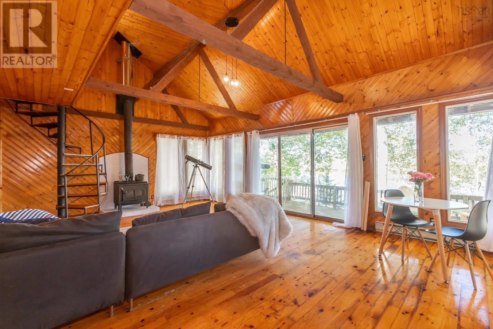 Highway 201 south of Bridgetown. Turn onto Al Haley Road. Road will lead to an arrow sign. Go right onto private road. Property is located at the end of the road. Idyllic riverside dream. Enjoy peace and quiet, privacy, fishing, boating, and swimming in this lovely 3 bedroom chalet. The main floor features a country kitchen, a great room full of windows, a cathedral ceiling and wood stove. Plus a large bedroom, beautiful bathroom and an office. Climb the spiral staircase and find two good size bedrooms and a large storage area. Outside is a full length front deck, a party sized deck overlooking the river and stairs to the water's edge. The yard has a large shed, and great potential for gardens or a garage. Don't miss this one, it won't last long. (id:27476)