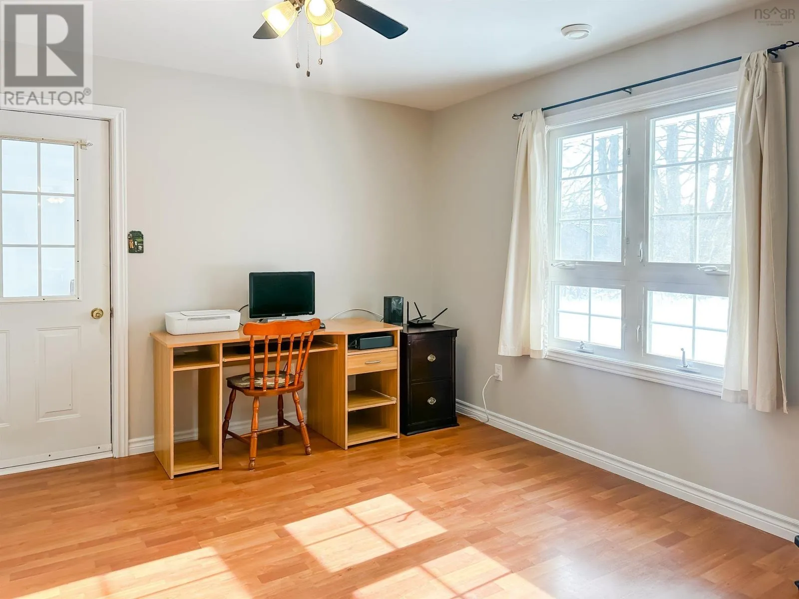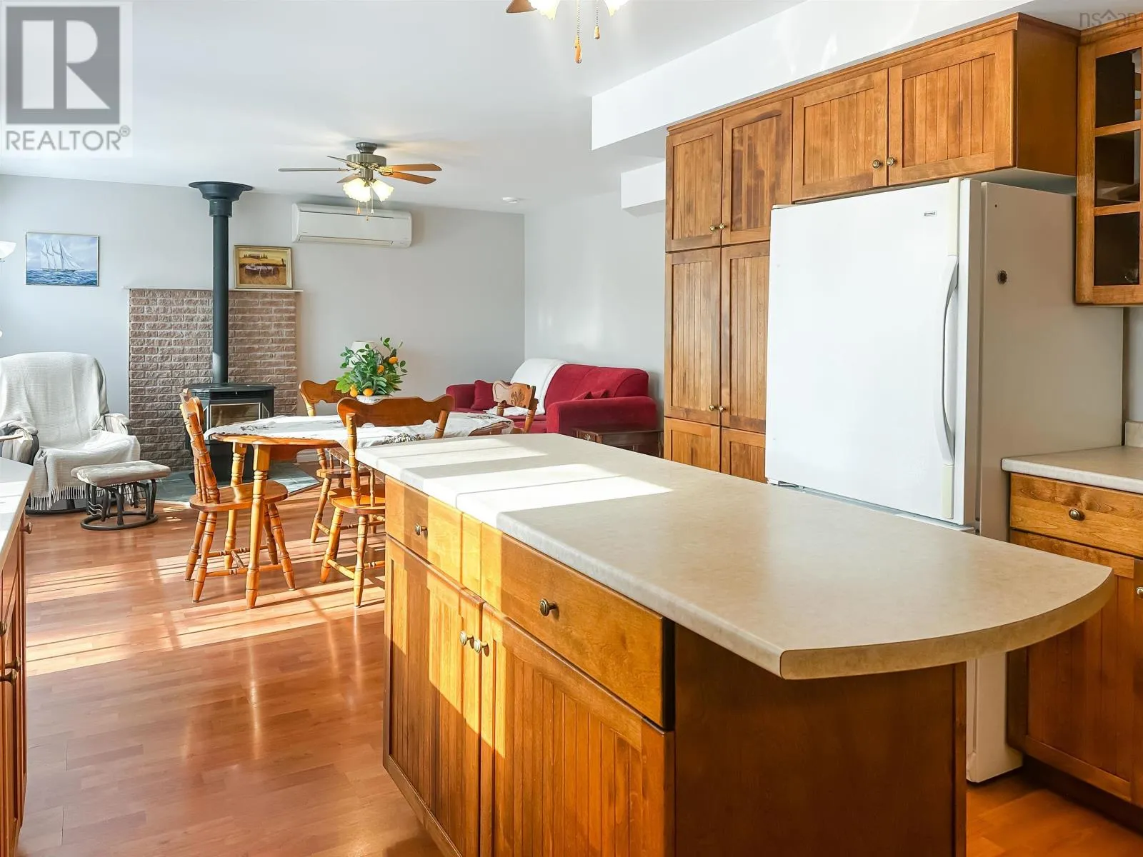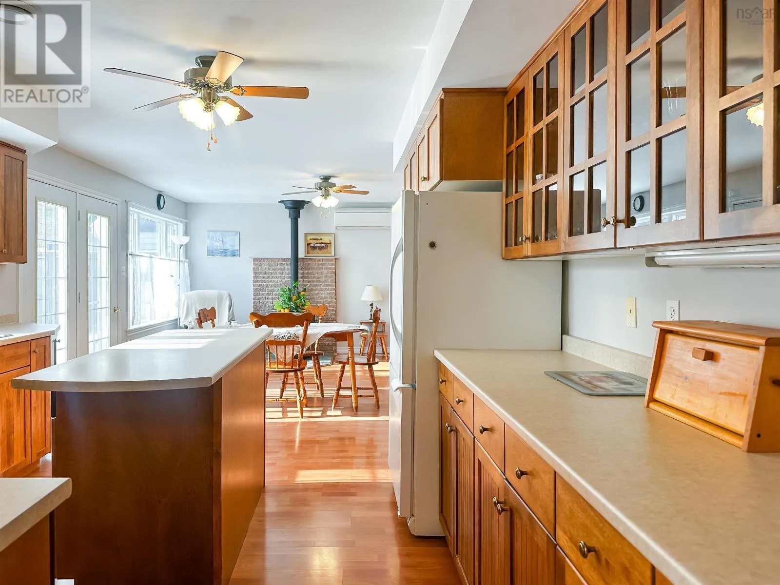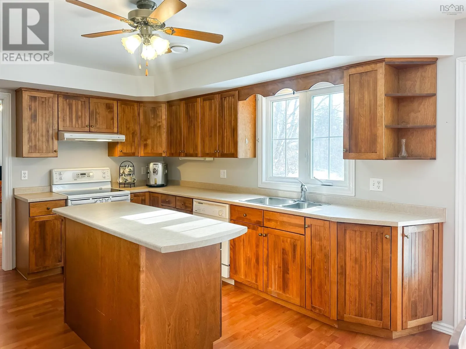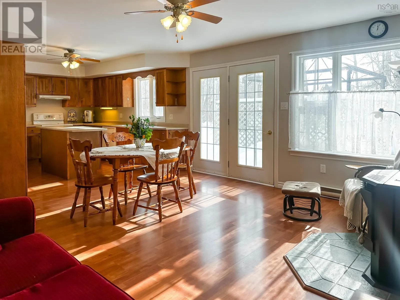 Hwy 101W to exit 12, turn right onto New Minas Con. Rd., turn left onto Trunk 1, changes to 359, turn right onto Lydiard Rd., turn right onto Parkside St., turn left onto Parkside Dr., property will be on right. Welcome to this freshly painted, move-in ready 4-bedroom, 2-bath family home located in the heart of Centreville. A spacious front entry welcomes you inside, leading to a formal living room ideal for entertaining or quiet relaxation. The main living areas are bright and sunny, featuring an open-concept kitchen, dining area, and living room that create an inviting space for everyday living and gatherings. The living room is highlighted by a cozy pellet stove, adding warmth and character to the heart of the home. A full bath and a versatile fourth bedroom on the main floor offer excellent flexibility, whether you need a home office, guest room, or main-level bedroom. Main-floor laundry adds everyday convenience. The second level features three well-sized bedrooms and a full bath, providing a comfortable and functional layout for family living. A ductless heat pump ensures energy-efficient, year-round comfort, while the attached garage is wired and heated, making it ideal for hobbies, a workshop, or convenient winter parking. Home has new pressure tank. Outside, the backyard offers added privacy and a peaceful outdoor setting, with green space nearby to enjoy. Located just minutes from an 18-hole golf course and driving range, a local farm market, and a nearby park, this home combines comfort, functionality, and a desirable location. (id:27476)
