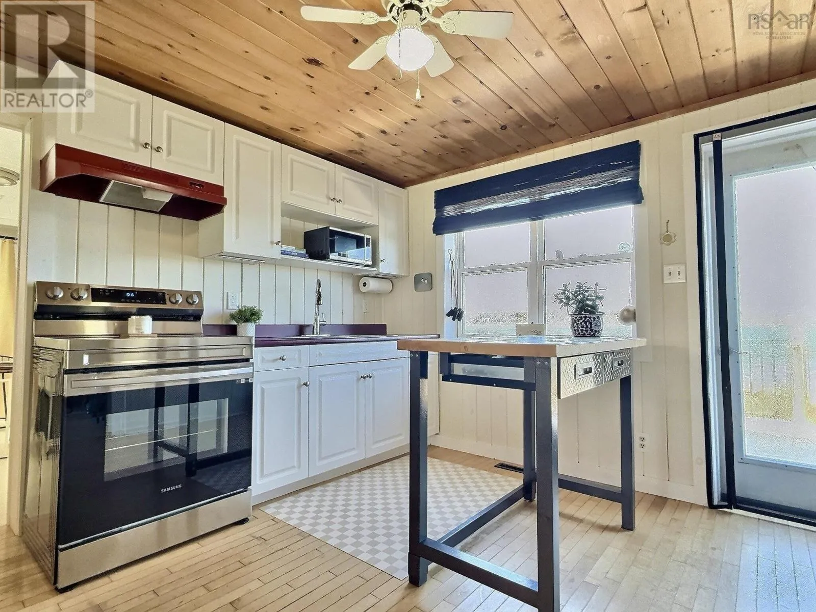 Driving north towards the park, property is at the end of town, across from carwash. With spectacular direct waterfront access and views, the backyard of this charming older home is a true show stopper! Here, youll enjoy sweeping vistas of the breathtaking Cape Breton sunsets, all from the comfort of your own deck that feels like it's floating above the water. This newly renovated 2 + 1 bedroom, 1.5 bathroom home is full of character and charm, offering the ideal setting for a year-round residence or a seasonal cottage. Inside, the home has been tastefully updated while preserving its warm, cottage-style feel. The spacious main floor includes a bright and comfortable bedroom and a large full bathroom, making one-level living easy and convenient. A newly installed wood stove brings warmth and comfort on those chilly nights, adding to the home's cozy atmosphere. Upstairs, you'll find an additional bedroom and a bonus room perfect for guests, a studio, or a home office. Whether you're watching the boats glide by, dining outdoors, or curling up inside with the windows open to the sea breeze, this unique property captures the very best of coastal living. Dont miss the chance to own your piece of paradise on the East Coast. (id:27476)
