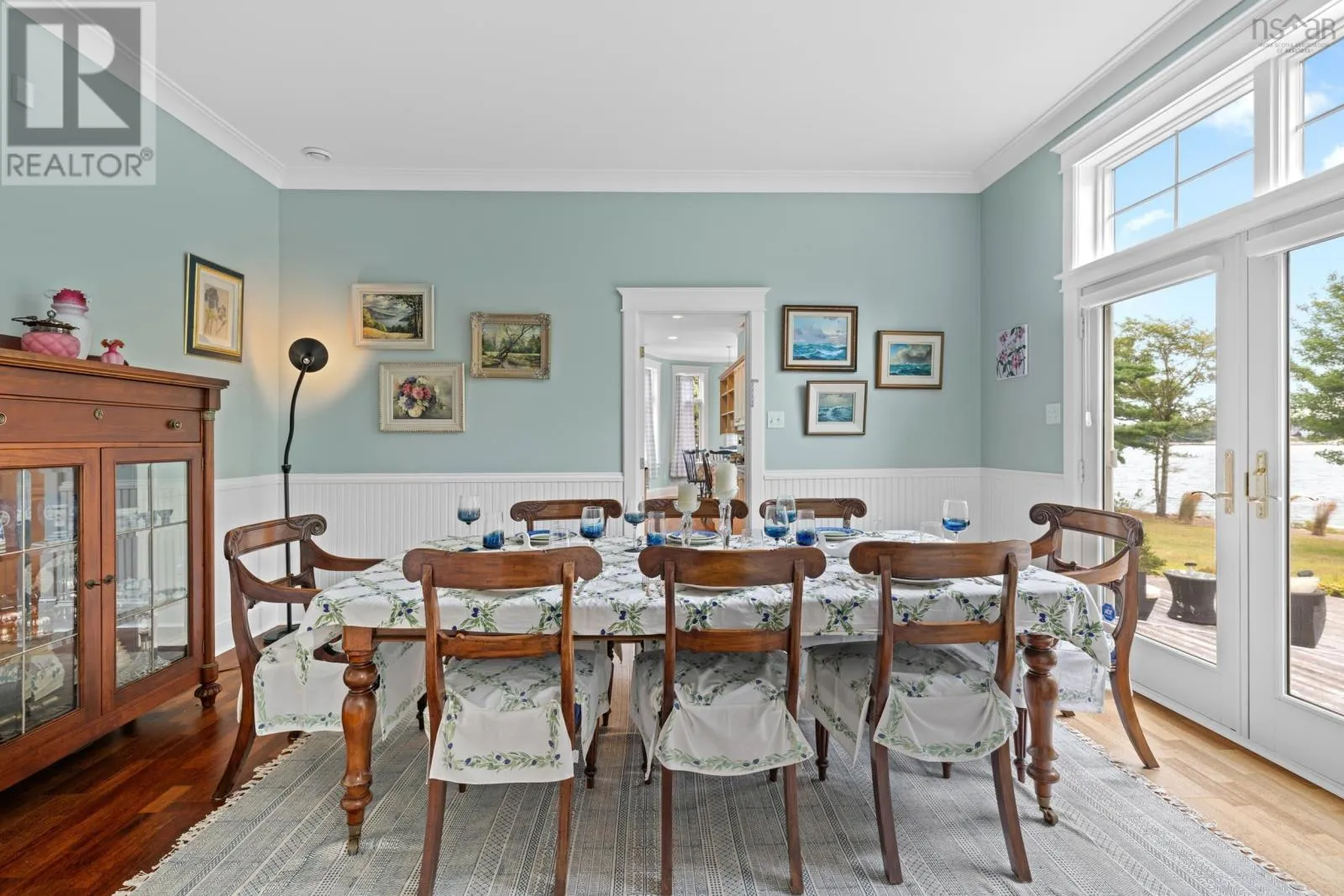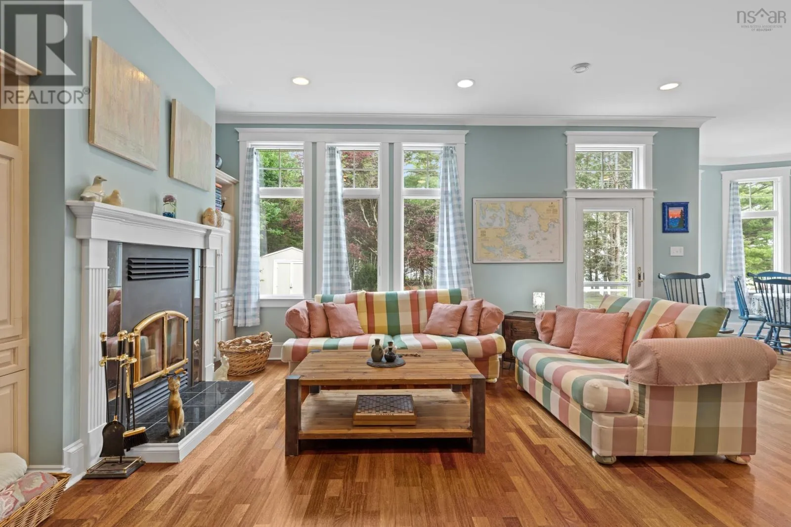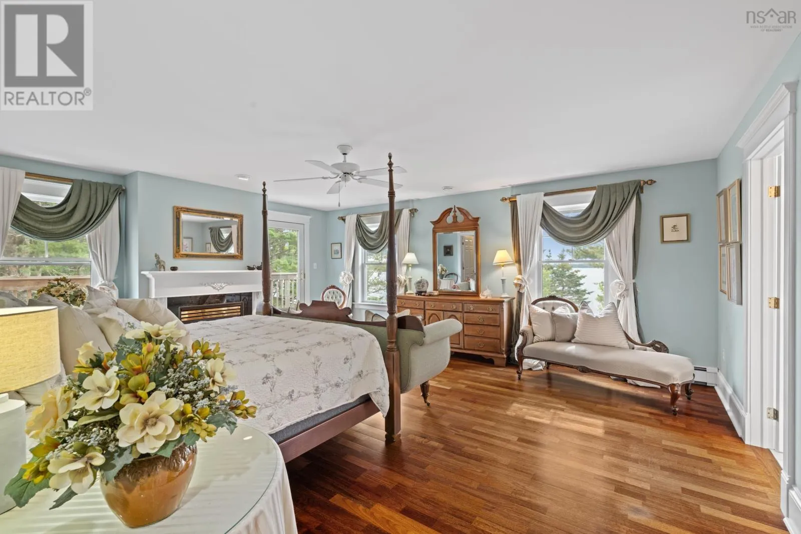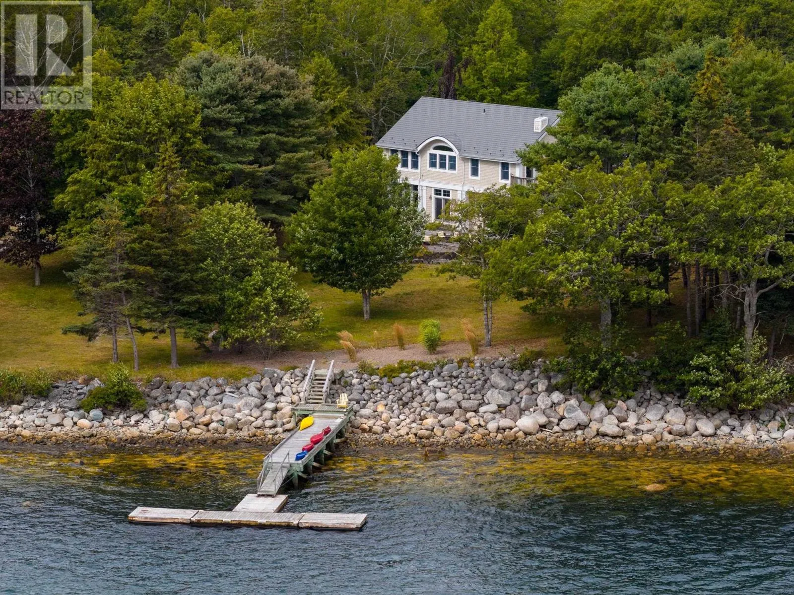 Highway 103 to Exit 9 to Highway 3. Left on Highway 3. Right on Borgalds Point Road. Left on Borgalds Drive to #217. TIMELESS SEASIDE ESTATE. Nestled on a private 1+ acre landscaped lot, this classic 4000 sq. ft quality built home has 115' of direct oceanfront, a solid wharf for the serious boater and beautiful water views. Located within the Chester Golf Course membership area in an area of executive oceanfront homes in Chester Basin. Access is via a tree lined country lane. A home for all seasons, features of the home include in-floor hot water heating throughout, 10' ceilings, wide trim and baseboards, crown mouldings, formal living and dining room, main floor family room with wood burning fireplace, wraparound deck for entertaining, attached double garage, upper level primary bedroom with private balcony overlooking the ocean, 2 walk in closets and luxurious ensuite, plus three guest bedrooms and guest bathroom. Enjoy seaside country living close to amenities where one can build family memories. (id:27476)