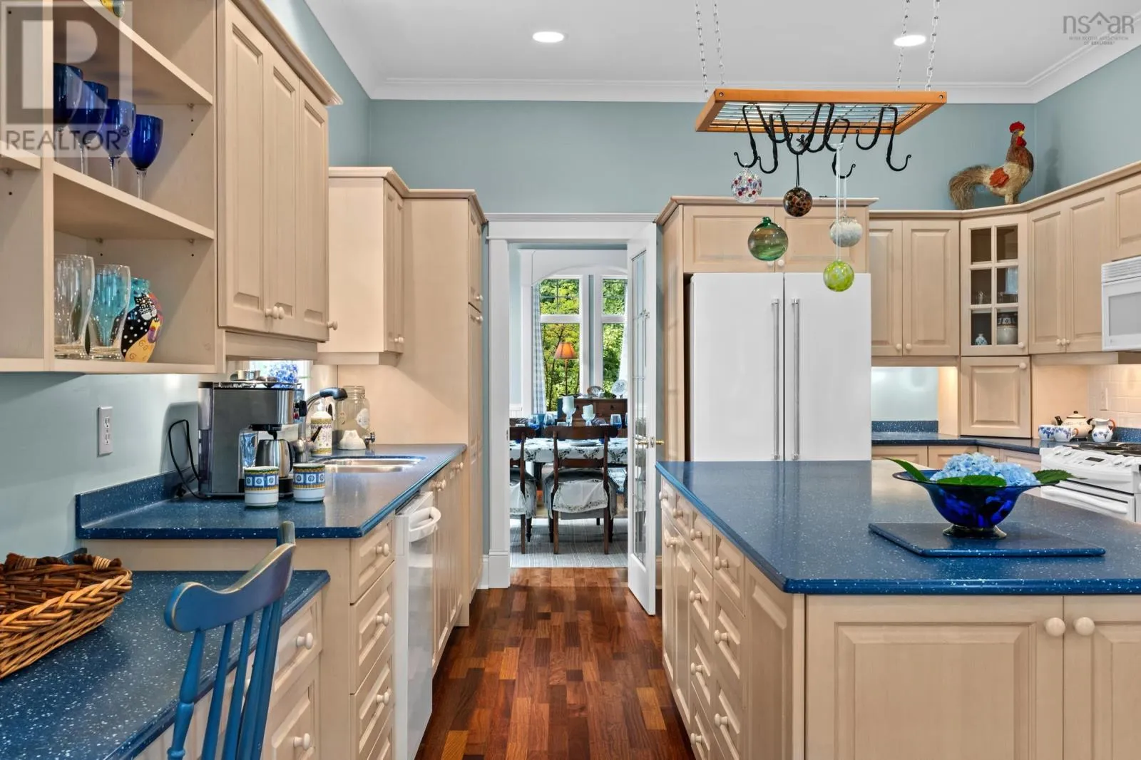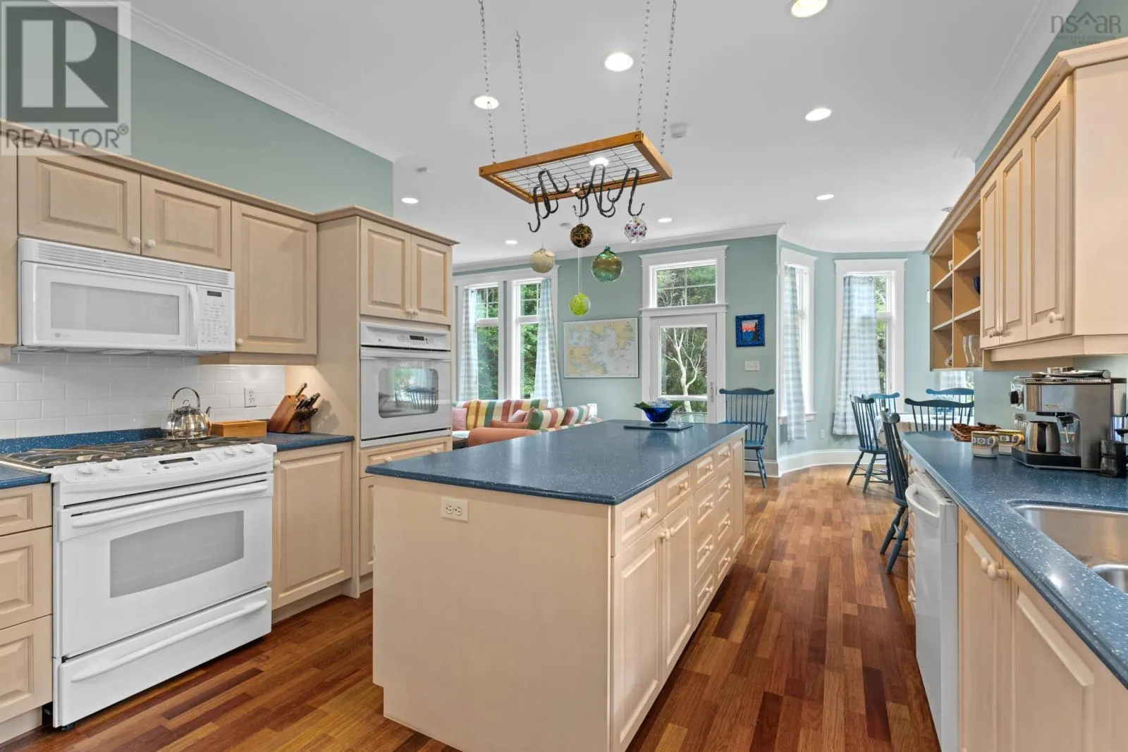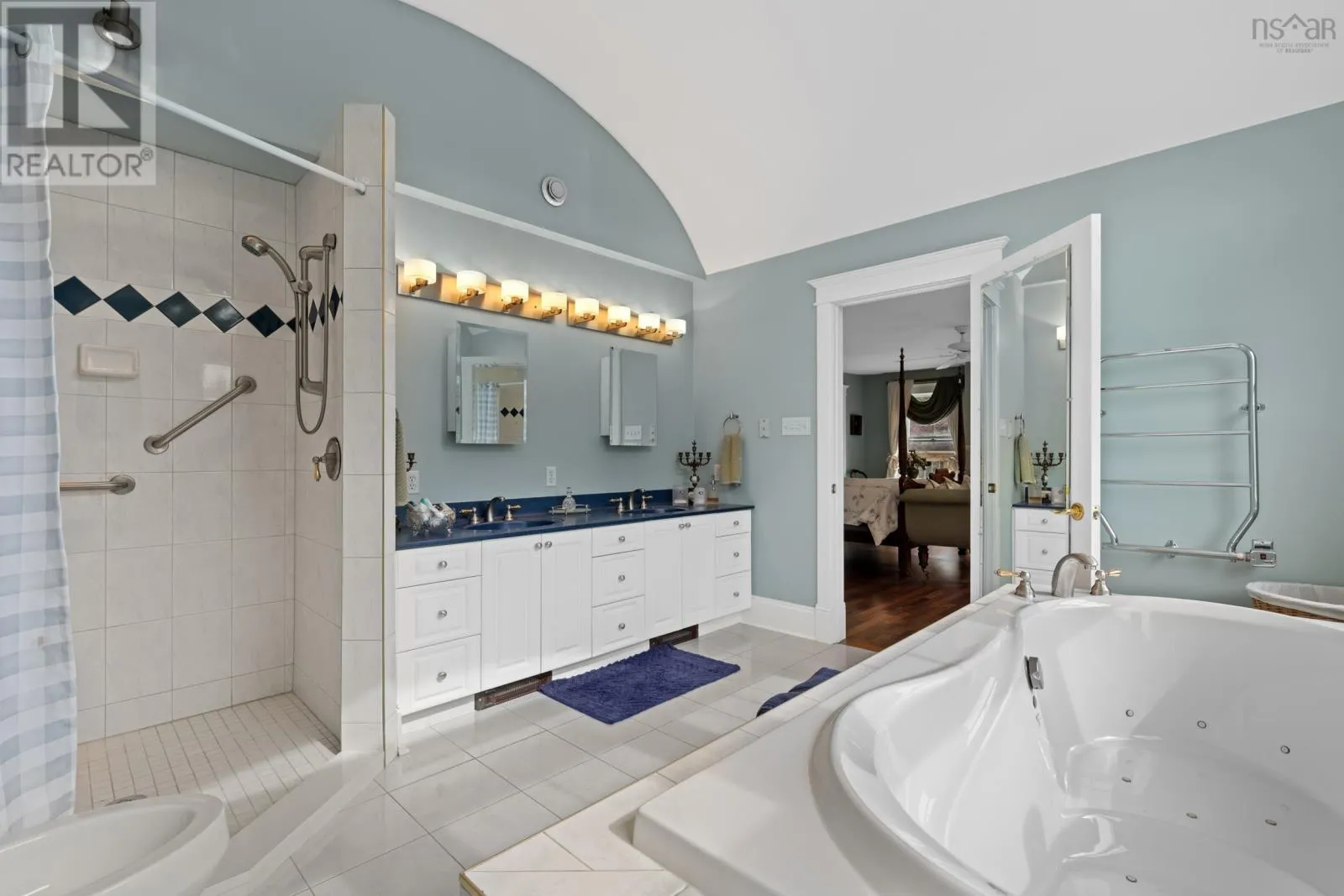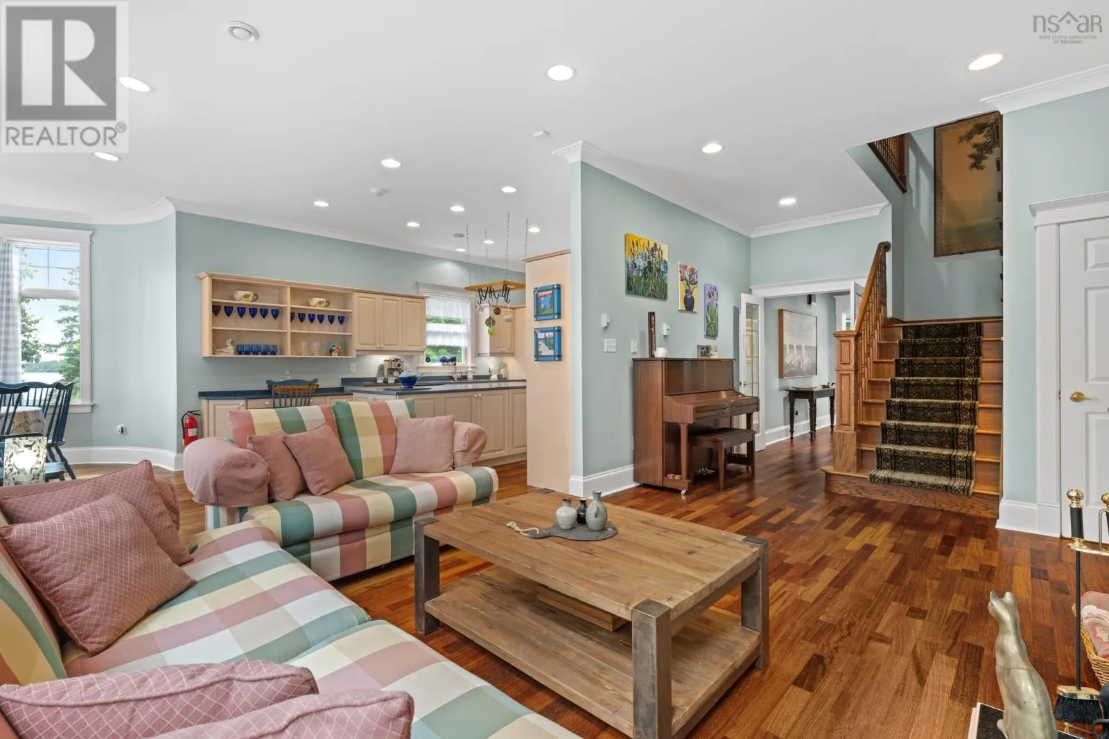 Highway 103 to Exit 9 to Highway 3. Left on Highway 3. Right on Borgalds Point Road. Left on Borgalds Drive to #217. TIMELESS SEASIDE ESTATE. Nestled on a private 1+ acre landscaped lot, this classic 4000 sq. ft quality built home has 115' of direct oceanfront, a solid wharf for the serious boater and beautiful water views. Located within the Chester Golf Course membership area in an area of executive oceanfront homes in Chester Basin. Access is via a tree lined country lane. A home for all seasons, features of the home include in-floor hot water heating throughout, 10' ceilings, wide trim and baseboards, crown mouldings, formal living and dining room, main floor family room with wood burning fireplace, wraparound deck for entertaining, attached double garage, upper level primary bedroom with private balcony overlooking the ocean, 2 walk in closets and luxurious ensuite, plus three guest bedrooms and guest bathroom. Enjoy seaside country living close to amenities where one can build family memories. (id:27476)