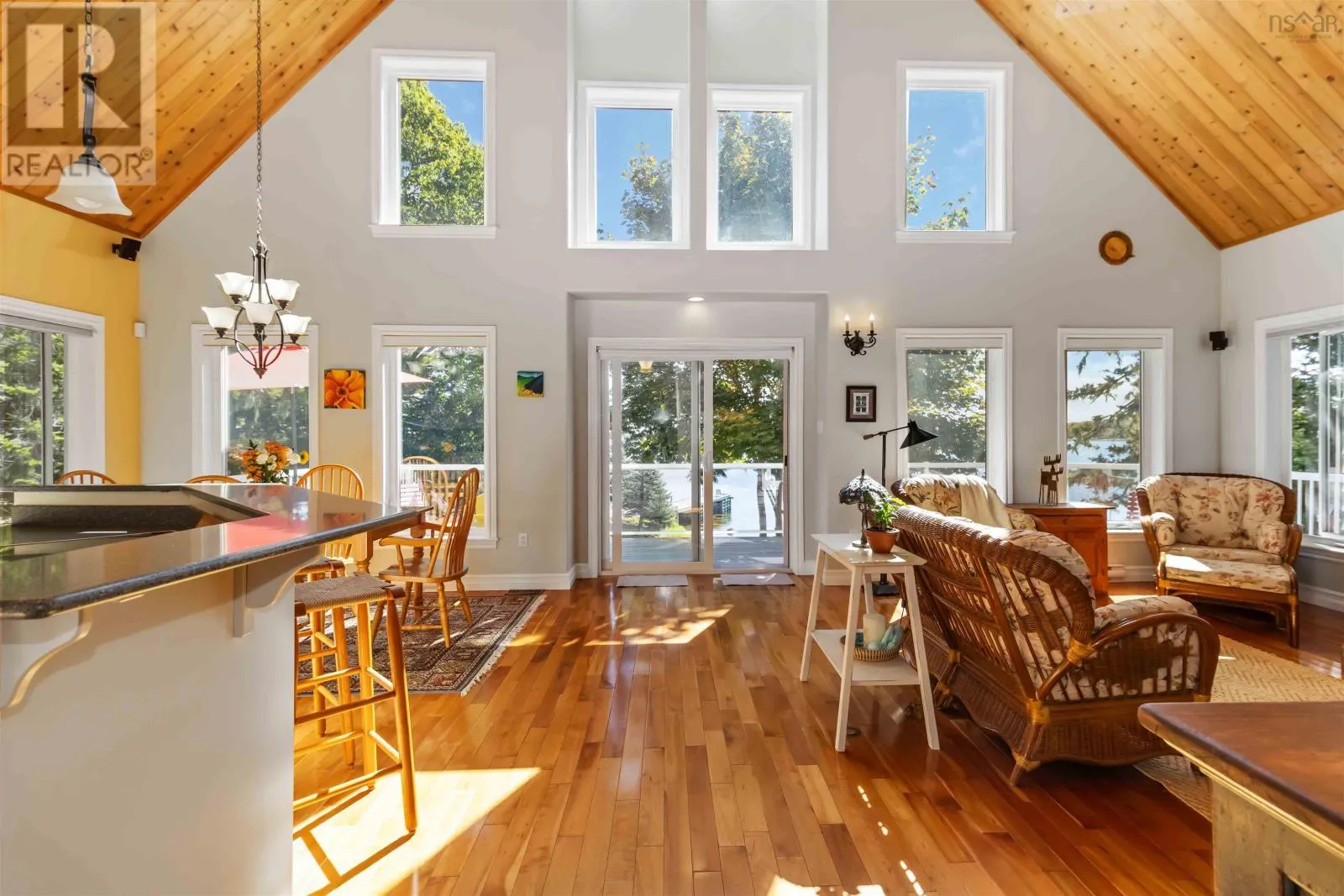 From 103, take Exit 9 (Chester Basin) to Route 3. Take right at stop sign onto Route 3, left on to Borgalds Point Road. Take right on to Borgels Drive then right on to Borgels Shore Drive to civic 135 on the left. Property Signed. There are oceanfront homesand then theres 135 Borgels Shore Drive, where magic truly lives by the sea. Tucked into one of Nova Scotias sought after tightly knit coastal communities, this property sits quietly along the protected waters of Chester Basin, offering 132 feet of shoreline, warm waters and views that stretch beyond the everyday. Here, neighbours arent just nearby theyre part of a small circle of 12 who share a love of privacy, nature and the rhythm of life by the ocean. Theres no traffic, no noisejust the sound of waves lapping on shore, seabirds and the occasional sail gliding past. Whether as a year-round retreat or a storybook cottage escape, this home feels like the magic we need in our lives. Inside, light pours through soaring cathedral windows that frame the oceanfront views from nearly every room. The open-concept main floor was designed for connection, whether intimate date night or large family gatherings, with warm cherry hardwood underfoot, a propane wood stove for cozy nights and a kitchen that lets the cook be part of all the action - and the views! French doors lead to the wide composite deck overlooking your own protected shore, stairs to a little beach nook and wharfperfect for a morning swim, a paddle, or a sail to the Village of Chester just a few coves away. Upstairs, the primary suite feels like a hideaway with a 5 piece ensuite and bonus space for a reading loft or airy Yoga space. The lower walkout level offers room for family, hobbies or extra guests with 2 large spaces to make your own. With efficient geothermal comfort, a detached heated double garage and shared ownership of surrounding 4+ acres preserving your privacy, this property is as practical as it is magical. Moments from Gold River Marina, minutes to Chester, and less than an hour to Halifaxthis is coastal living, reimagined and waiting for your own personal touch. Lets get you moving so call a Realtor today to book your private viewin (id:27476)