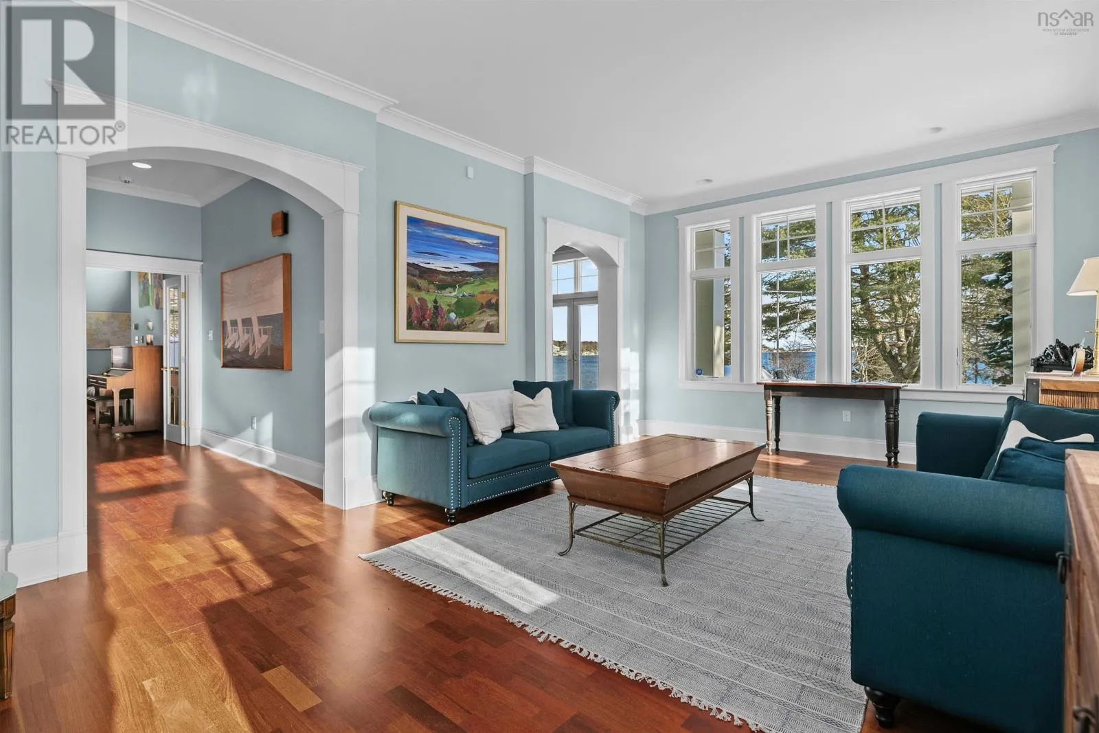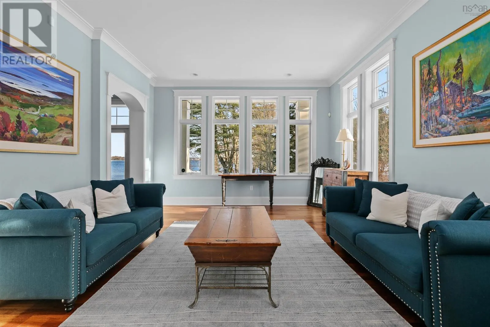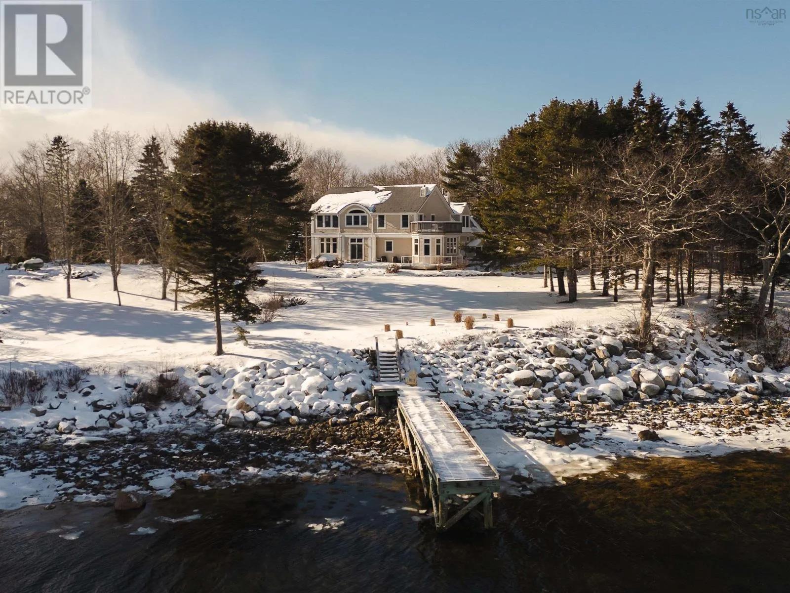 Highway 103 to Exit 9 to Highway 3. Left on Highway 3. Right on Borgalds Point Road. Left on Borgalds Drive to #217. TIMELESS SEASIDE ESTATE. Nestled on a private 1+ acre landscaped lot, this classic 4000 sq. ft quality built home has 115' of direct oceanfront, a solid wharf for the serious boater and beautiful water views. Located within the Chester Golf Course membership area in an area of executive oceanfront homes in Chester Basin. Access is via a tree lined country lane. A home for all seasons, features of the home include in-floor hot water heating throughout, 10' ceilings, wide trim and baseboards, crown mouldings, formal living and dining room, main floor family room with wood burning fireplace, wraparound deck for entertaining, attached double garage, upper level primary bedroom with private balcony overlooking the ocean, 2 walk in closets and luxurious ensuite, plus three guest bedrooms and guest bathroom. Enjoy seaside country living close to amenities where one can build family memories. (id:27476)