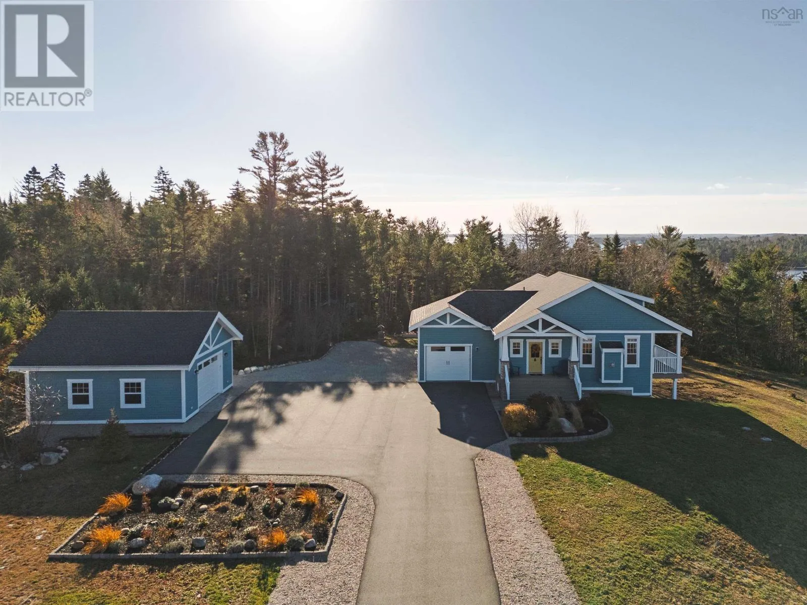Highway 103 to Exit 9. Left on Highway 3 to Arthur Hatt Road. Right on Swallow Point Road. Right on Skipper Hill Drive. Property on left. Skipper Hill Estates Oceanfront Community with Shared Wharf and Private Slip. Seaside living made easy in the community of Skipper Hill Estates. There is a community wharf and this property has it's own private slip. The contemporary home ticks all the boxes -sparkling views of the ocean, open plan living area with an extensive wall of windows, vaulted ceiling with exposed beams, cozy propane fireplace, and a bright kitchen with stainless appliances, gas range, pantry, wine fridge, quartz counters and island. From the dining area, walk through French doors to a large, covered veranda with elevated, panoramic views of the waters of Chester Basin. Conveniently located on the main level, the primary suite has garden doors leading to a private, covered, deck with ocean viewsthe perfect place to wind down after a long day and watch the sun paint the sky and water as it sets. The light filled garden level has 9' ceilings, spacious family room with wet bar, two more bedrooms, a full bath, laundry, and a walkout to a patio and garden area. The home has central cooling and heating with in-floor heat in the bathrooms. There are two garages, one attached single, and a detached double with plenty of room for your water toys. Located in the Chester Golf membership area, and minutes from the village of Chesterrenowned for its world-class sailing and seaside golfand a short scenic drive to the Towns of Mahone Bay and Lunenburg where charming seaside shops and cafes abound, there is always something to do nearby. Other interests in the area include sandy beaches, saltwater swimming pool, parks, skating/curling complex, schools, Spa, and Health Centre. For the serious sailor, paddle boarder, kayaker, in a beautifully appointed home on a spacious lot with lots of room for gardens, a pool ...this is seaside living at its best! (id:27476)