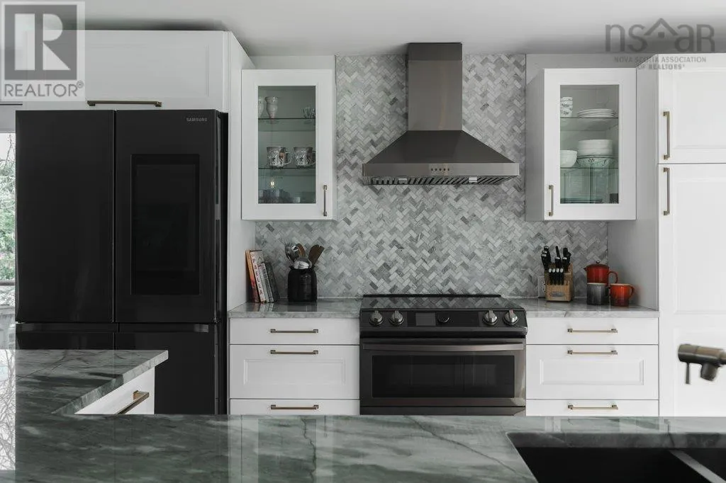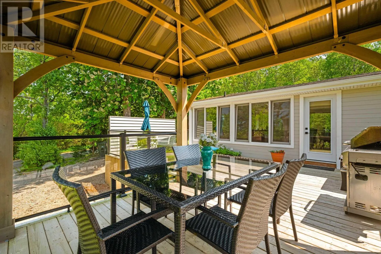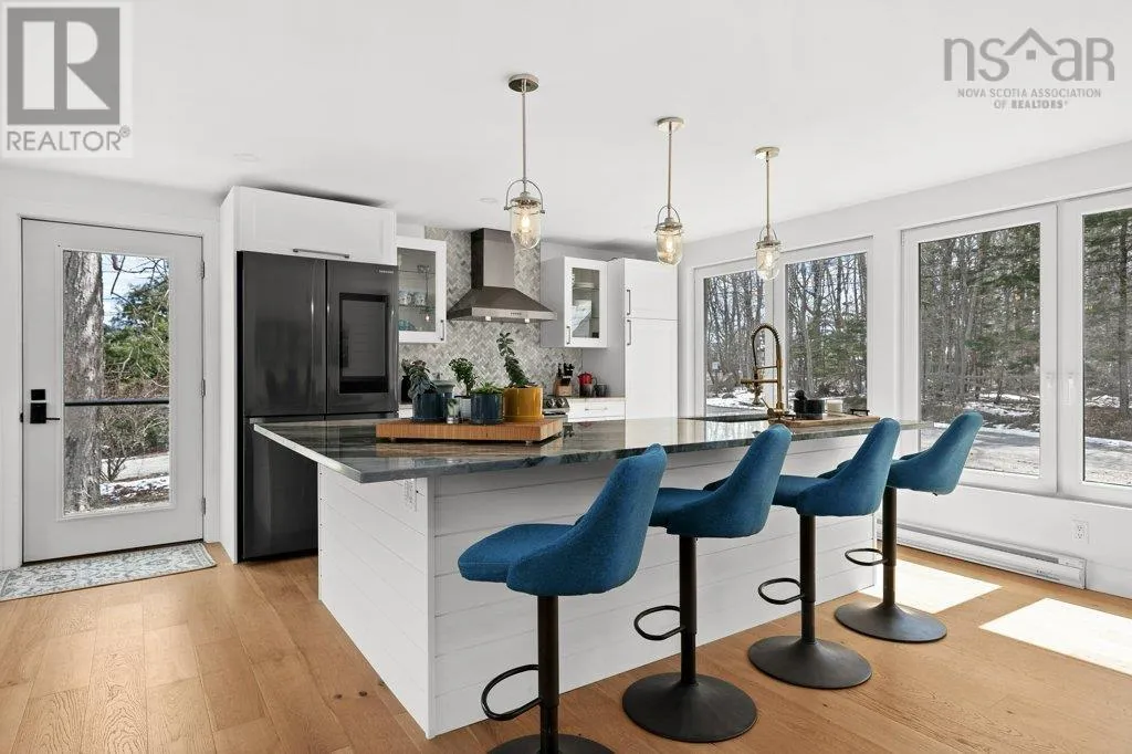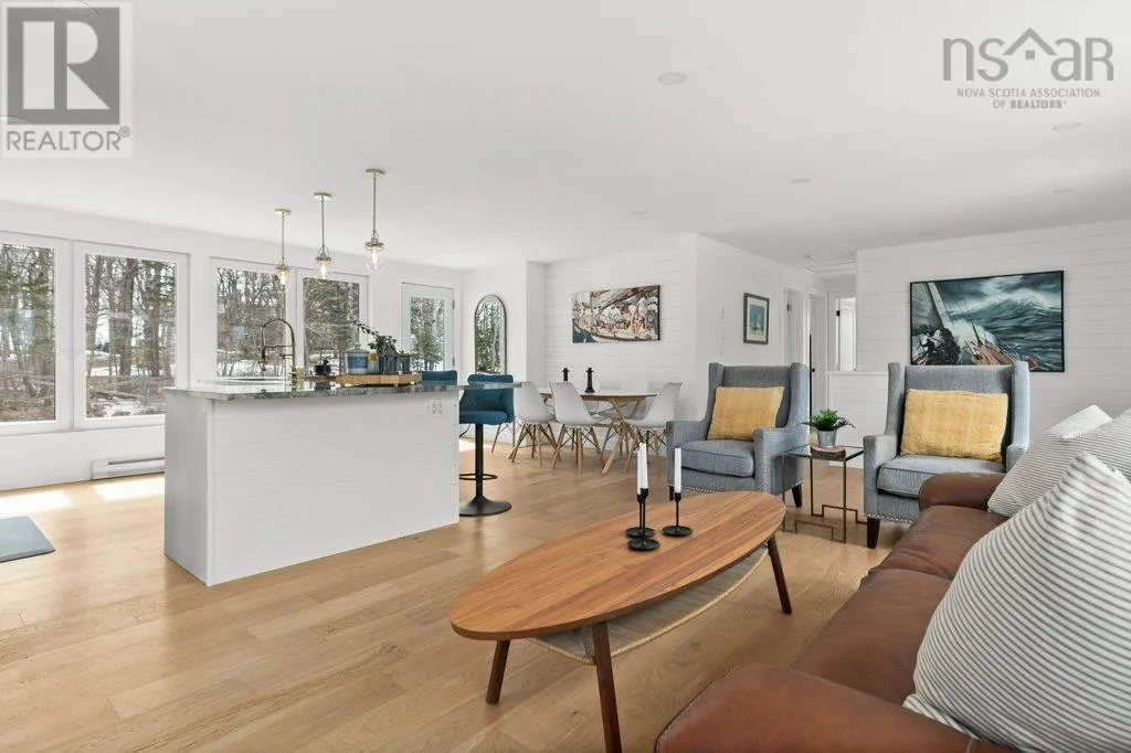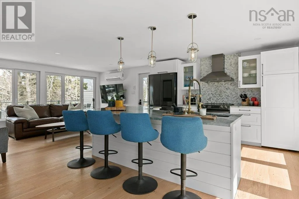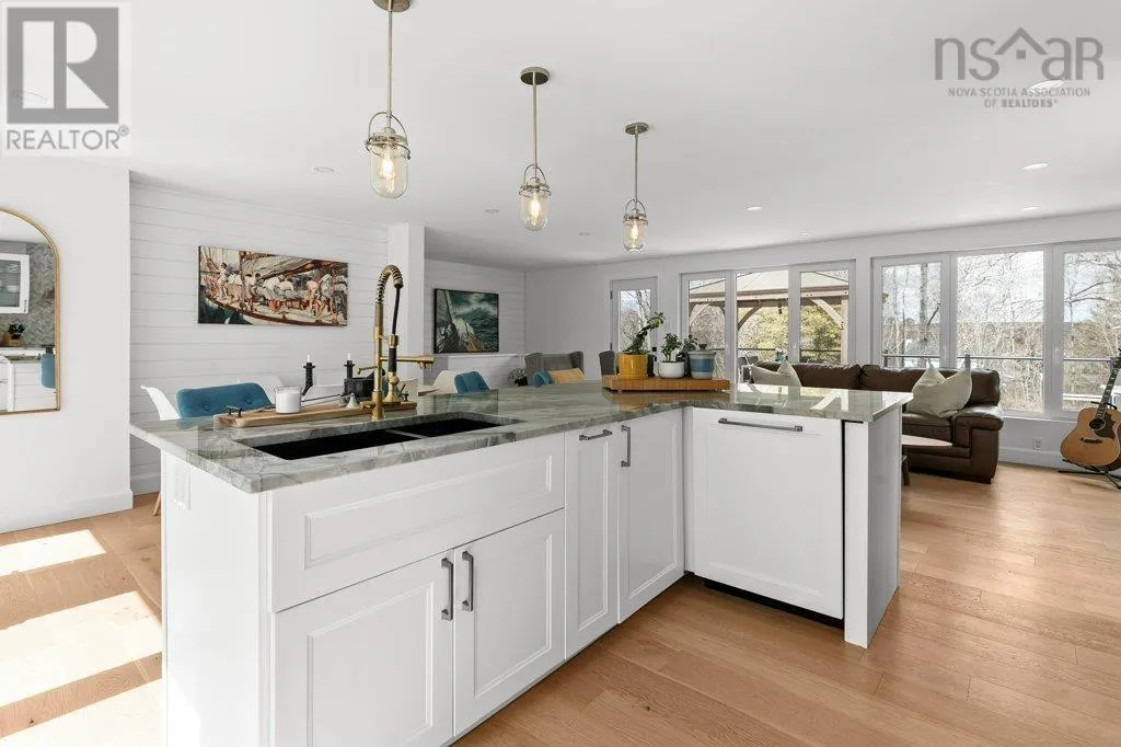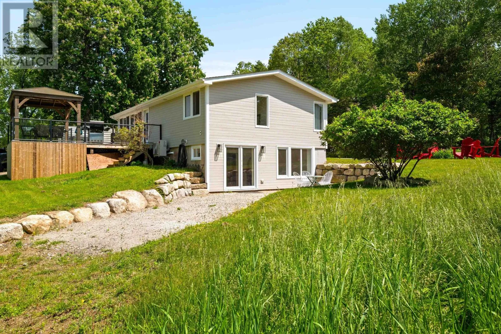 Highway 3 to Chester to Valley Road, first right on Central Street, right onto Regent, property on the right. Tucked away on a quiet street, this fully renovated home offers a rare mix of modern comfort and relaxed village living in the heart of Chester Village. It feels calm and peacefulyet you're just a short stroll from cafés, shops, the yacht club, and the harbour. Surrounded by a lush grassy lawn on a sunny corner lot, step inside and you'll find a bright, open layout designed for entertaining. The entire space flows together effortlesslyand from the living room, you can step straight out onto the wraparound deck and gazeboperfect for outdoor dinners, morning coffee, and evening chats under the stars. Whether you're coming back from the beach, a day on the water, or a morning at the market, this home invites you to unwind. The modern kitchen with stone counters and high-tech appliances offers a stylish, functional space for everyday life. The main level features engineered hardwood floors, a warm shiplap accent wall, and a bright living room with grand Polytech windows. With four bedrooms and two full baths there's room for everyone to stay. The lower level has been newly finisheda bright and versatile rec room features a wall of windows, surround sound, and a wet bar with a wine fridge. The 2nd full bath and lower level bedroom make transforming the space to an in-law or rental suite an easy possibility. A sliding door opens to a private gravel patio offering an additional private outdoor space to relax which is cut into the hill and framed by a retaining wall with large stonework on the side of the house. Every detail has been thoughtfully upgradedWhether you're looking for a full-time residence, a weekend escape, or a place to welcome friends and family, this Chester bungalow offers you the perfect seaside lifestyle to make new memories with family and friends. (id:27476)