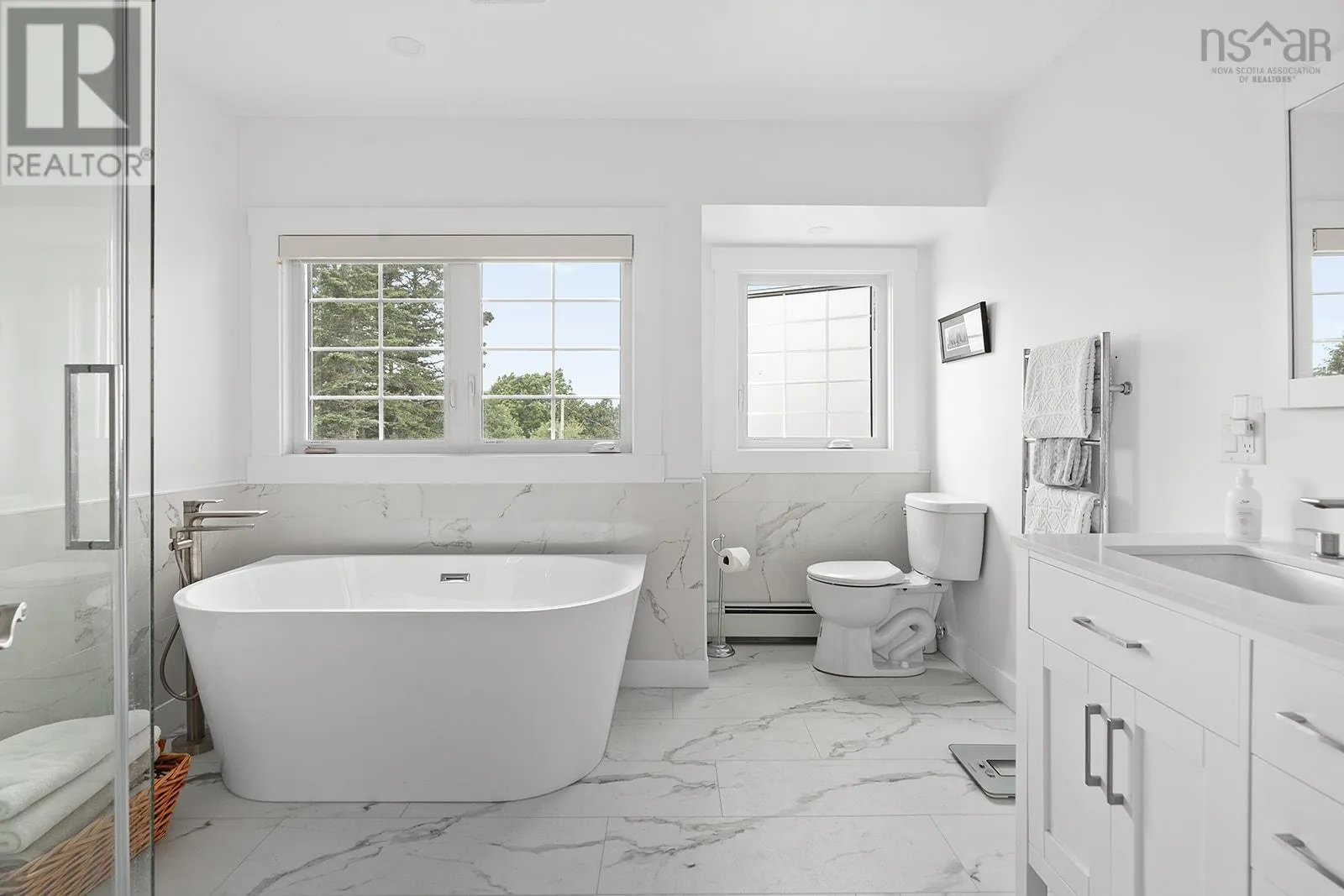 Village of Chester to Pig Loop Road to Nauss Point Road. Property on the left. ULTIMATE CHESTER LOCATION. Light filled 5 bedroom, 3 bath home on Nauss Point in Chester with elevated, sparkling views of both Chandler's Cove/ Chester Golf Course and views of Chester's Front Harbour. Located on a quiet tree lined street that meanders along the water past beautiful classic homes to downtown shops, restaurants, live theatre, and yacht club. This home has had a total face lift including the infra structure, wiring, plumbing, new heating system, flooring, windows, patio doors, new bathrooms, kitchen, some new siding, addition of a generator, painted inside and out, new lighting, and so much more. Ready for a new family to enjoy worry free. The four level split entry is ideal for entertaining, with ample space to accommodate family and friends. Features include a large ocean view deck for entertaining, private backyard large enough to comfortably add a pool, living room with wood burning fireplace, spacious lower level family room with propane fireplace, and basement area could easily be converted into a gym or workshop. (id:27476)
