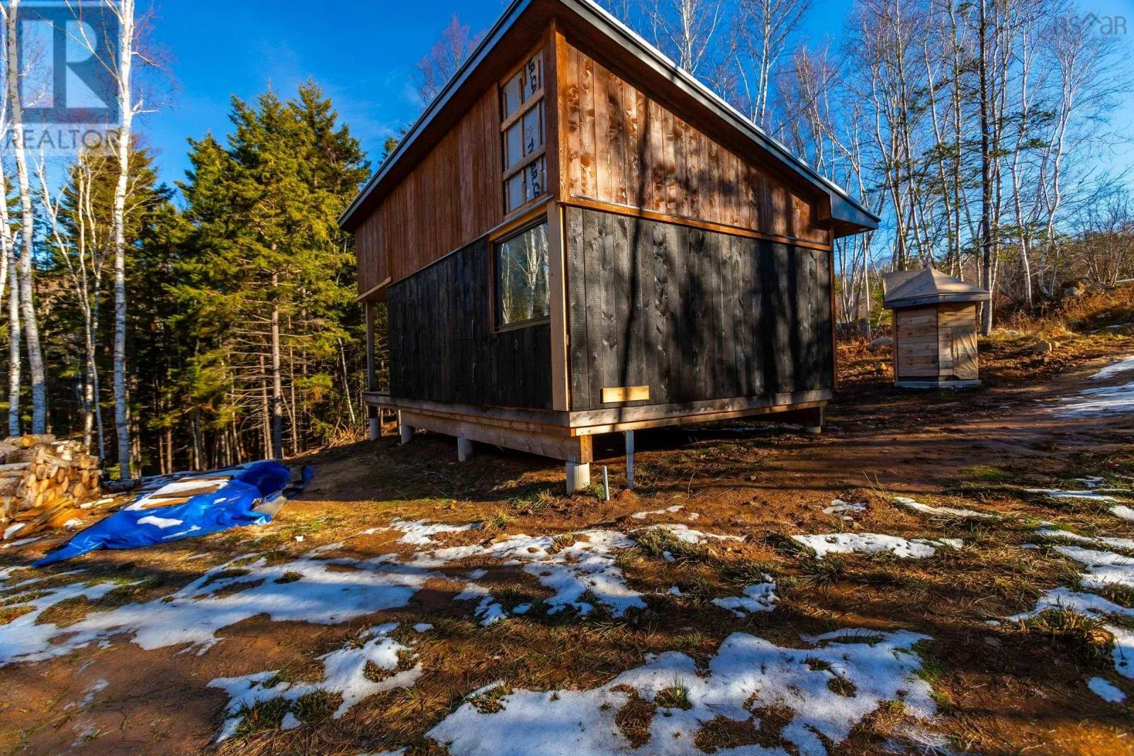 From Highway 1, turn left onto Old Post Road in Clementsport. Watch for sign. Tucked away in a quiet, serene location halfway between the historic charm of Annapolis Royal and the amenities of Digby, this 2+ acre property offers a rare blend of seclusion and accessibility. The land is a nature lover's dream, featuring a canopy of mature trees and a tranquil brook that meanders along the northern property boundary. At the center of this lot sits a charming, 425-square-foot cottage or small house designed with both durability and character in mind. The exterior is finished in classic board and batten with a long-lasting metal roof, while the structure itself boasts sturdy 2x6 construction. Adding to the property's utility is a separate 104-square-foot shed that is fully wired, perfect for a workshop or secure storage for your outdoor gear. Inside, the home feels remarkably spacious thanks to high ceilings and an abundance of natural light. The interior features a small loft area for extra storage or sleeping space, and is already wired and partially insulated. This is a true "blank canvas" opportunity, allowing you to complete the interior to your exact taste and specifications. To further simplify your transition, the sale includes completed plans for an onsite septic system, which will be provided to the buyer. The highlight of the homes design is the 9 x 8.5 covered deck, which offers a front-row seat to the sights and sounds of the neighboring brook. It is an idyllic spot for morning coffee or evening relaxation while immersed in the sounds of the forest. Whether you are looking for a creative project, a minimalist permanent residence, or a weekend escape, this property provides the infrastructure and the setting to make that dream a reality. (id:27476)