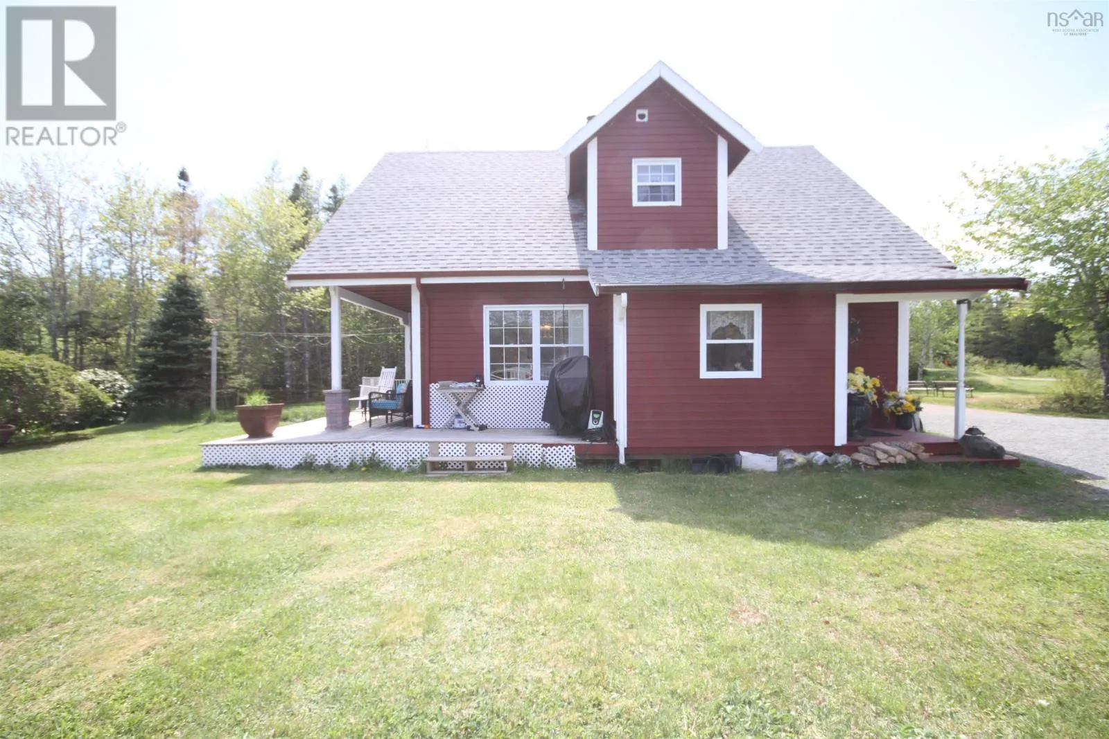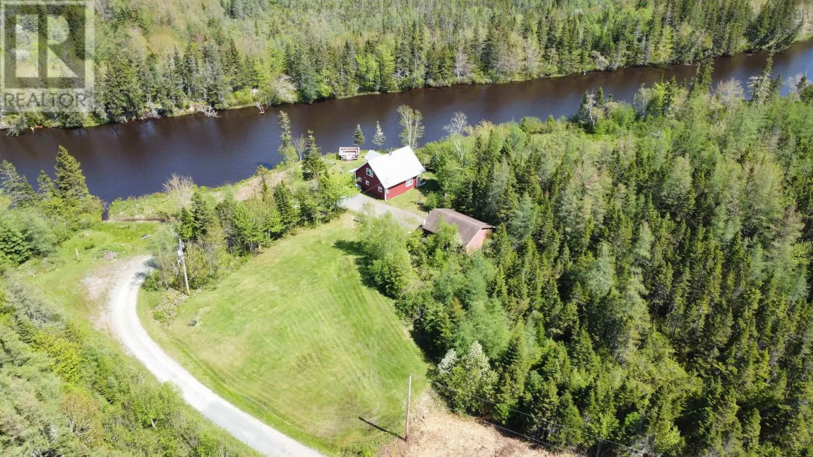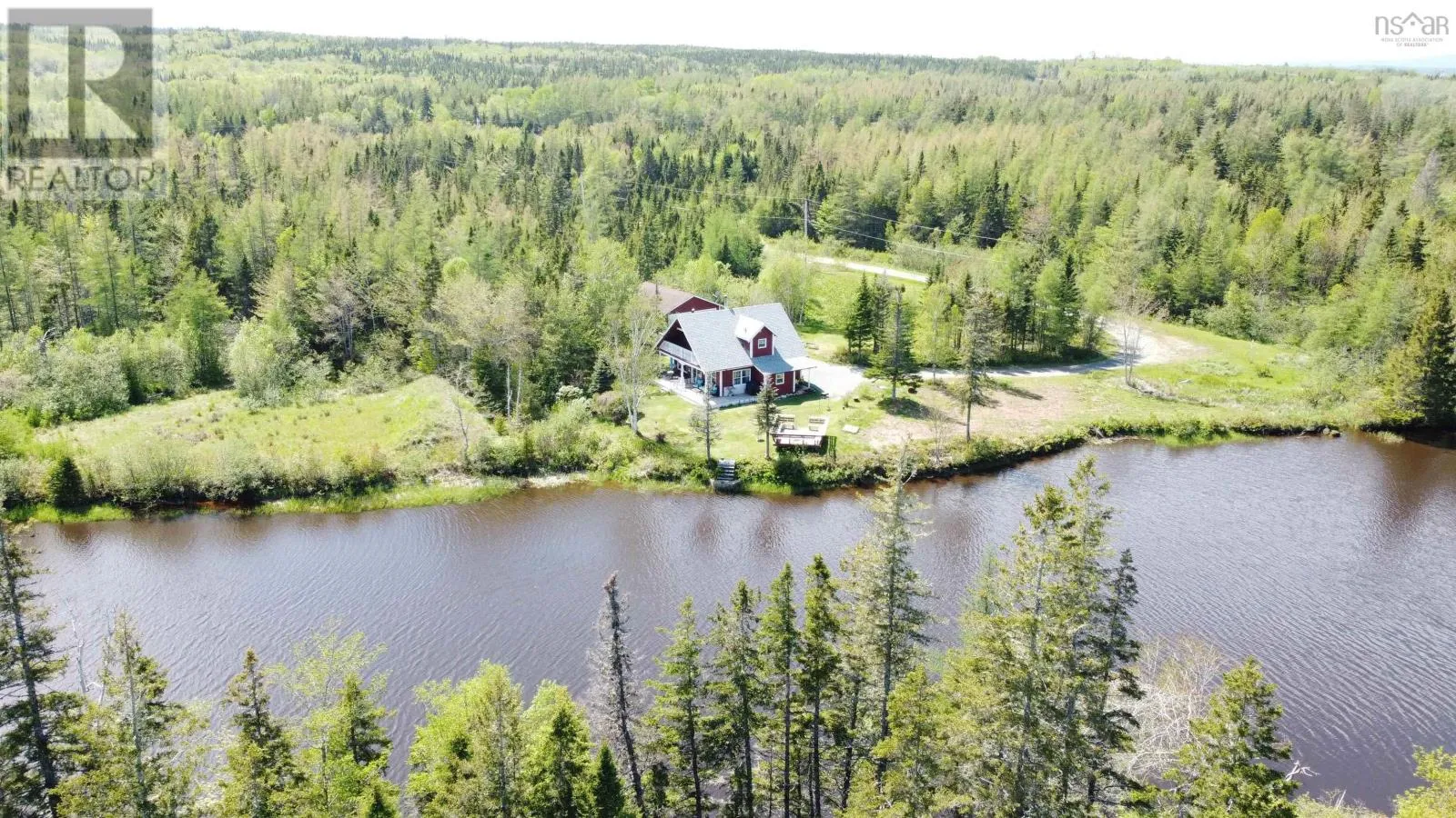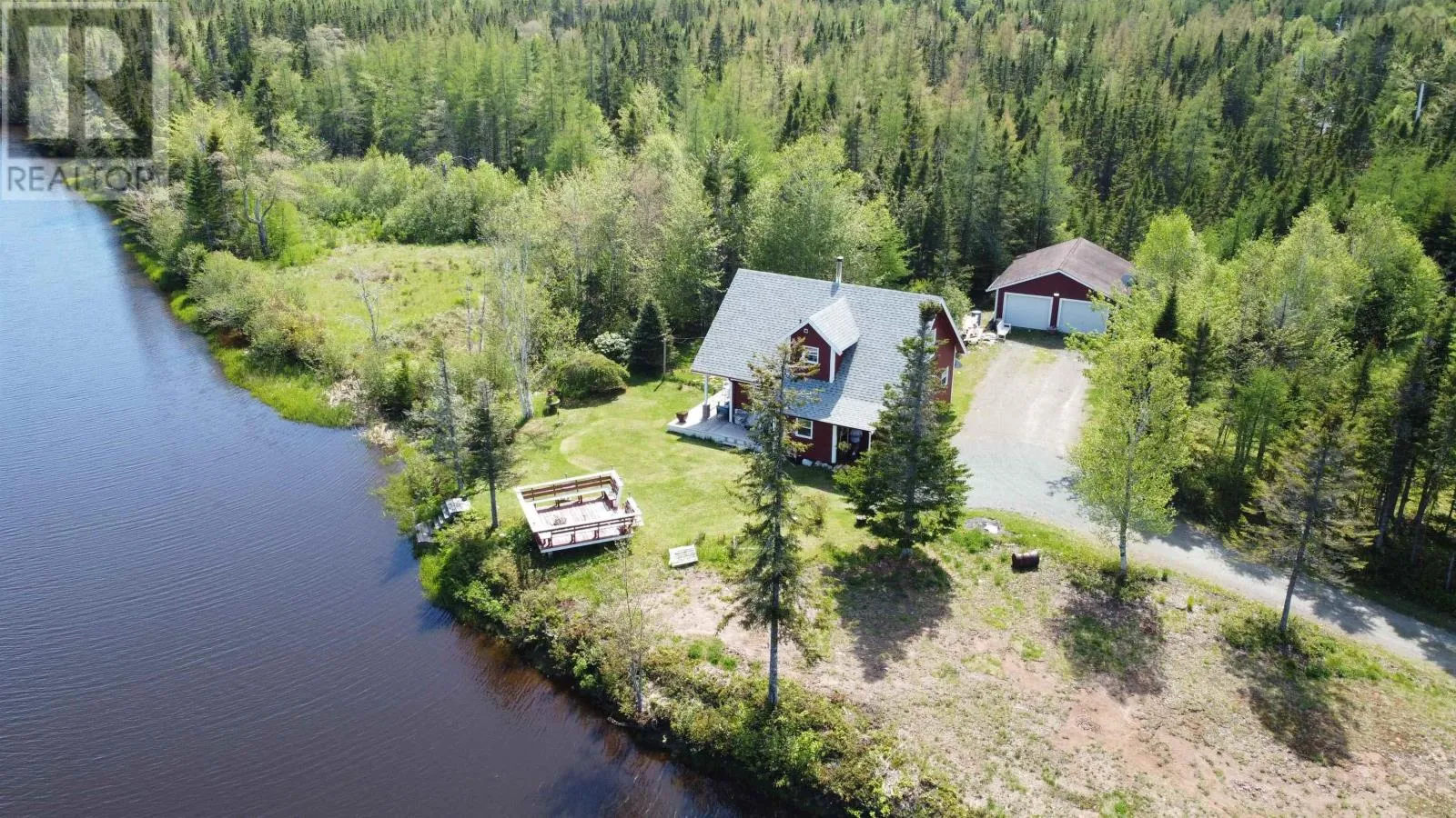 HWY 4 TOWARDS CLEVELAND, BEFORE THE BRIDGE TURN RIGHT TOWARD GRANTVILLE, ON YOU Beautiful 3 BDRM, 2 BATH chalet style home situated on 6.7 acres with 434 feet on River Inhabitants. Ideal for kayaking, canoeing, and fishing. Just a 10 minute drive to the town of Port Hawkesbury, and the Strait Richmond Hospital. Large detached 24x30 wired garage. The main floor hosts the porch, kitchen, living room with patio doors that lead to the side deck, bedroom, and full bath. The upstairs hosts two good size bedrooms, one with a balcony with a beautiful view of the river, and a full bath. The roof shingles on the house were replaced in 2020. The home is heated by a wood stove and electric heat. Feel free to view the I Guide tour! (id:27476)