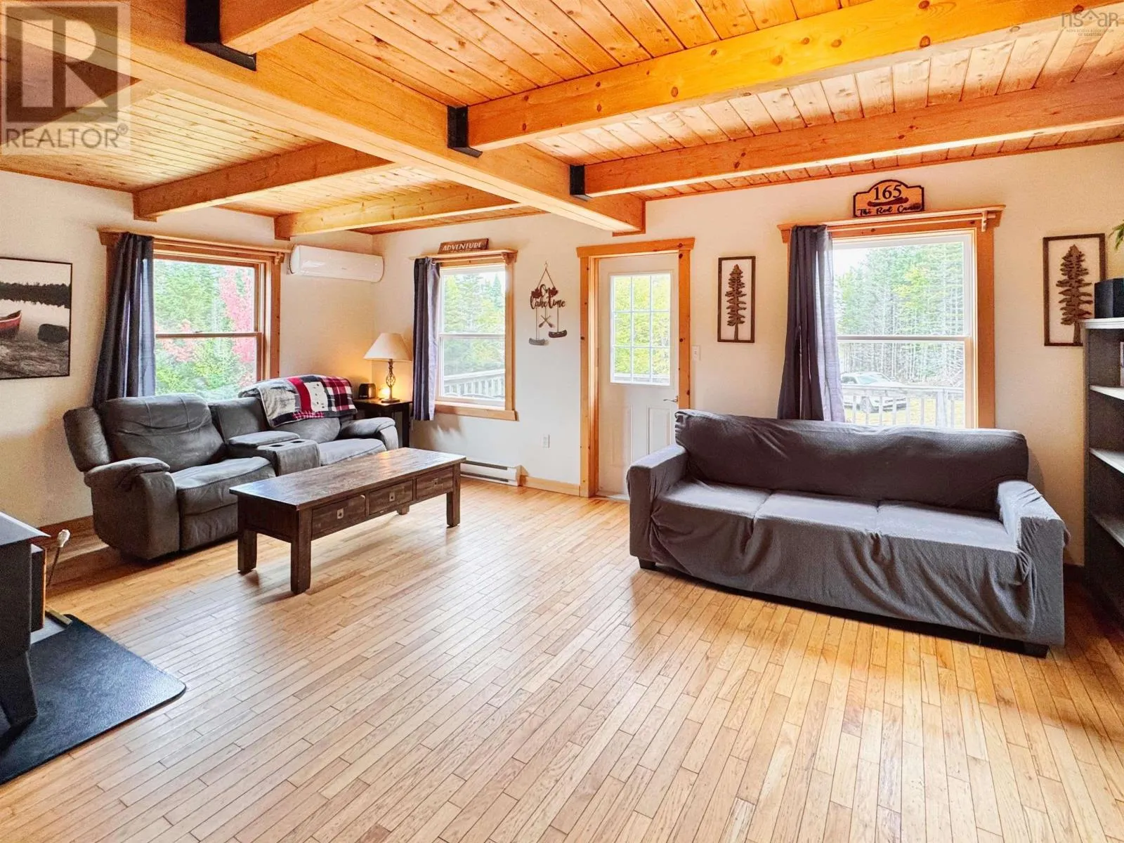 165 Holger Lane. From #4 turn in MacMillan Lakes subdivision. Driveway is just past the new bridge. Location, location - private and peaceful! Just 15 minutes from Port Hawkesbury and 10 minutes from the hospital, this inviting freshwater lakefront home offers three to four bedrooms and one bath, with potential for a second. Enjoy year-round comfort with heat pumps and a cozy wood stove. The newly finished basement features an additional bedroom with a separate entrance, perfect for guests, a studio, or rental opportunities. With a drilled well providing excellent water quality, its own septic system, and over 20 acres of land across three parcels, you will have both privacy and convenience. Extensive renovations were completed between 2023 and 2025, the home is move-in ready. Don not just dream it - live it! (id:27476)