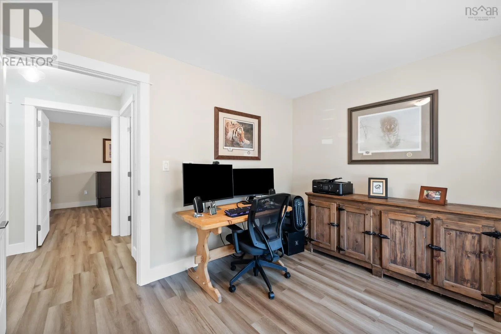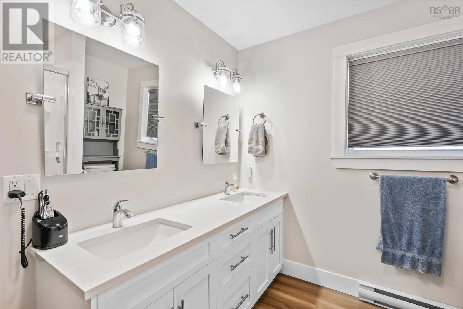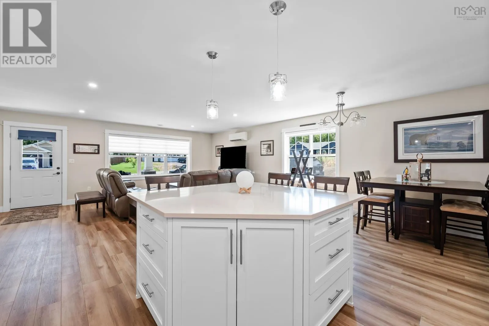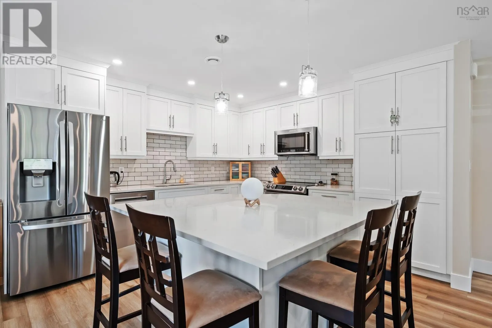 From Highway 1 Coldbrook-take Newcombe Blvd to Andrea Dr. left on Caden Ave, right to Milena Court Better than new, this stately rancher makes the other homes pale in comparison. From the pillared front grand entrance, you are greeted by the open concept great room and well-appointed kitchen dining area perfect for entertaining. The huge island with quartz countertop features seating on 2 sides and ample storage in the abundant cabinetry. Quality stainless appliances including 3 door fridge/freezer, Bosch dishwasher, glass top range and fully vented microwave, which is also a convection oven, air fryer and more. The spacious primary bedroom with walk-in closet and ensuite is situated for optimum privacy. There are 2 more ample bedrooms and a full bath. The entire interior has been professionally repainted with a warm inviting colour to make you feel right at home. All 36" doors throughout. Custom quality blinds in every room and there are 2 heat pumps ensuring year-round comfort throughout the home. The extra wide paved driveway with concrete culvert mounts and fully fenced back yard are added features. Topped off with a double attached garage for your cars and extra storage making this the perfect home for you and your family. Great location in Coldbrooks newest development close to schools, shopping, restaurants, and highway access. See feature sheet for more details. Act now to make this gorgeous home your own! (id:27476)