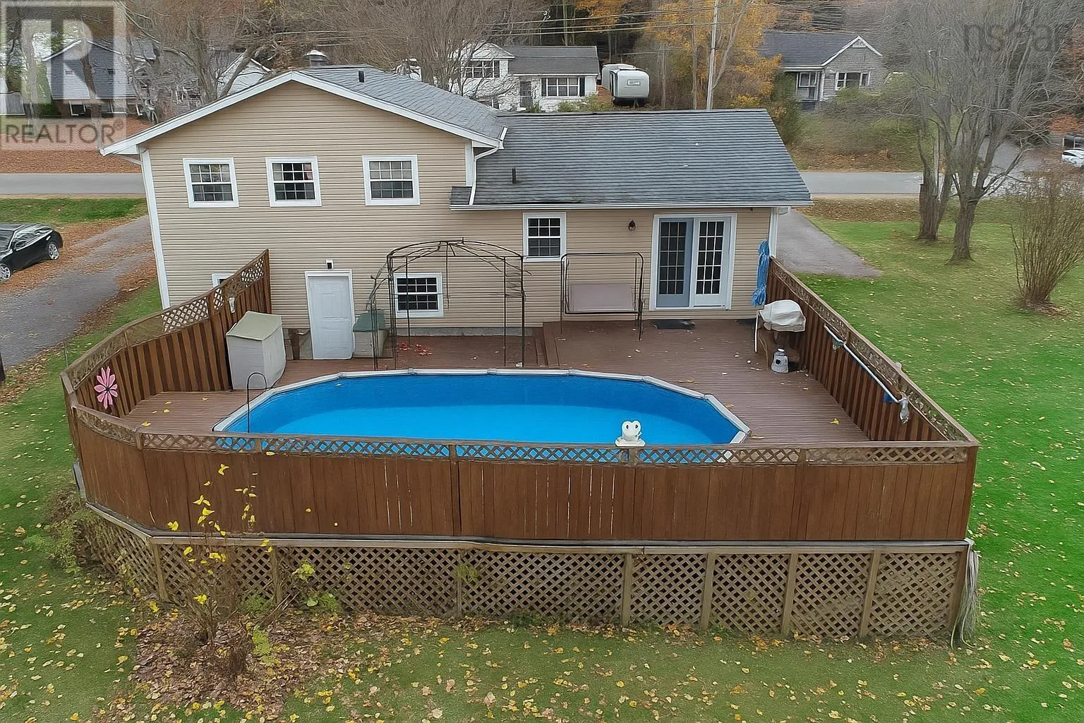 Coldbrook Hwy 1, south onto English Mountain Rd, right onto Poplar Dr From start to finish this property suits many lifestyles. Located in a popular neighborhood seconds to Coldbrook P-8 school and minutes to highway access, a quick drive to the local lake and shopping. The community itself is welcoming and filled with families of all ages. Inside this home, has been lovingly cared for with not a detail missed. The kitchen, dining area is an open concept with an abundance of cabinets and natural light, adjacent to the spacious living room. Three bedrooms and the full bath with primary bedroom access, highlight the second floor. On the lower level is a well planned and expansive family room for gatherings and relaxing times. Outside the property is meticulous with a vacation at home style yard with a lovely above ground pool, gardens and patio area. You will find this home as been well maintained, maximizes space and is in a desirable location. (id:27476)