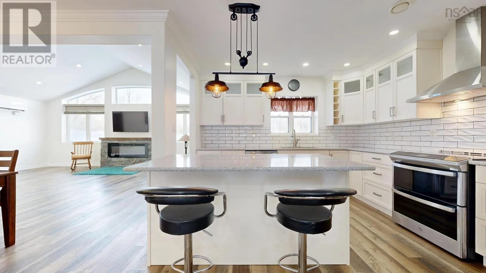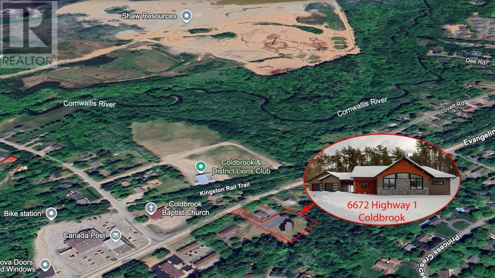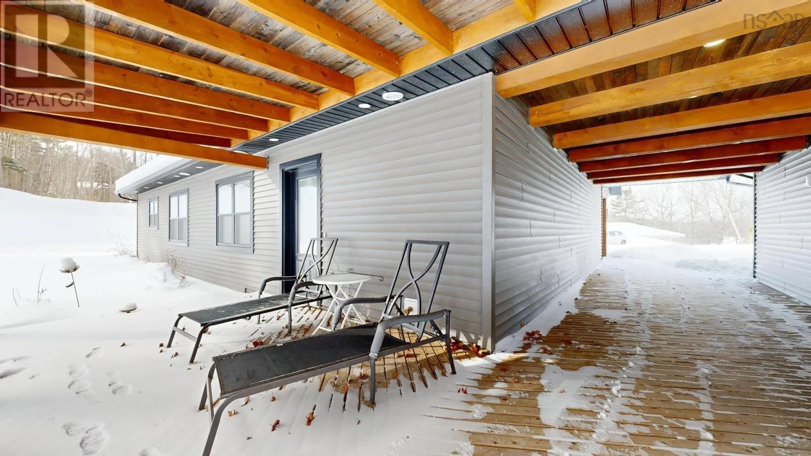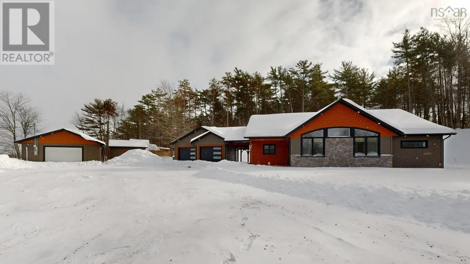 Highway 1, Coldbrook to civic, house sits well off the road. This six-year-old ICF-constructed home sets back nicely from the road on 0.8 acres, offers privacy, quality, and low-maintenance living. Built on a slab with insulated plywood subfloors and plank vinyl flooring, a custom electric fireplace and triple-pane front windows for efficiency. The kitchen features quartz countertops, a standout pantry featuring shelves made from rare KOA wood, and the living room boasts a beautiful electric fireplace. The home features a functional layout with 2 bedrooms on one end and the master on the opposite end of the home. (wired for a heat pump) A post-and-beam breezeway connects the home to a two-car attached garage with power and a half bath, which extends to a covered rear porch. The property also includes a second double garage with power, water, and heat, plus a new shed with an automatic garage door. Both garages are wired for heat pumps. There is a generator plug in one garage that could run most of the house, as well as a hot tub plug! The property features metal roofs on all buildings. Zoning allows for auxiliary units. A high-quality, maintenance-free property built to last. This really is the whole package! (id:27476)