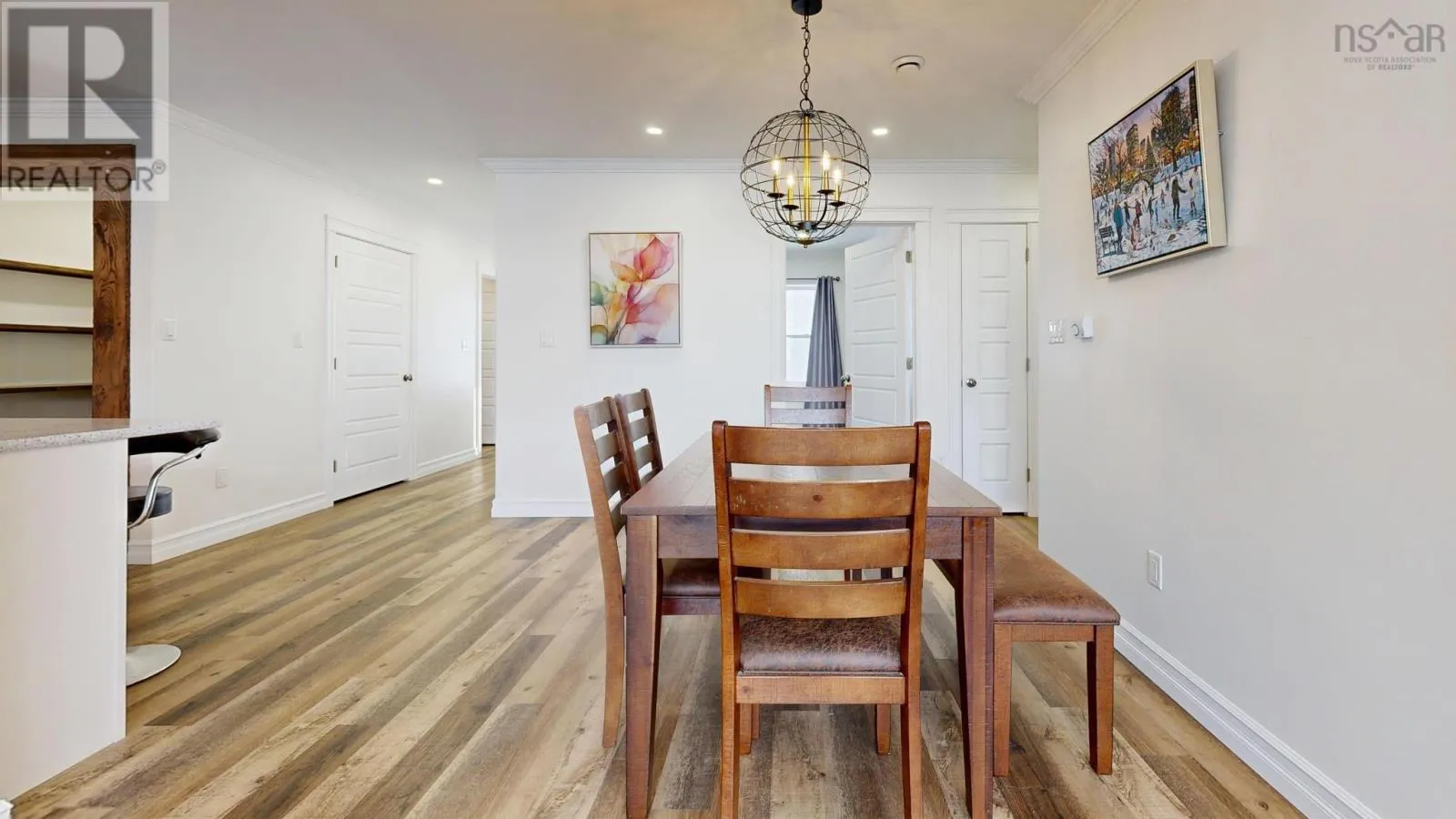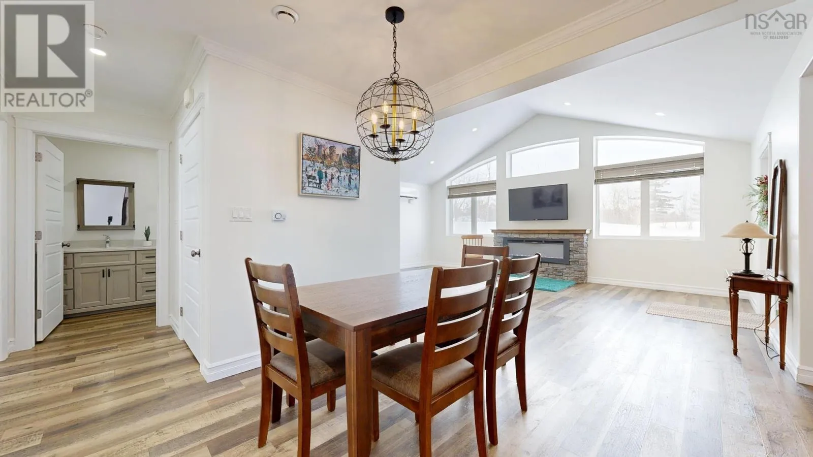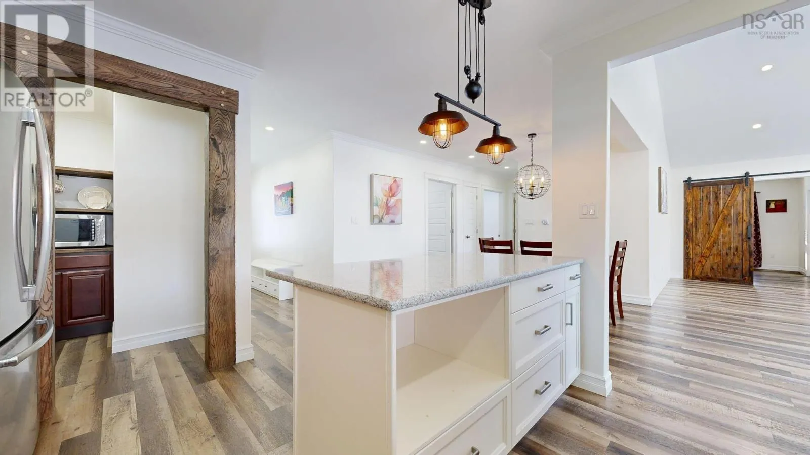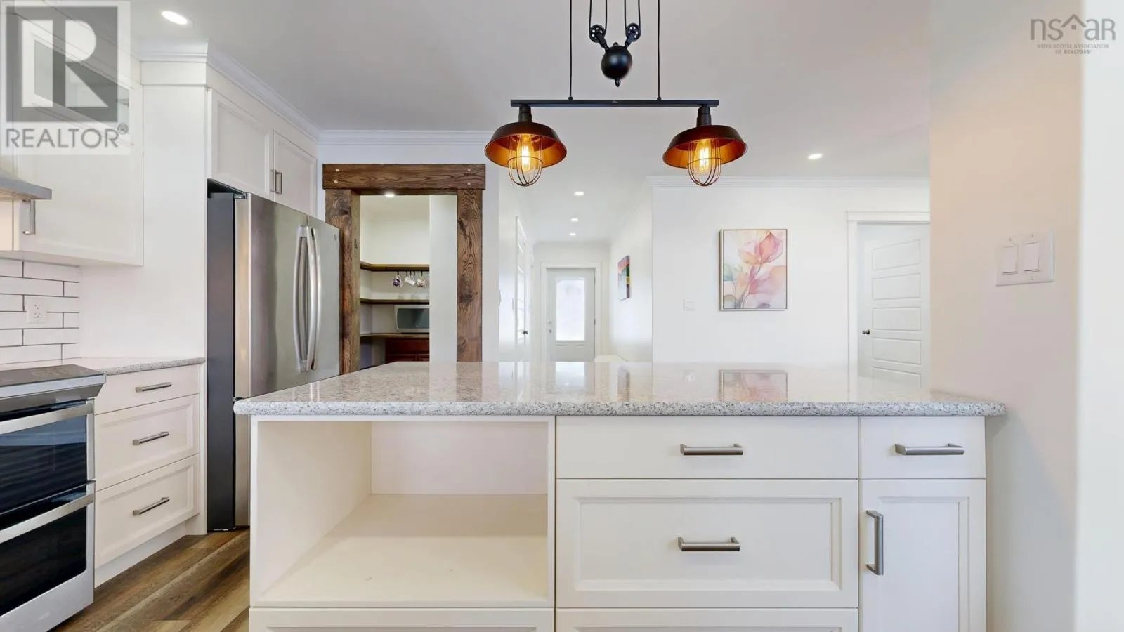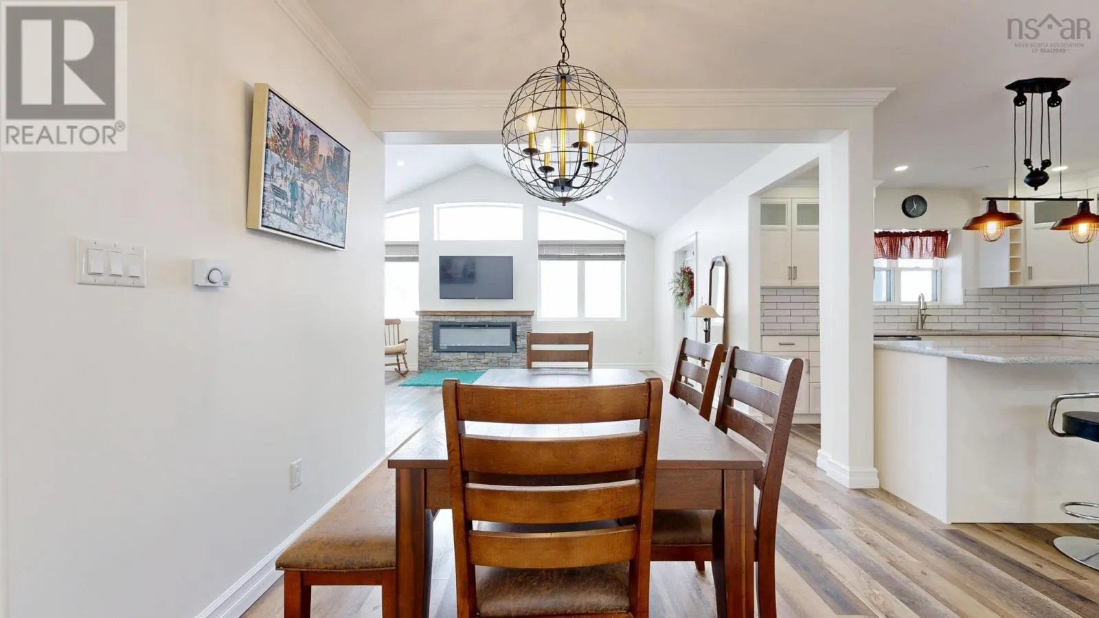 Highway 1, Coldbrook to civic, house sits well off the road. This six-year-old ICF-constructed home sets back nicely from the road on 0.8 acres, offers privacy, quality, and low-maintenance living. Built on a slab with insulated plywood subfloors and plank vinyl flooring, a custom electric fireplace and triple-pane front windows for efficiency. The kitchen features quartz countertops, a standout pantry featuring shelves made from rare KOA wood, and the living room boasts a beautiful electric fireplace. The home features a functional layout with 2 bedrooms on one end and the master on the opposite end of the home. (wired for a heat pump) A post-and-beam breezeway connects the home to a two-car attached garage with power and a half bath, which extends to a covered rear porch. The property also includes a second double garage with power, water, and heat, plus a new shed with an automatic garage door. Both garages are wired for heat pumps. There is a generator plug in one garage that could run most of the house, as well as a hot tub plug! The property features metal roofs on all buildings. Zoning allows for auxiliary units. A high-quality, maintenance-free property built to last. This really is the whole package! (id:27476)